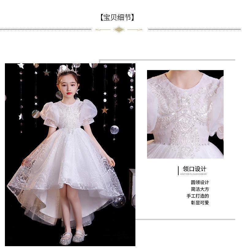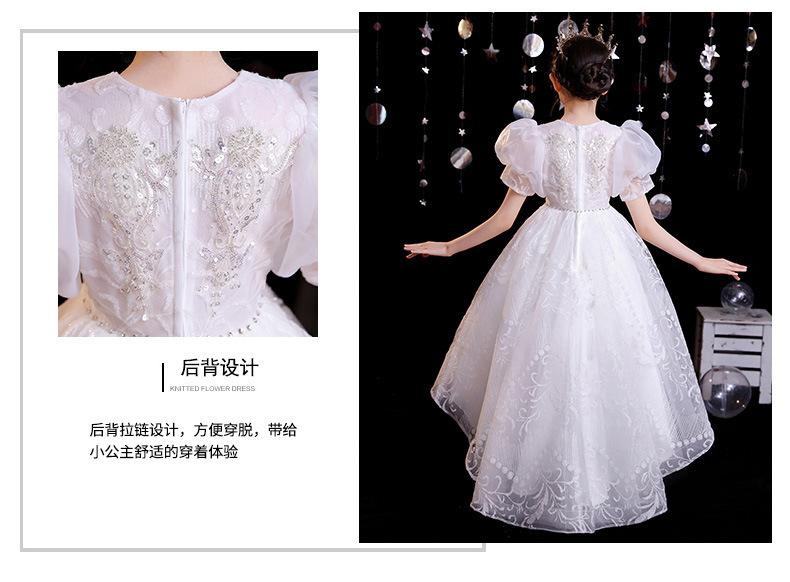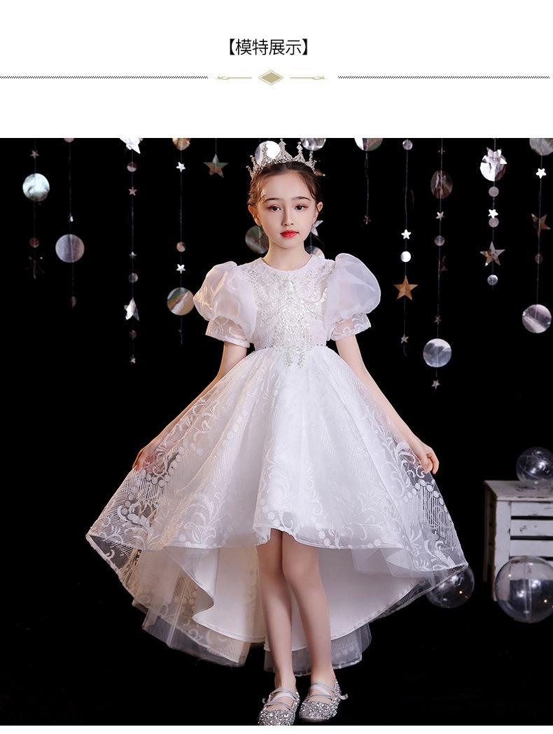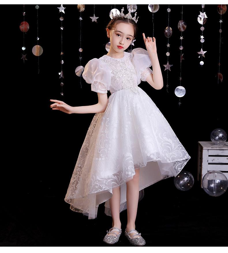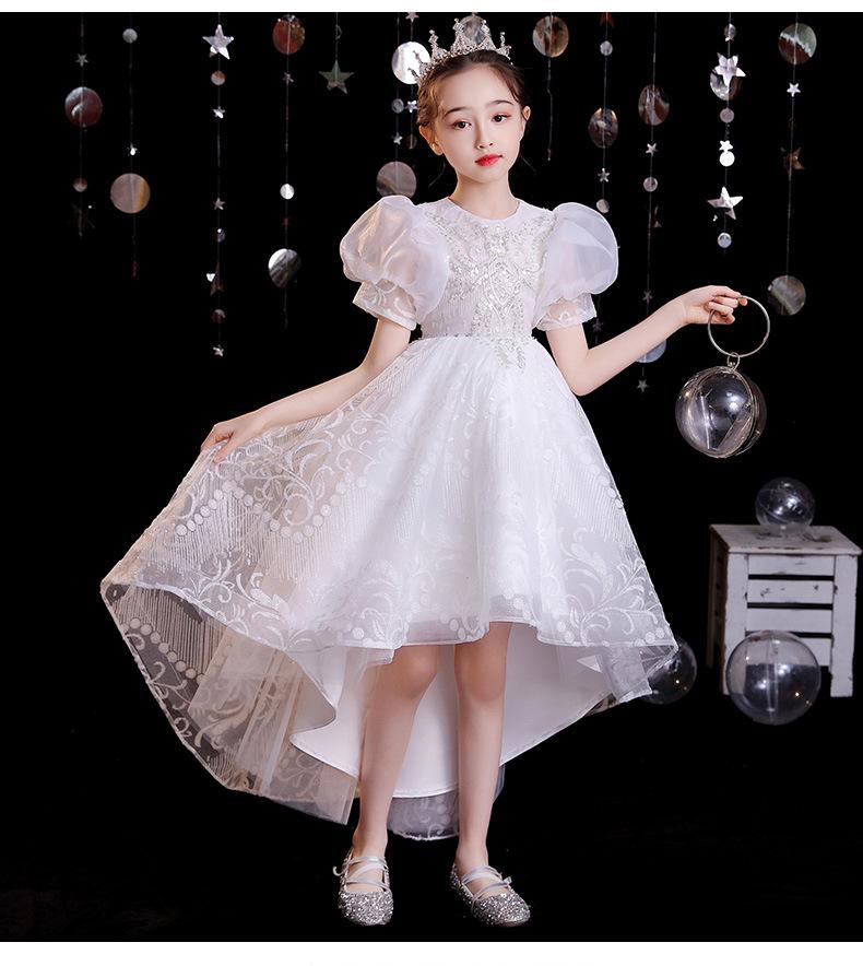 Vestido de gaze branca para meninas, vestido de princesa infantil de lã fofa, vestido de aniversário para meninas, fantasia de piano para meninas anfitriãs