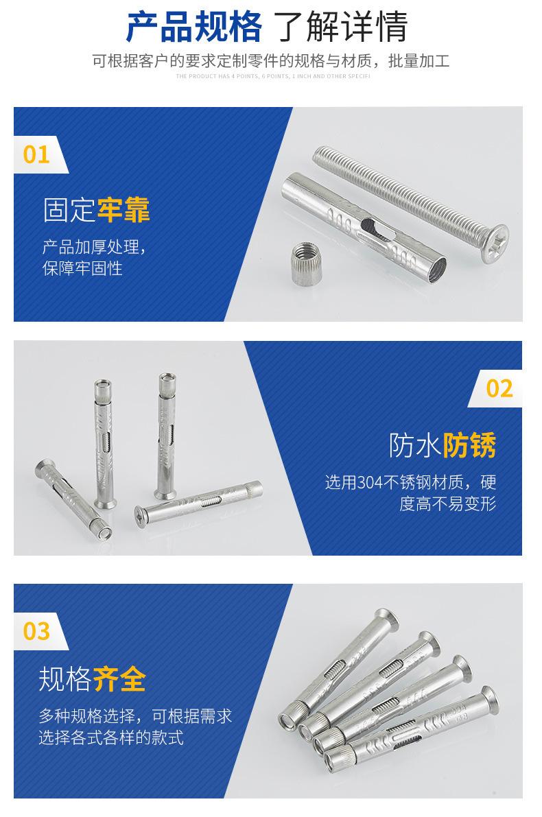 Parafuso de expansão de cabeça escareada de aço inoxidável 304 sextavado interno cabeça redonda sextavada sextavada externa cabeça cilíndrica parafuso de expansão total