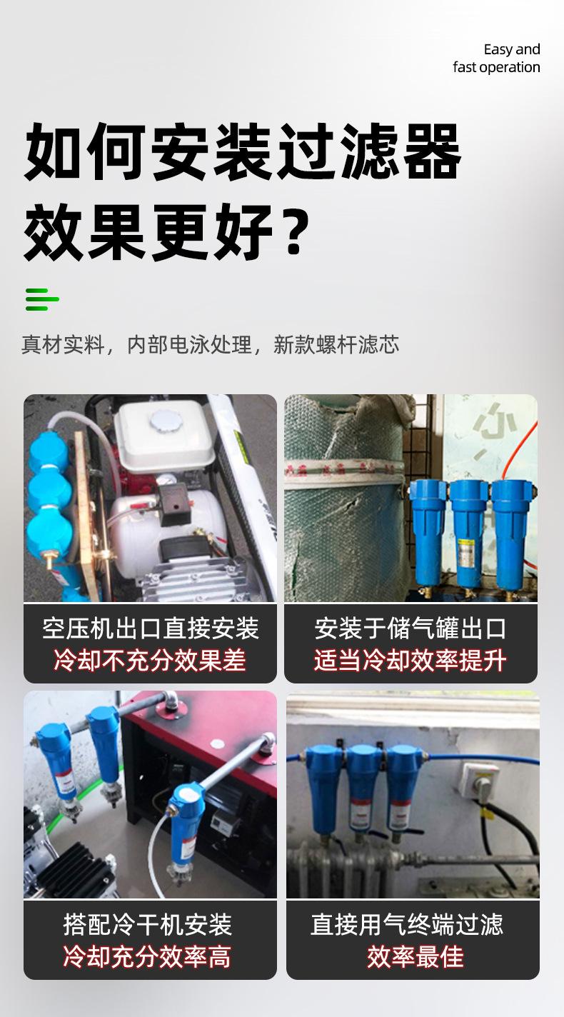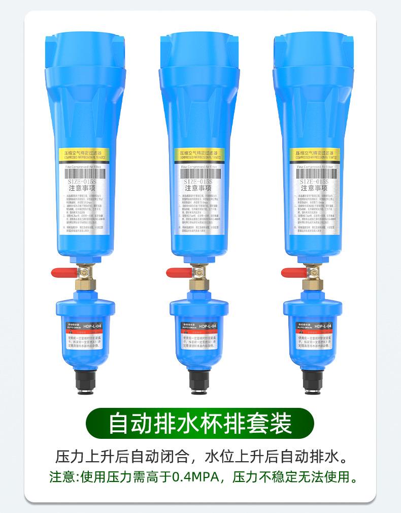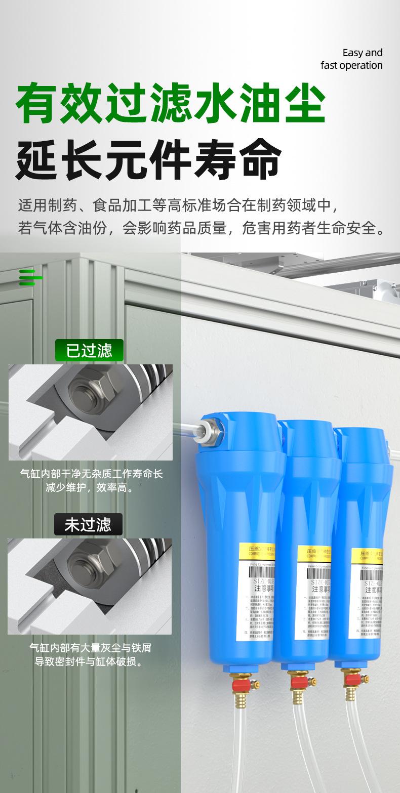Compressor de ar QPS Filtro de precisão Ar comprimido Drenador automático Fonte de ar tripla Acessórios de secagem