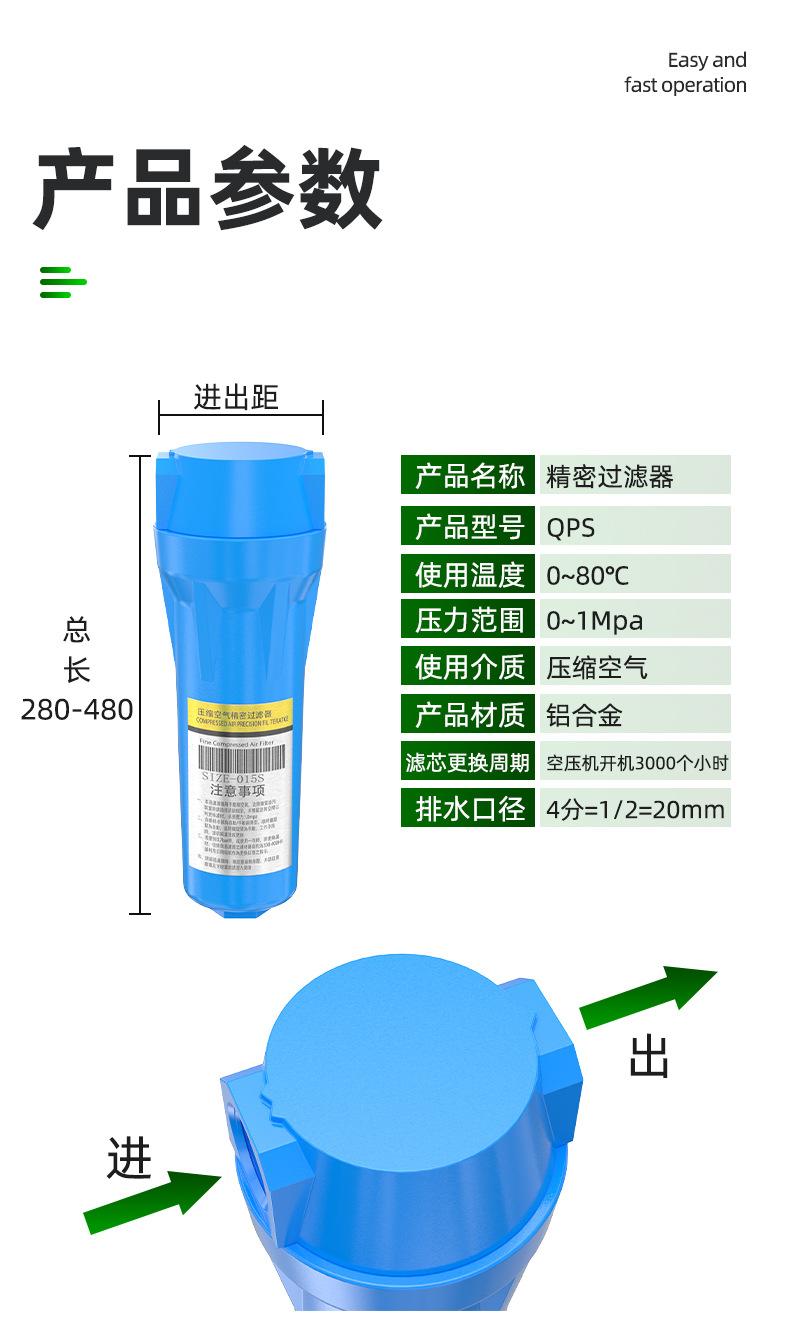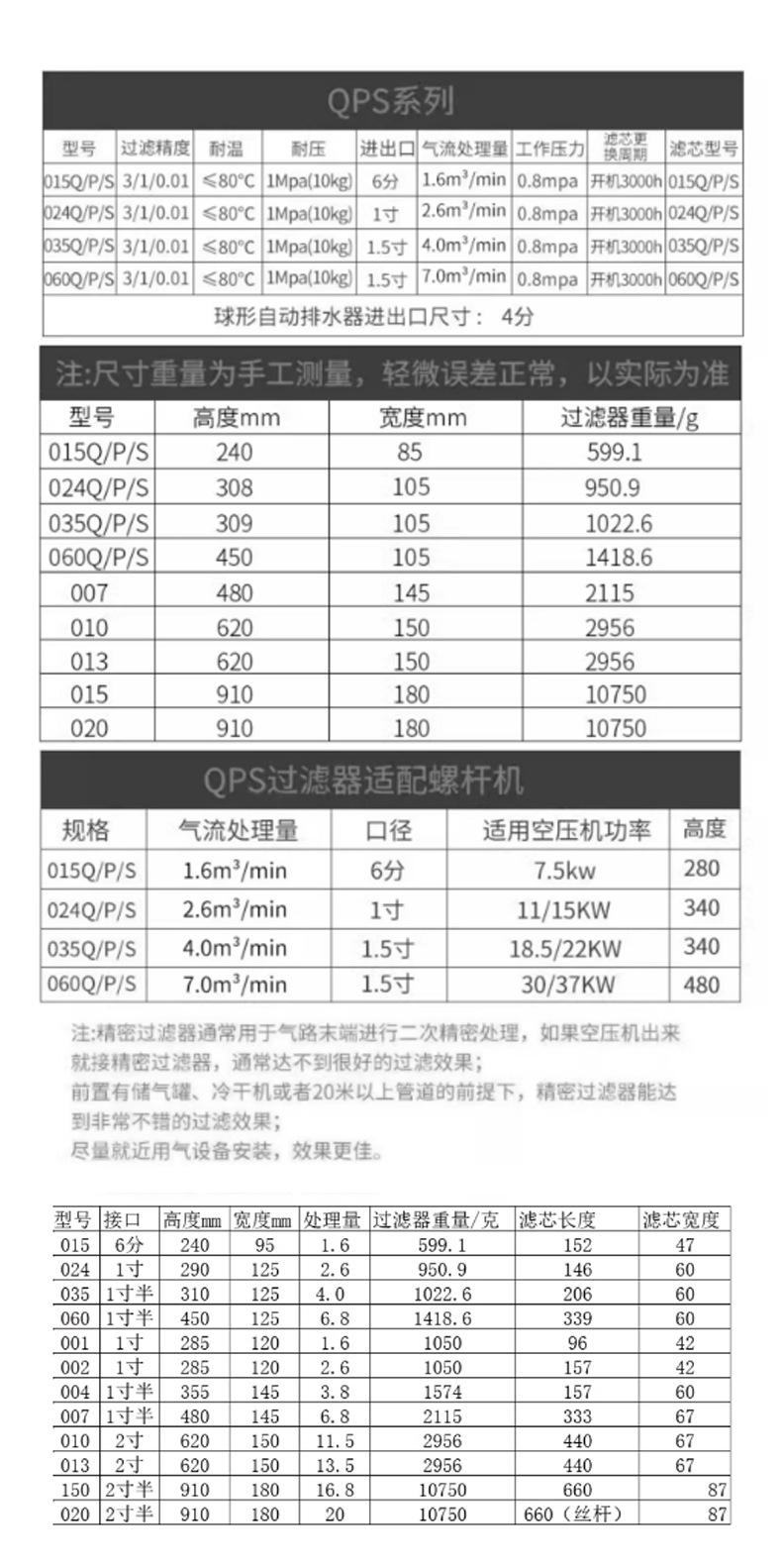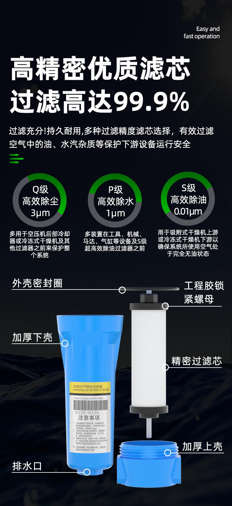 Compressor de ar QPS Filtro de precisão Ar comprimido Drenador automático Fonte de ar tripla Acessórios de secagem