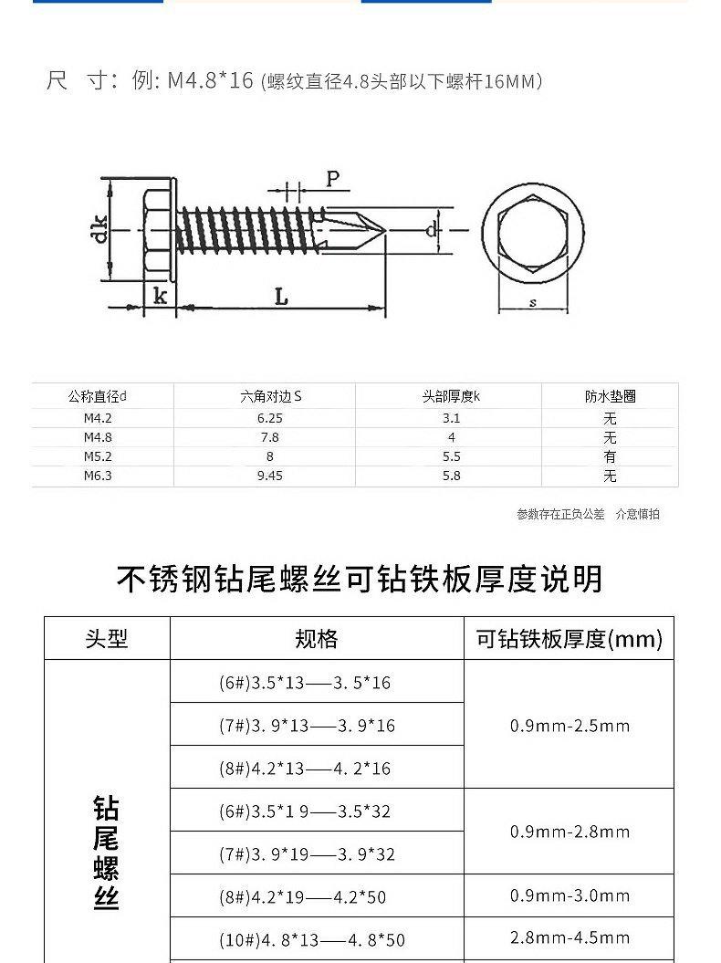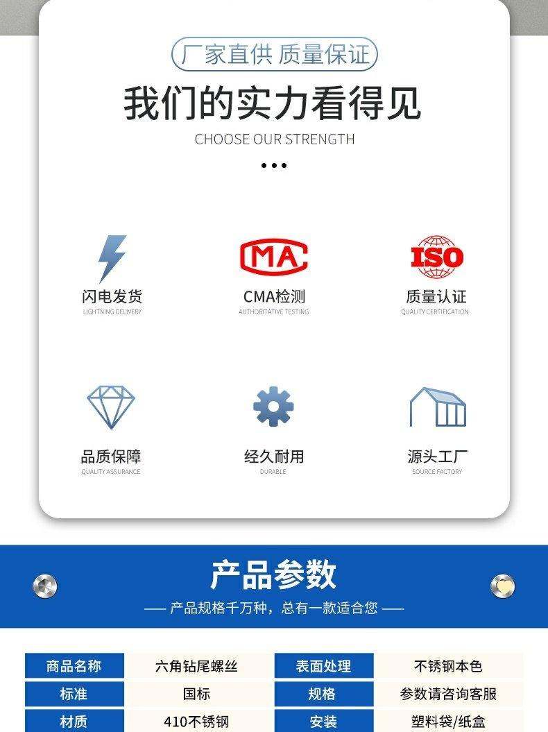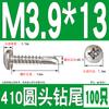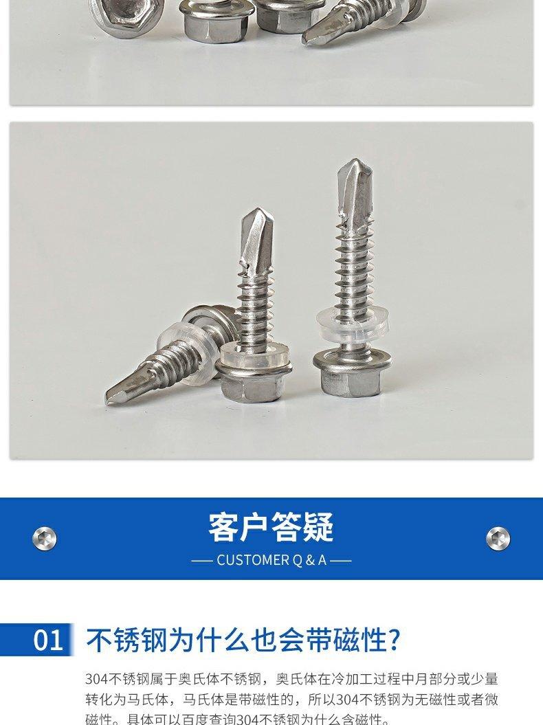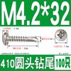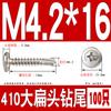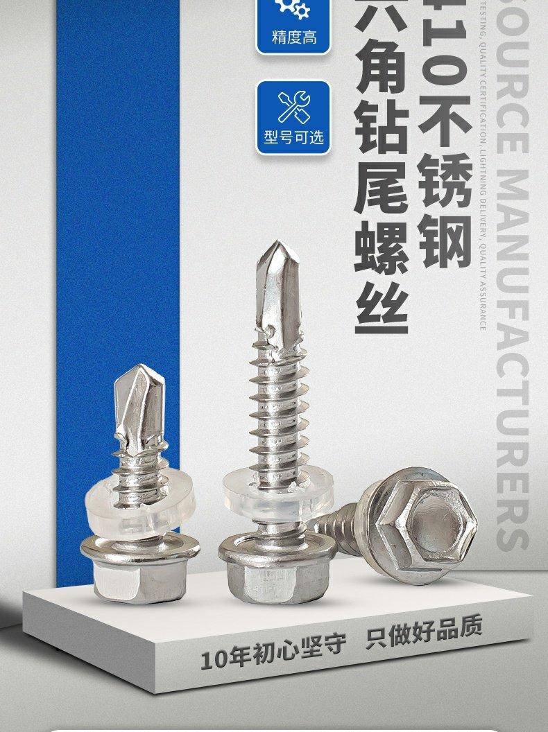 Parafuso autoperfurante de cabeça redonda de aço inoxidável 410, parafuso de cauda de broca sextavada, cabeça grande e plana, fio de cauda de andorinha, cabeça escareada, telha de aço colorida