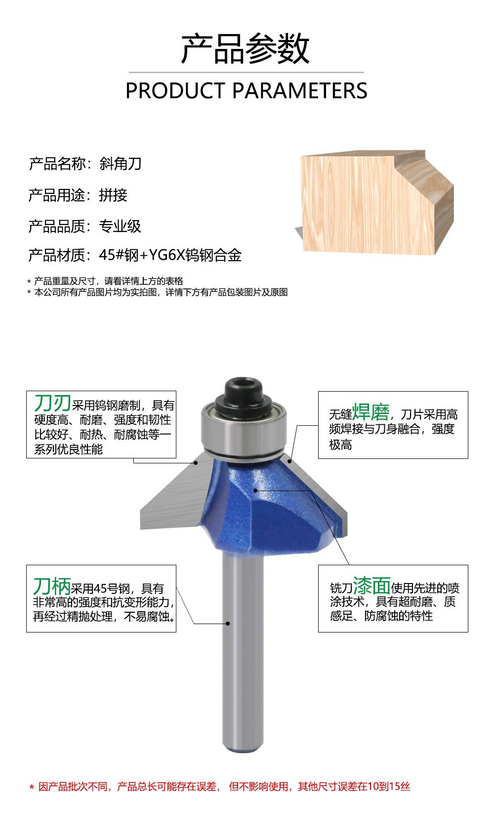 As alças do cortador de madeira incluem: 3 mm, 6 mm, 1/4 "(6,35 mm), 8 mm, 12 mm, 1/2" (12,7 mm)