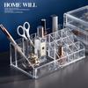 Caixa de Armazenamento de Batons de Cosméticos Acrílico Transparente Multicompartimentada com Tampa Rack de Exibição de Maquiagem para Gloss Labial Caixa de Mesa
