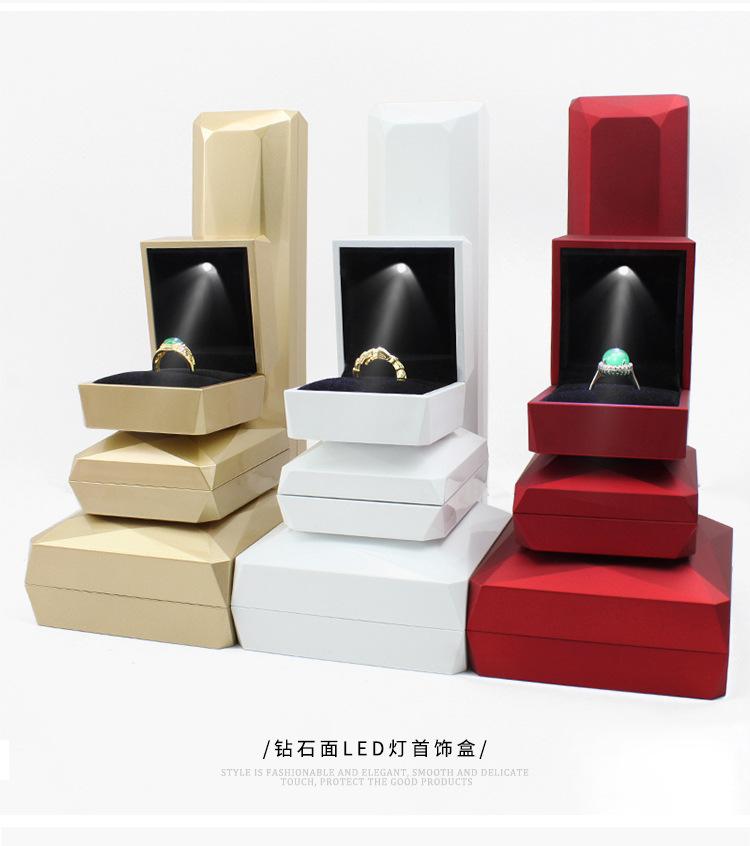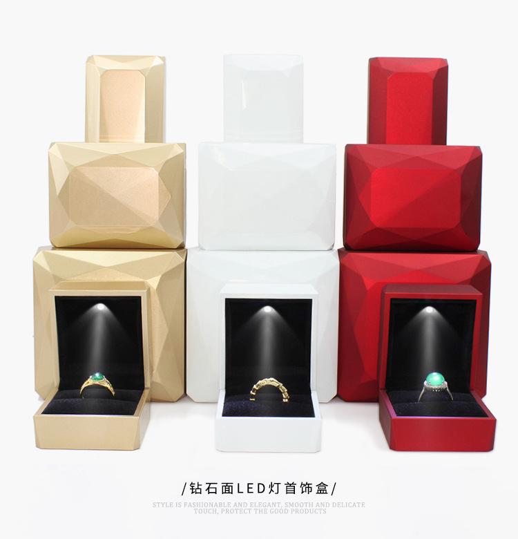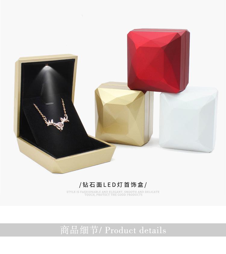 Caixa de joias com rosto de diamante, pintura com luz de led, anel, pingente, pulseira, colar, joias, caixa de proposta de presente