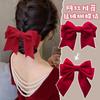 Ano Novo Festivo Vermelho Grande Laço Acessórios de Cabelo Vermelho Veludo Infantil Grampo de Cabelo Menina Festivo Ano Novo Headwear