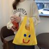 Bonito Smiley Amarelo Dupla Face Impresso Colete Saco Casual Portátil Sacola de Compras de Lona Saco de Almoço Lanche