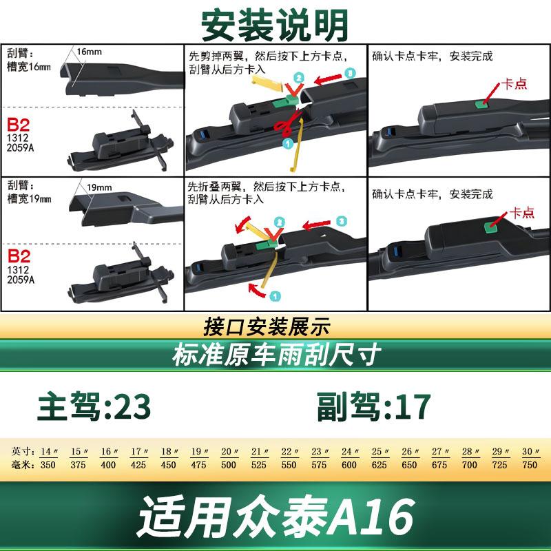 Adequado para limpador de para-brisa do carro Zotye A16, dedicado ao carro original, multifuncional, universal, sem armação, silencioso, lâmina de borracha para limpador