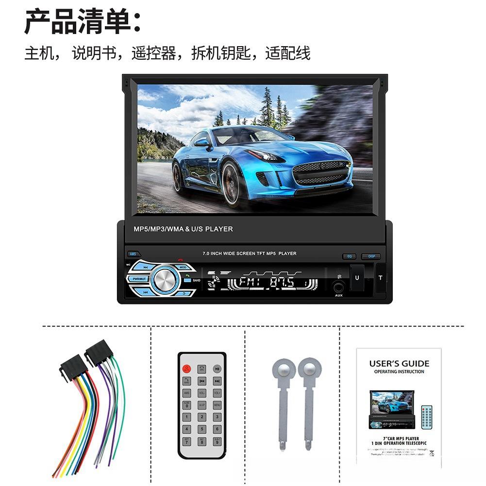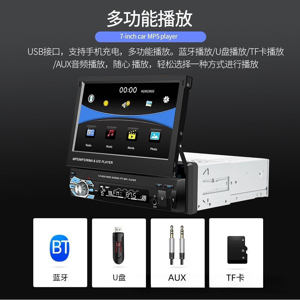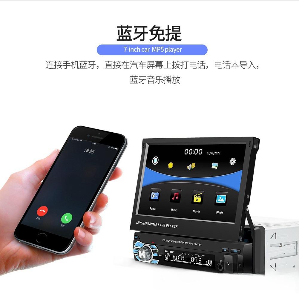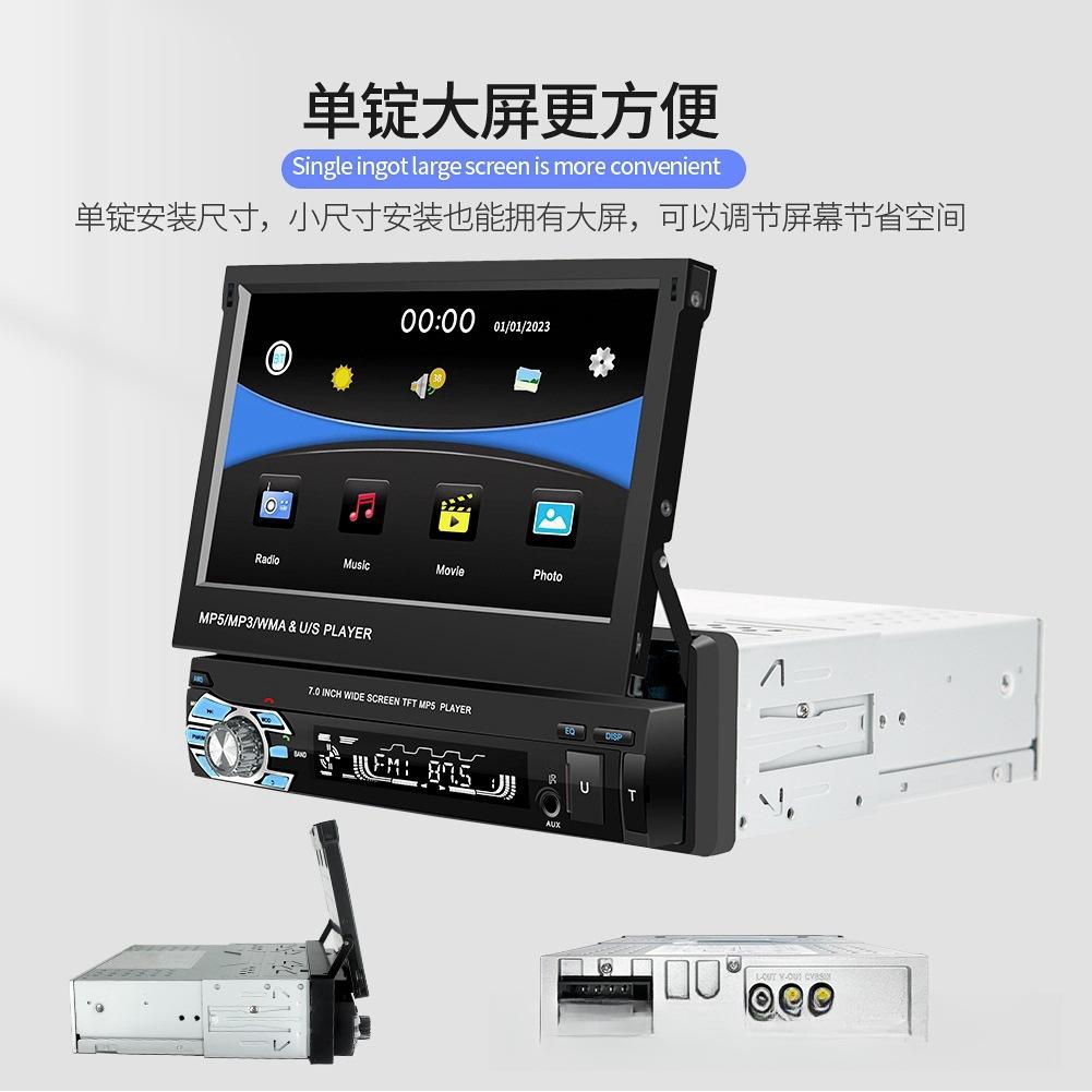 Tela telescópica de lingote único de 7 polegadas 1Din carro MP5 player de carro MP4 Bluetooth chamada inversão prioridade cartão máquina de inserção