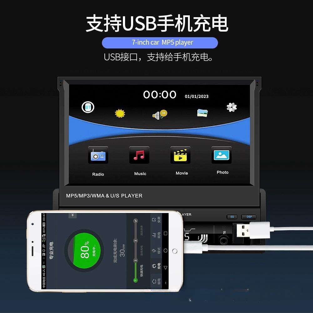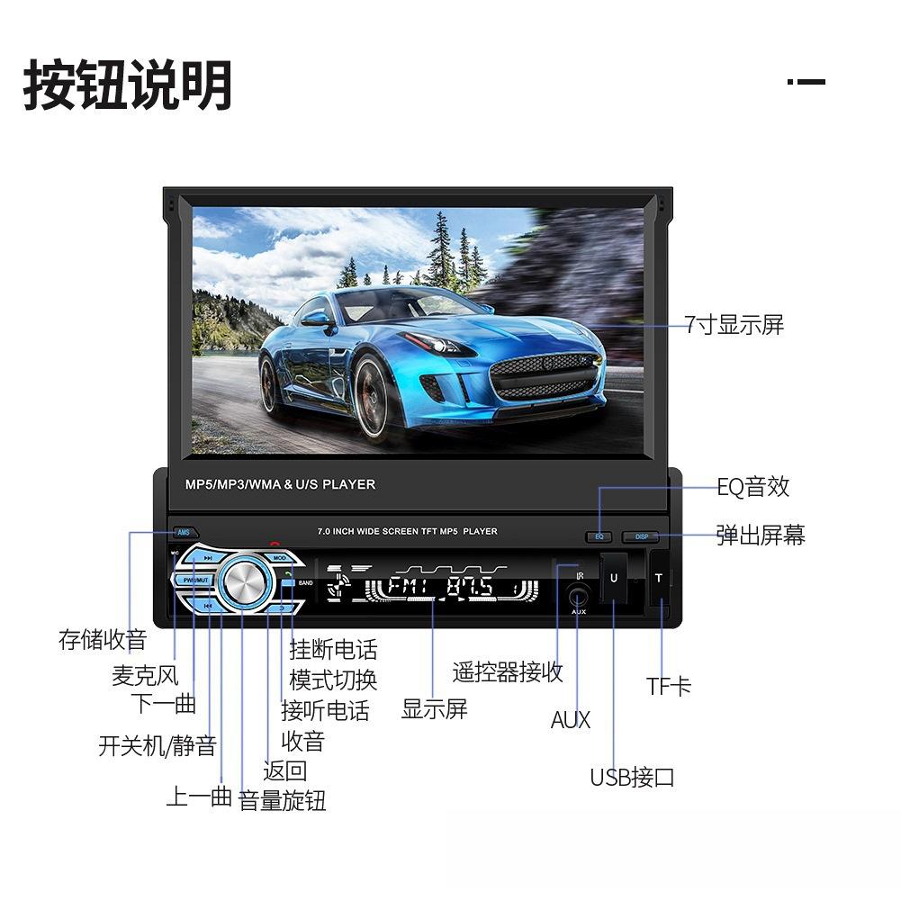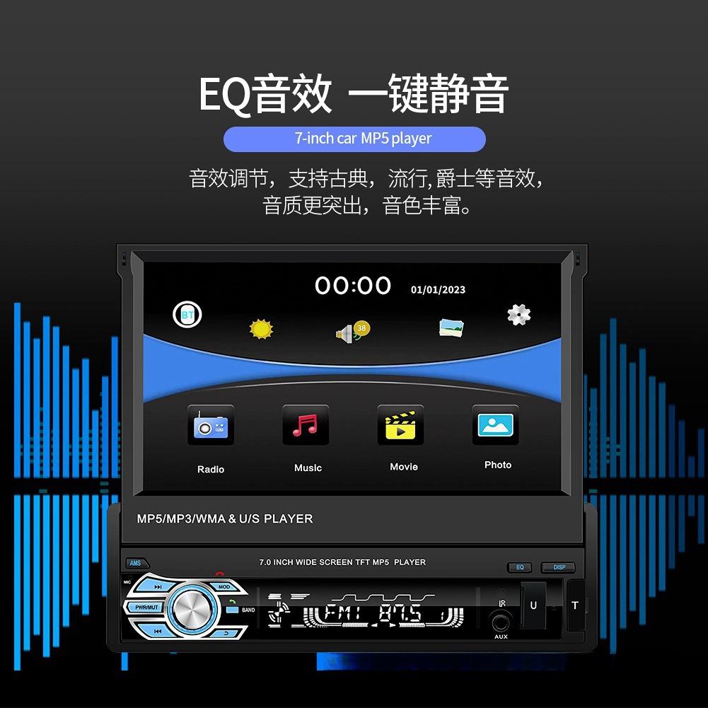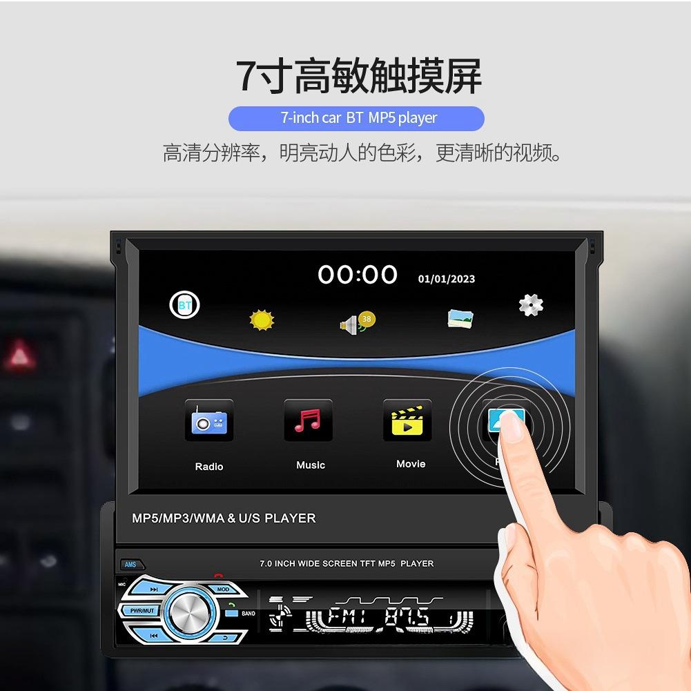 Tela telescópica de lingote único de 7 polegadas 1Din carro MP5 player de carro MP4 Bluetooth chamada inversão prioridade cartão máquina de inserção