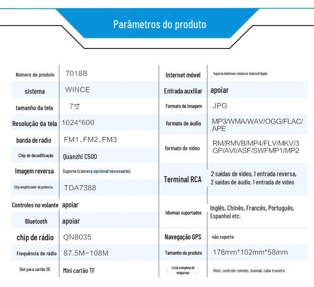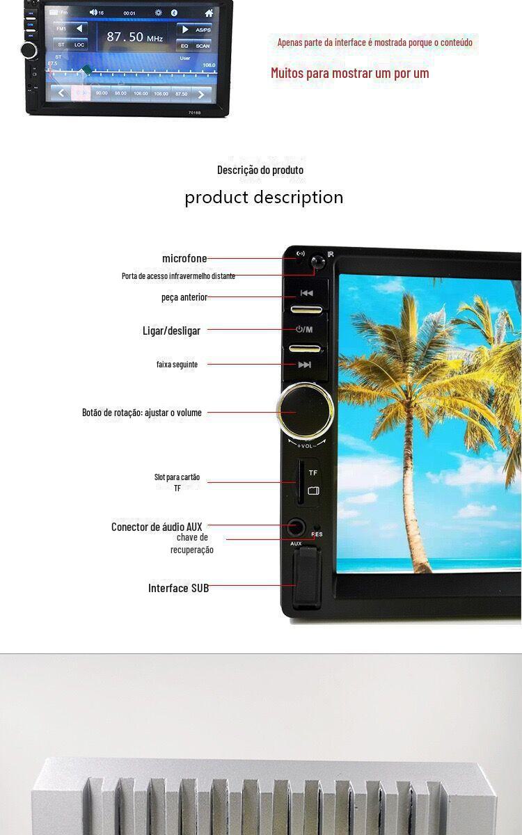 7018B Carro 7 polegadas Player Mp5 Lingote Único 1Din Rádio Multimídia Bluetooth Carplay Fornecimento Direto da Fábrica