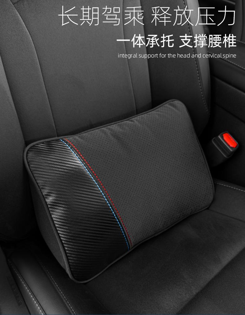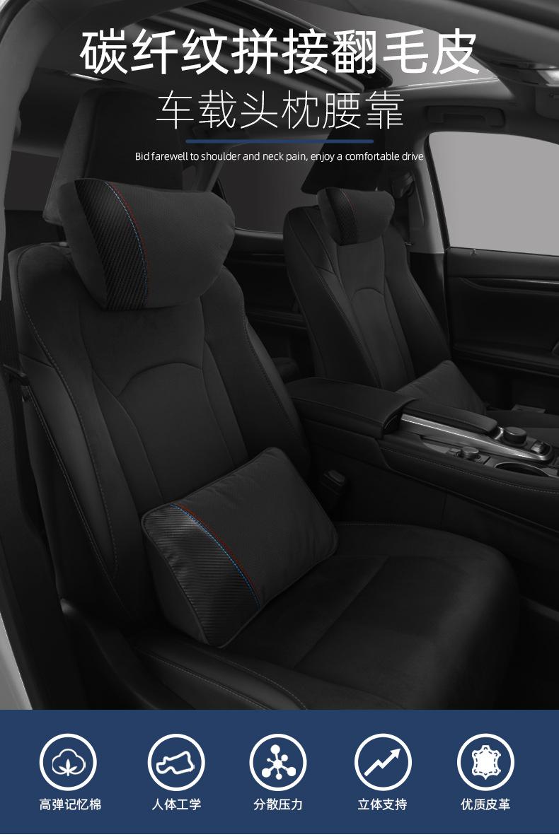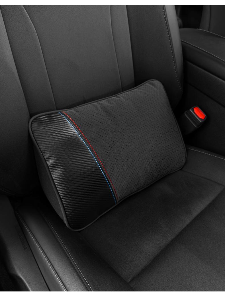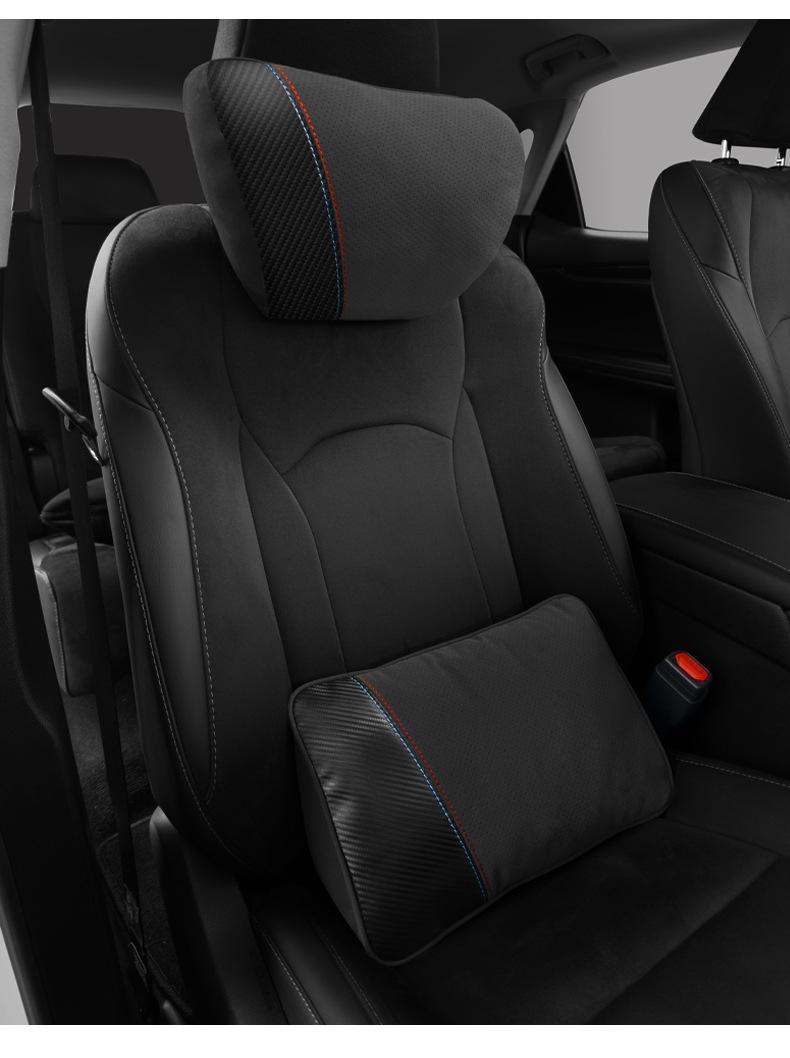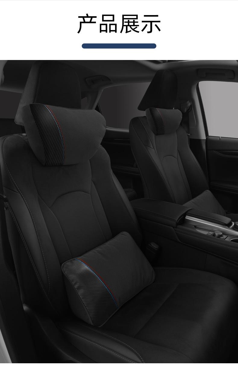 【Nome do Produto】: Apoio de cabeça e suporte lombar em camurça com padrão de fibra de carbono