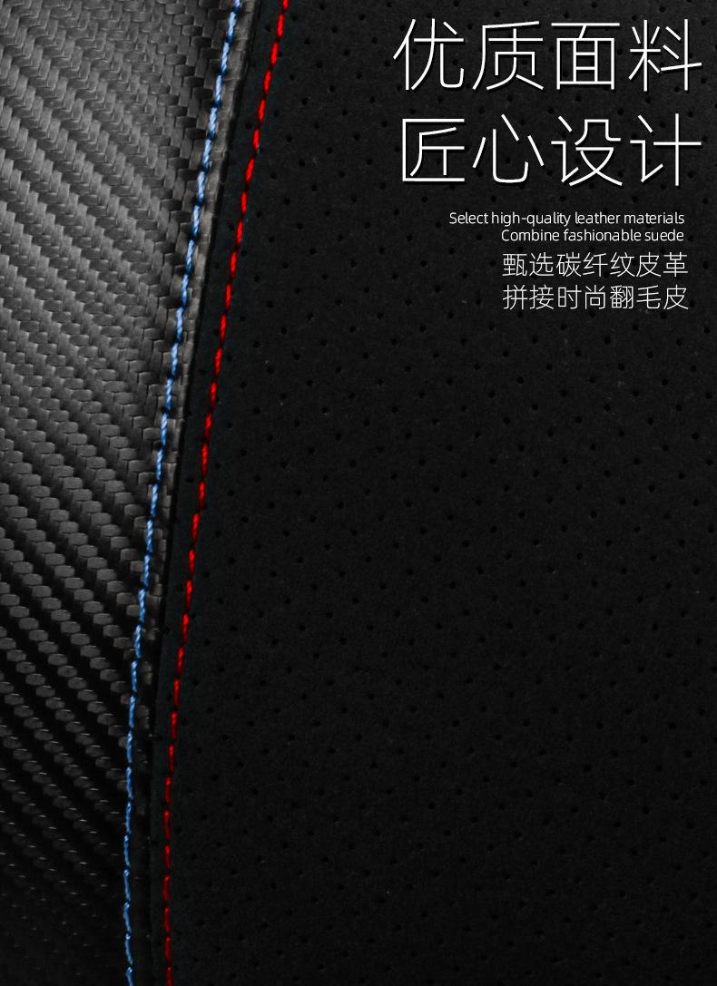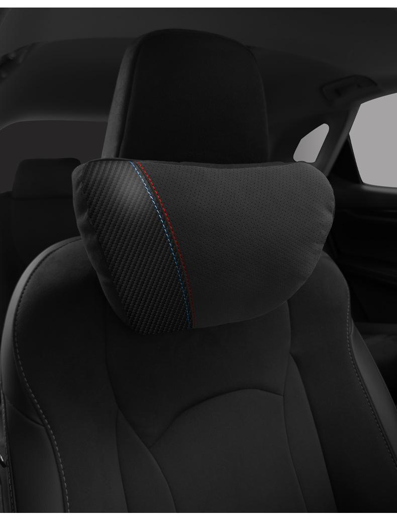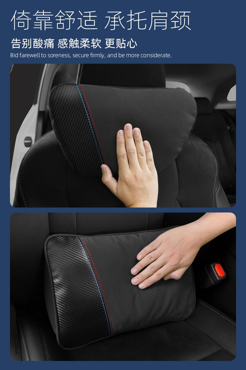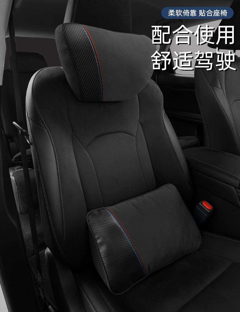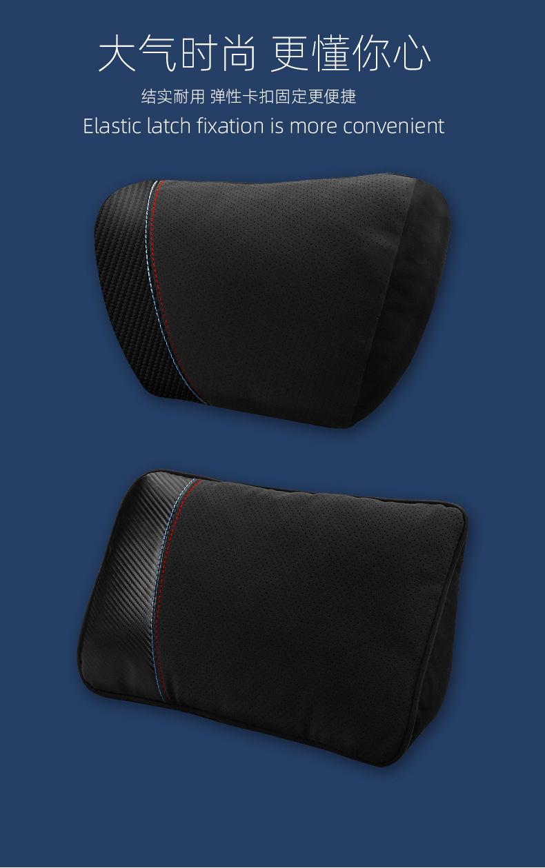 【Nome do Produto】: Apoio de cabeça e suporte lombar em camurça com padrão de fibra de carbono