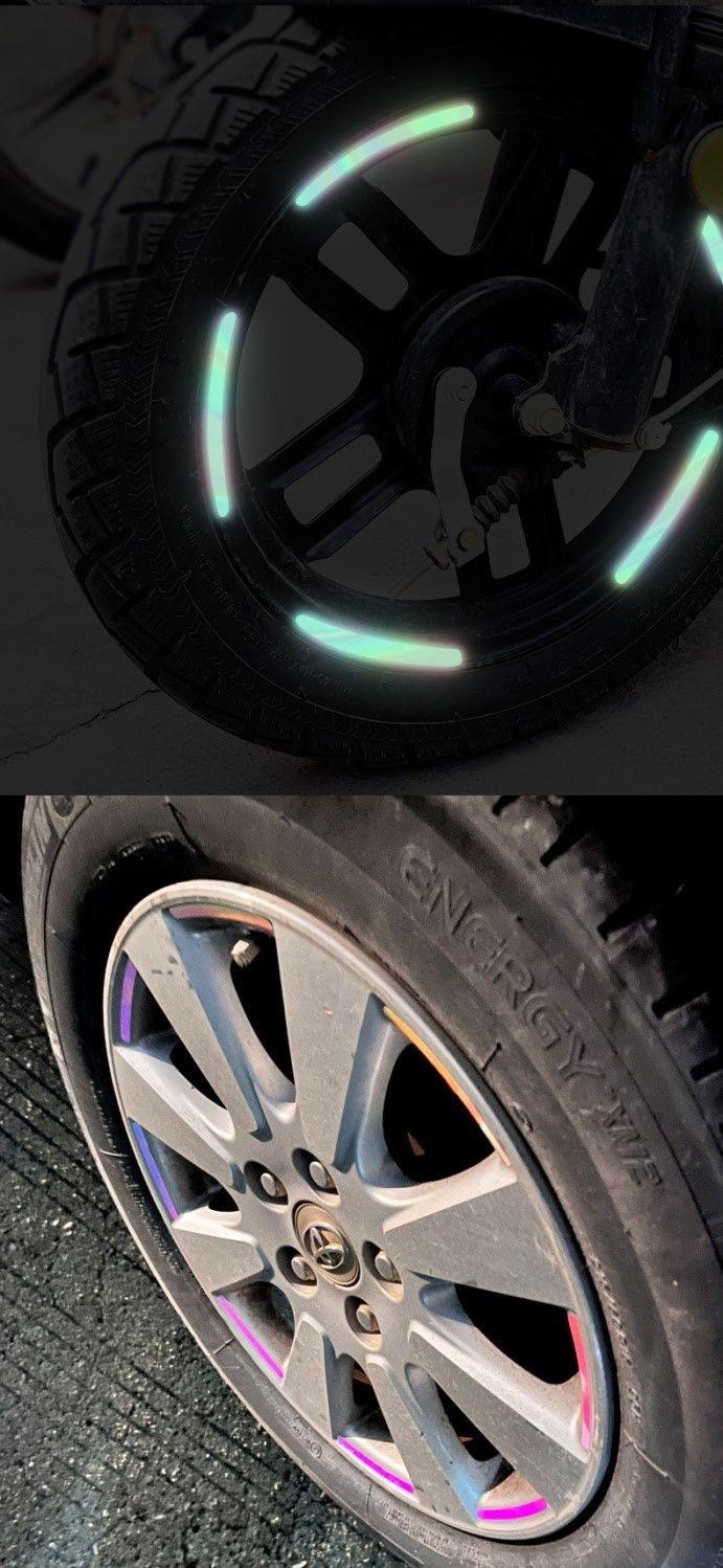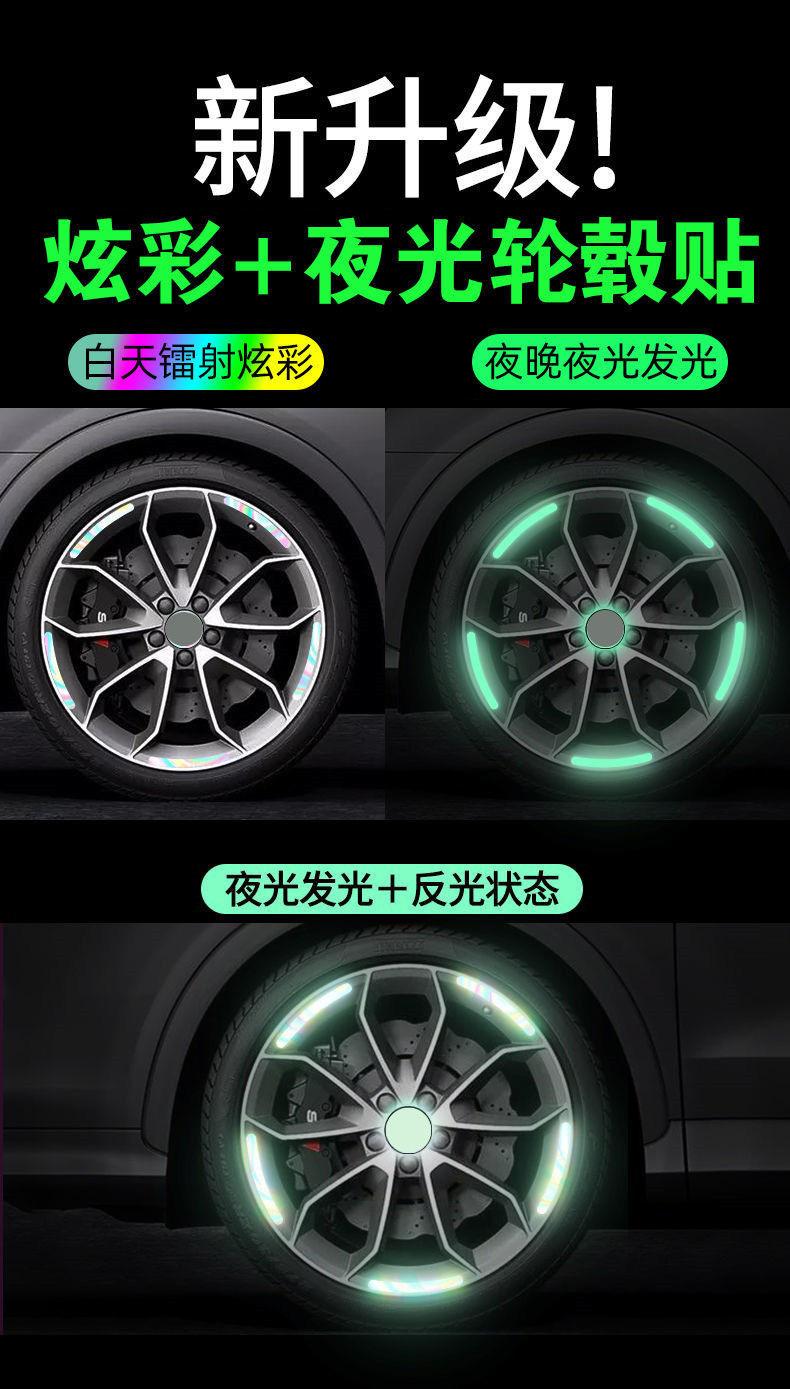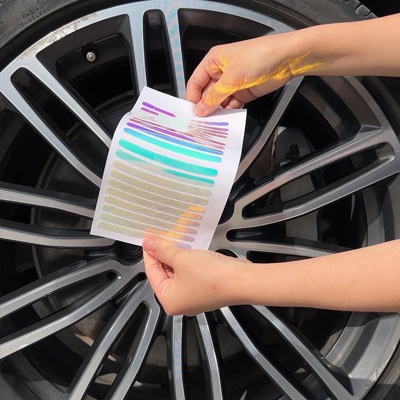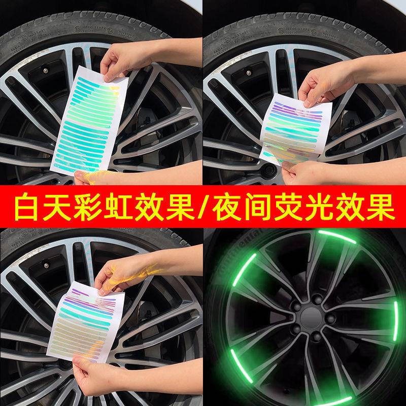 Roda de carro reflexiva colorida laser luminoso pneu anticolisão adesivo personalizado criativo motocicleta carro carro elétrico adesivo
