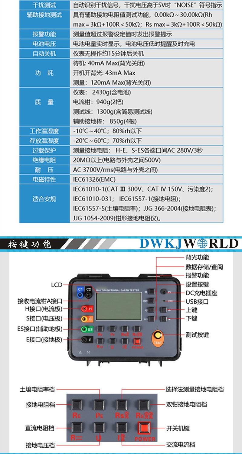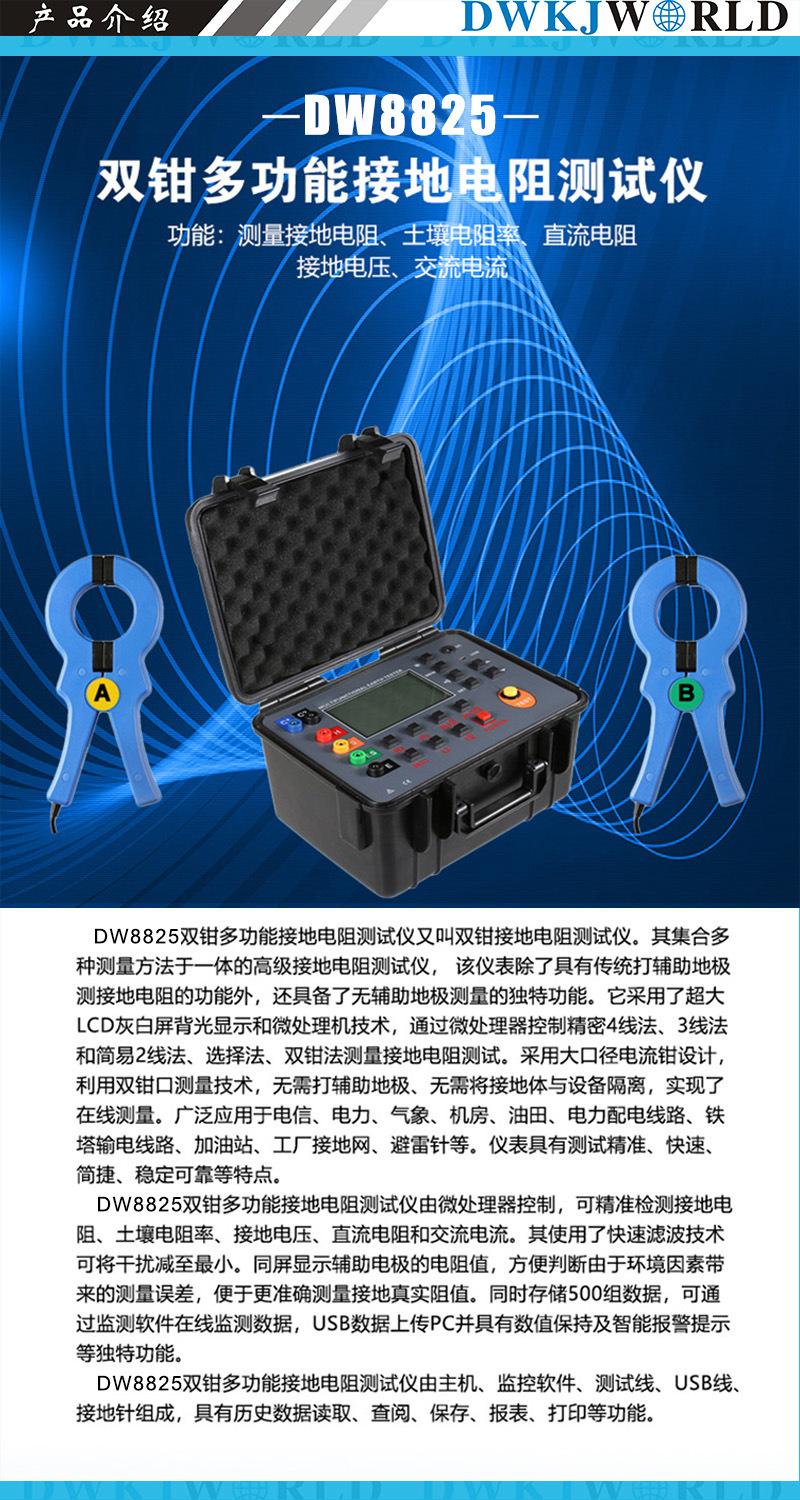 Dwkjworld Dawan Dw8825 Testador de Resistência de Aterramento com Garra Dupla Medidor de Resistência de Aterramento