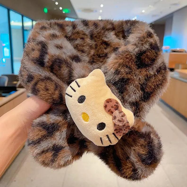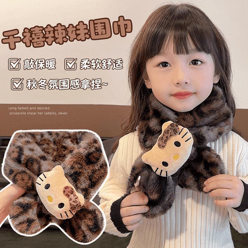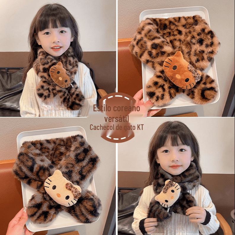 Outono e inverno novo pelúcia leopardo estampa gato cachecol quente cachecol meninas pescoço à prova de vento meninos cachecol frio bebê