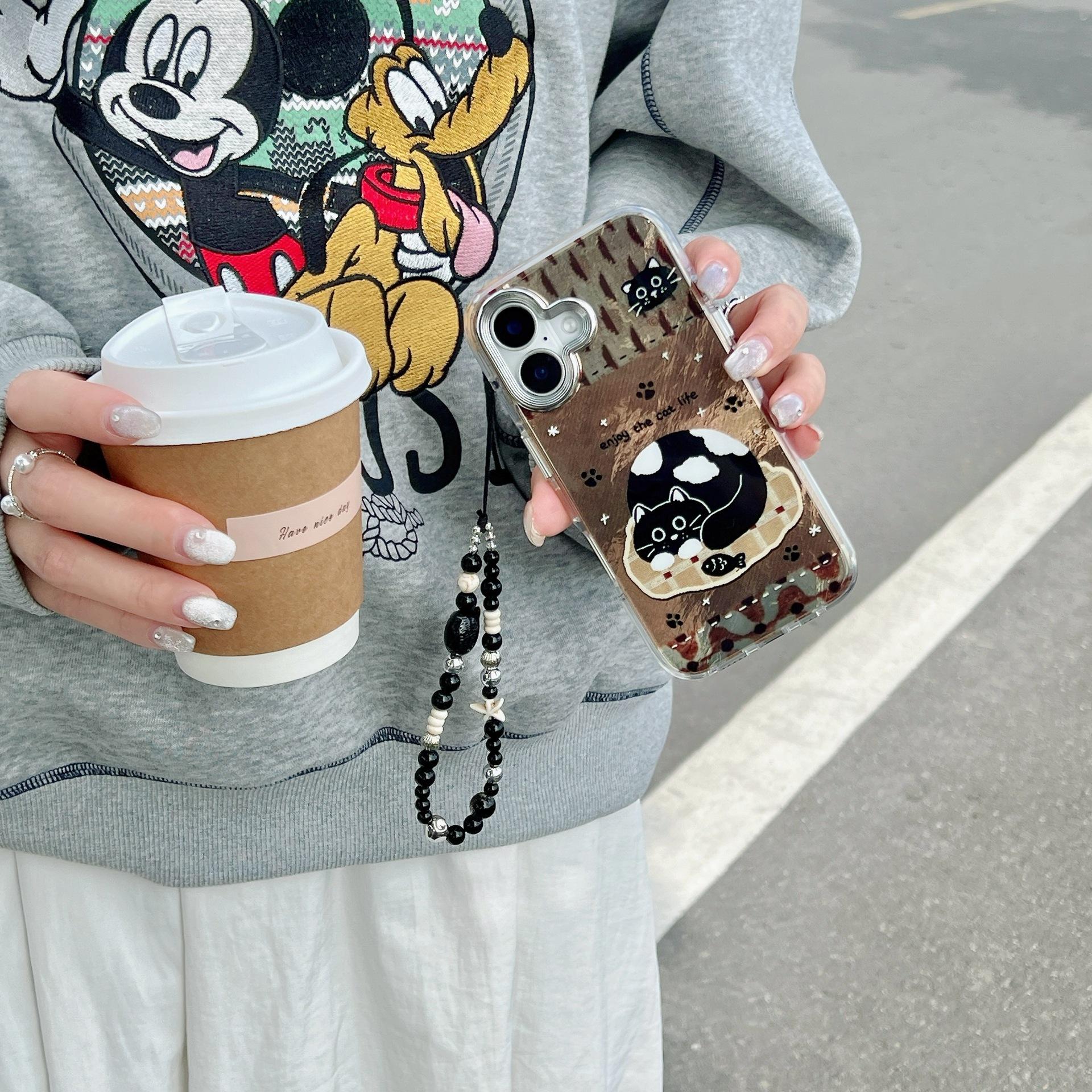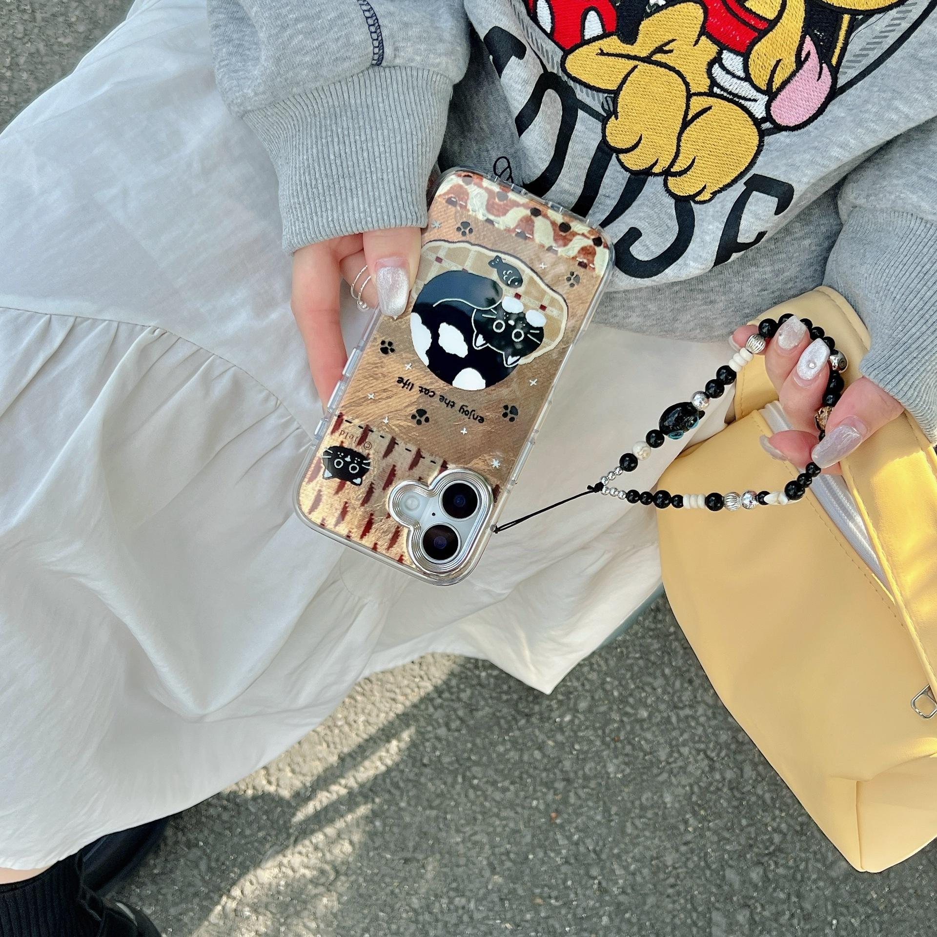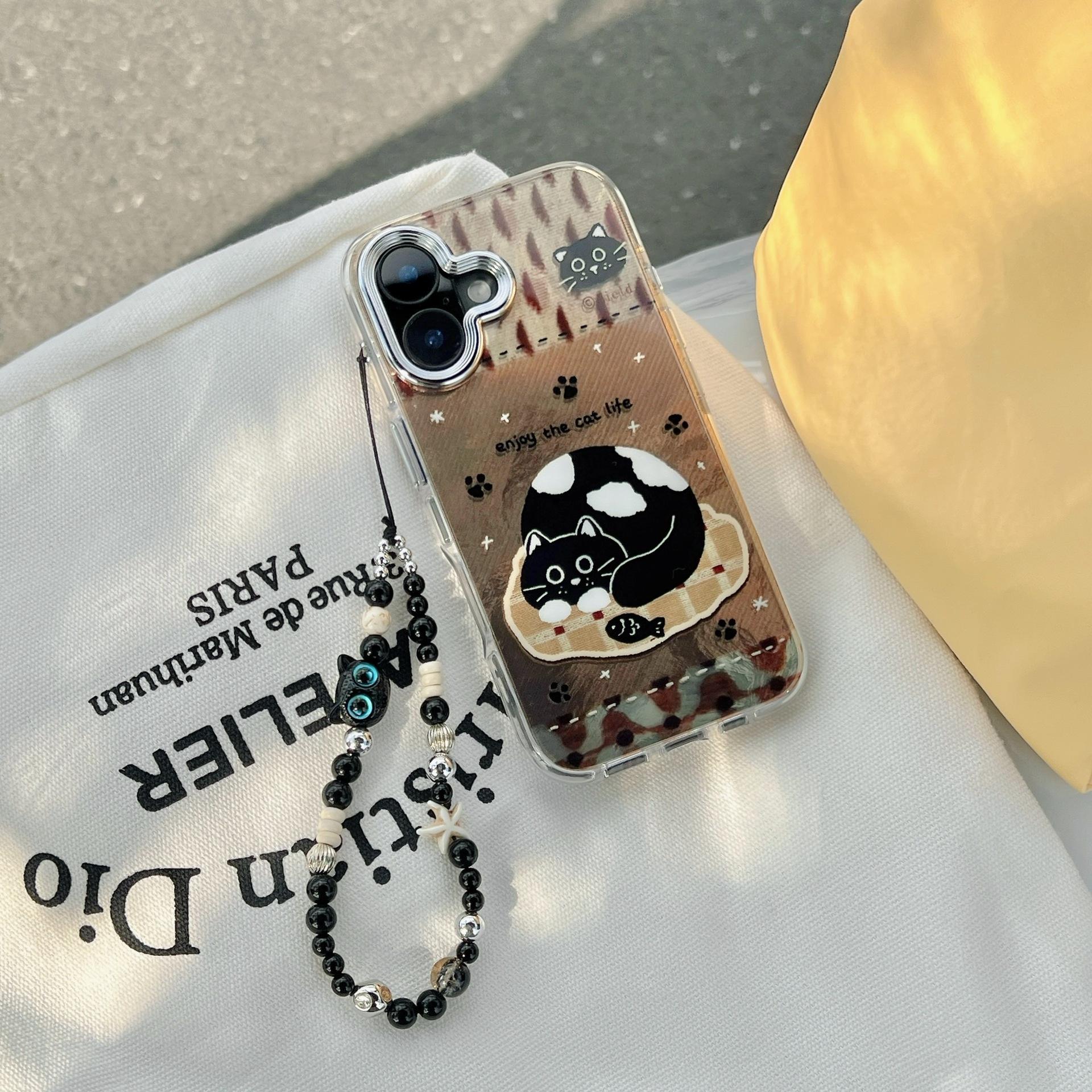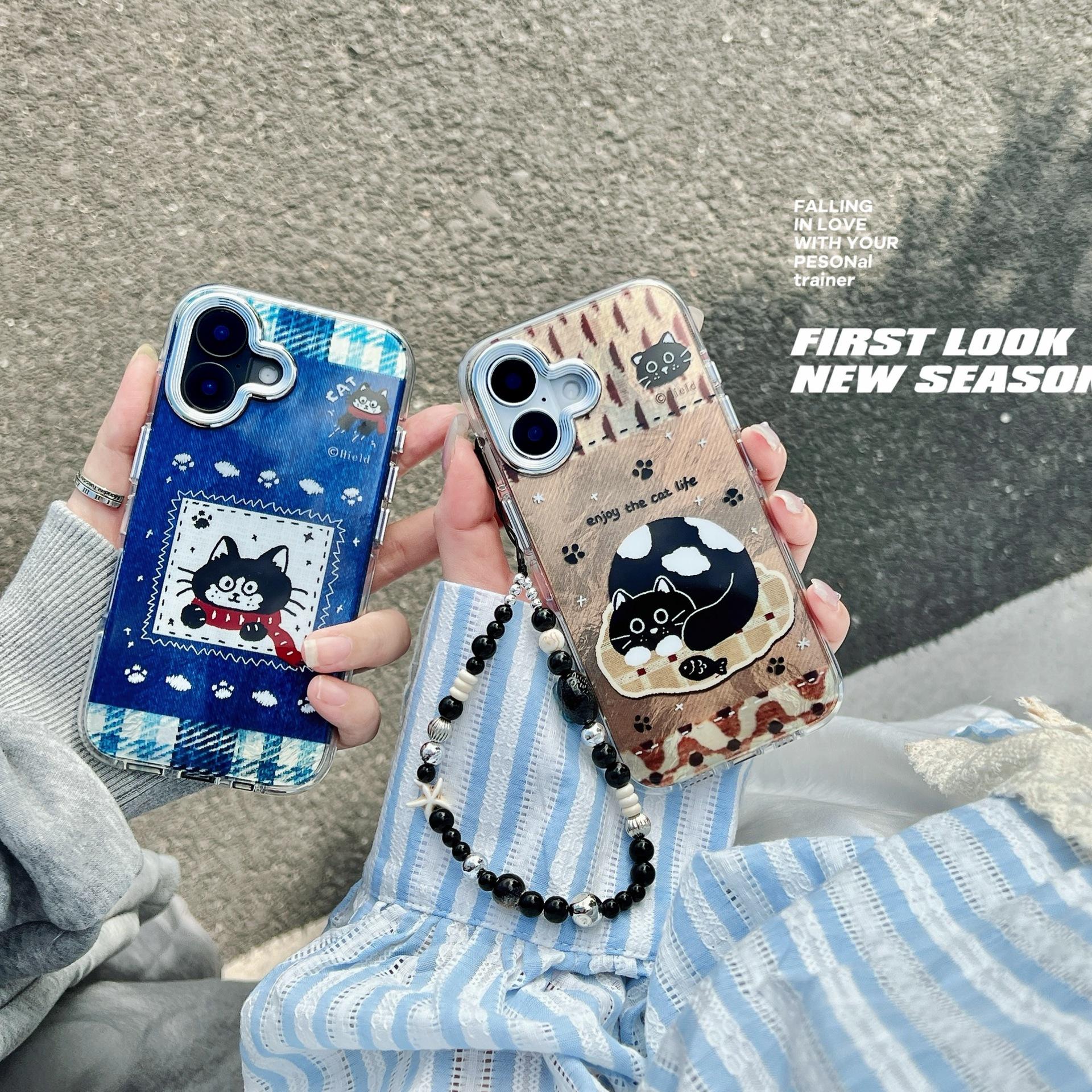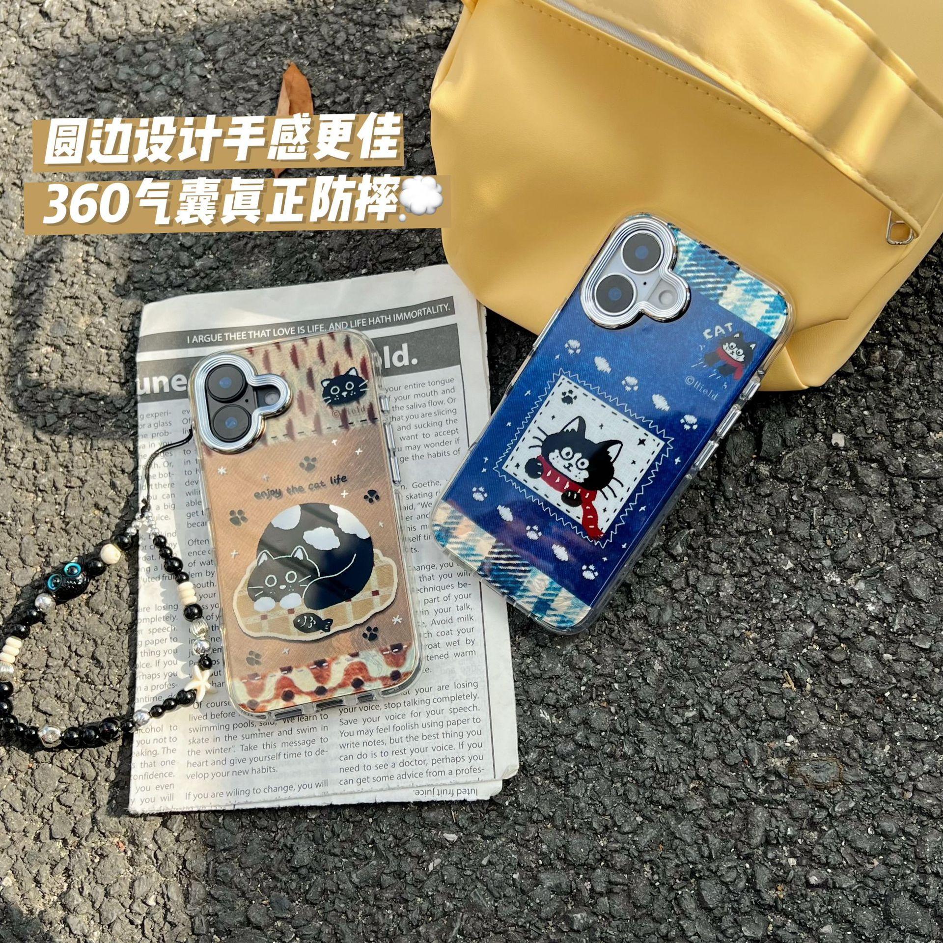 Para Apple 16promax capa de celular anti-queda iPhone15 criativo desenho animado gato 14 corrente 13 bonito duro