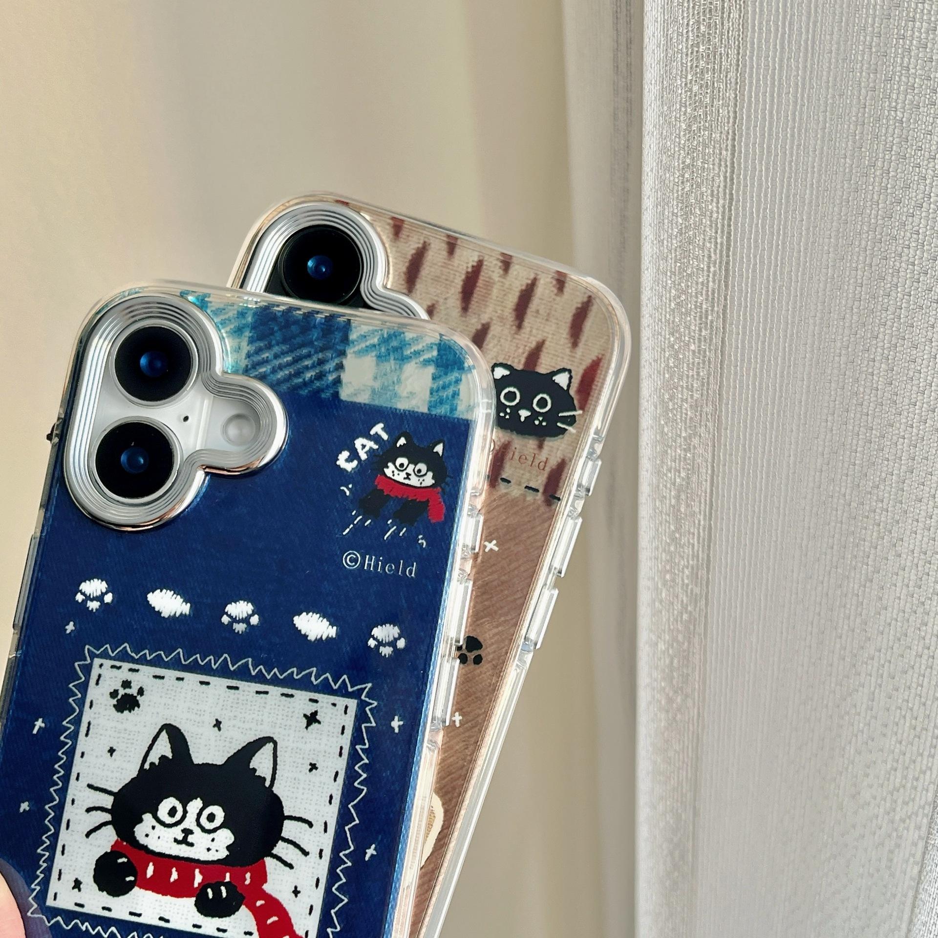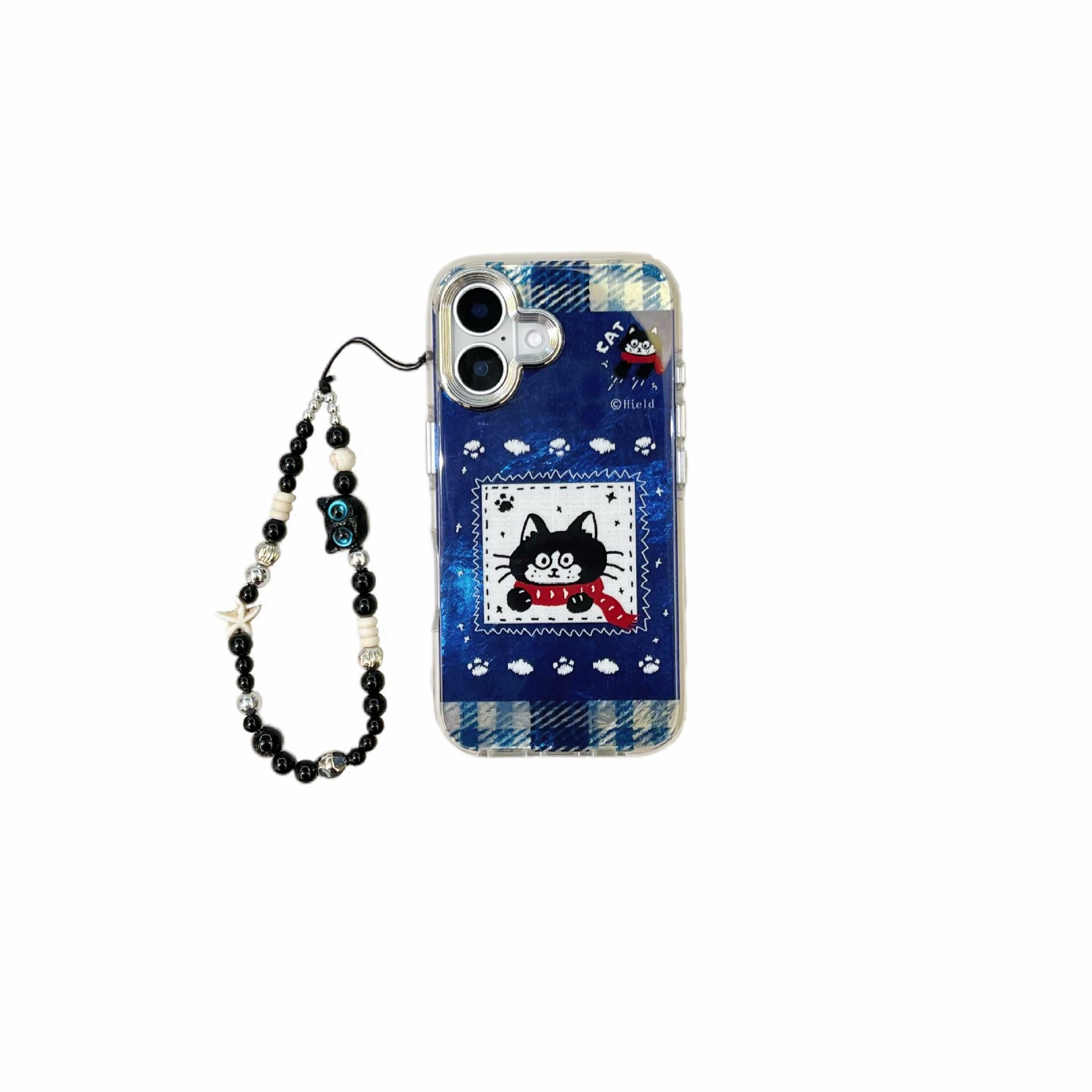 Dark blue scarf cat (single shell), Brown black cat (single shell), Dark blue scarf cat + black cat chain, Bro...