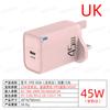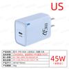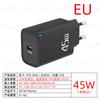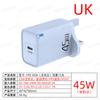 Carregador de Cabeça de Carregamento PD Tipo-C Porta Única Europeu, Americano e Britânico Cabeça de Carregamento Rápido QC3.0 Carregador PD 45W para Celular