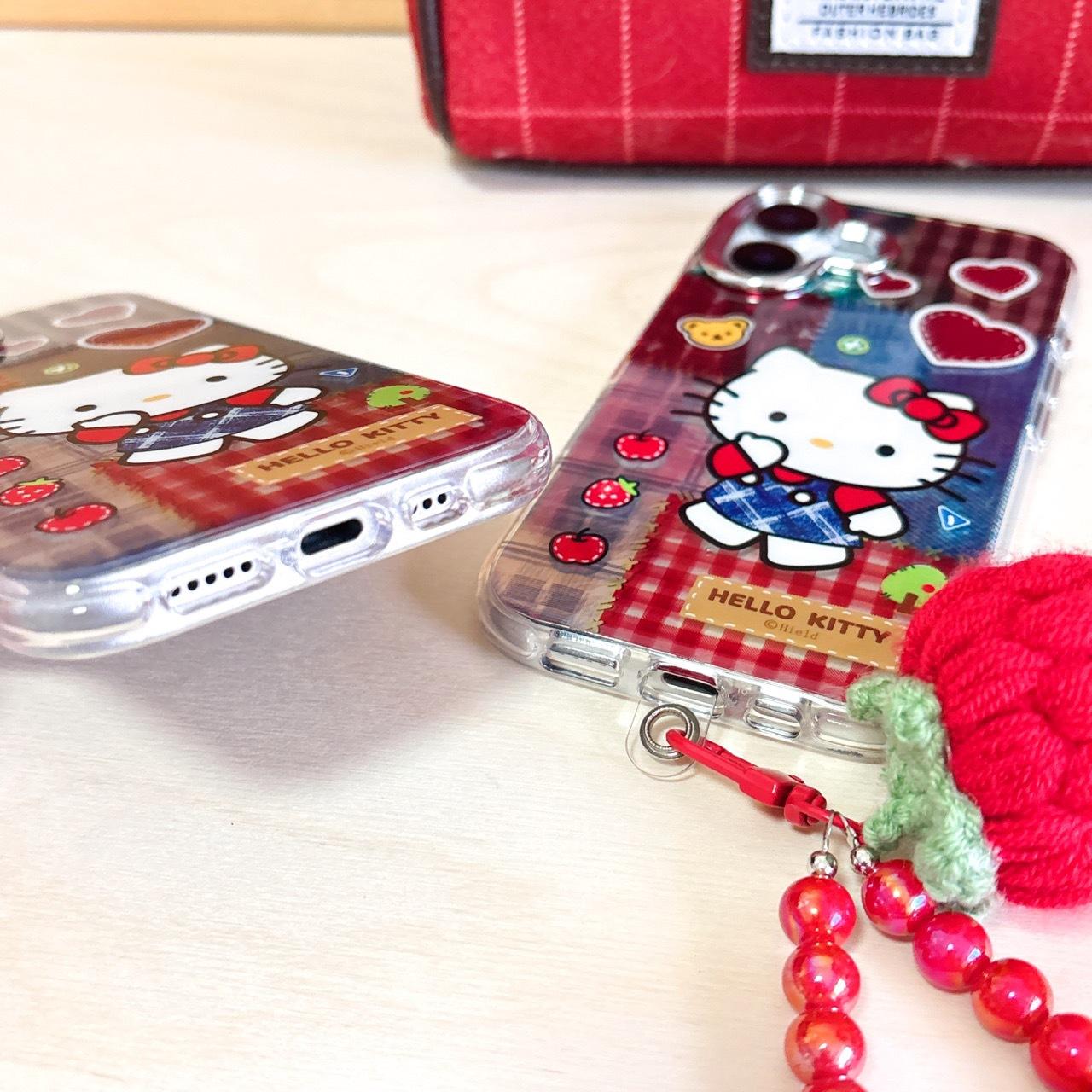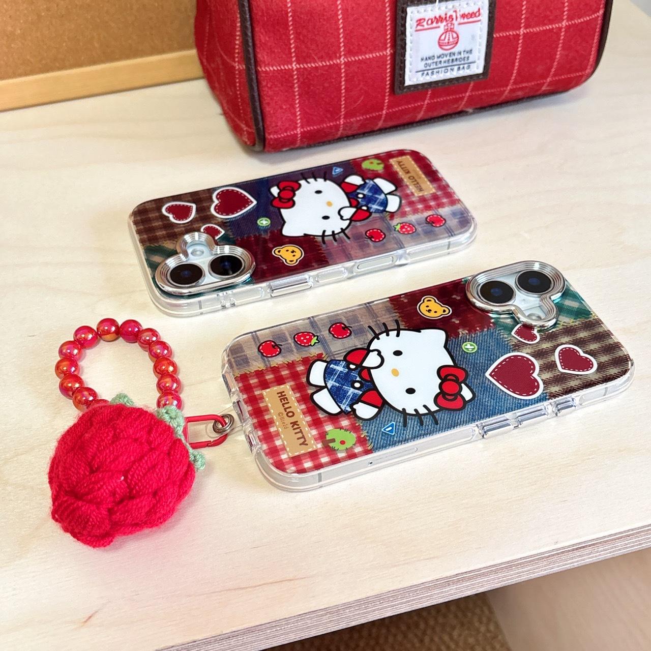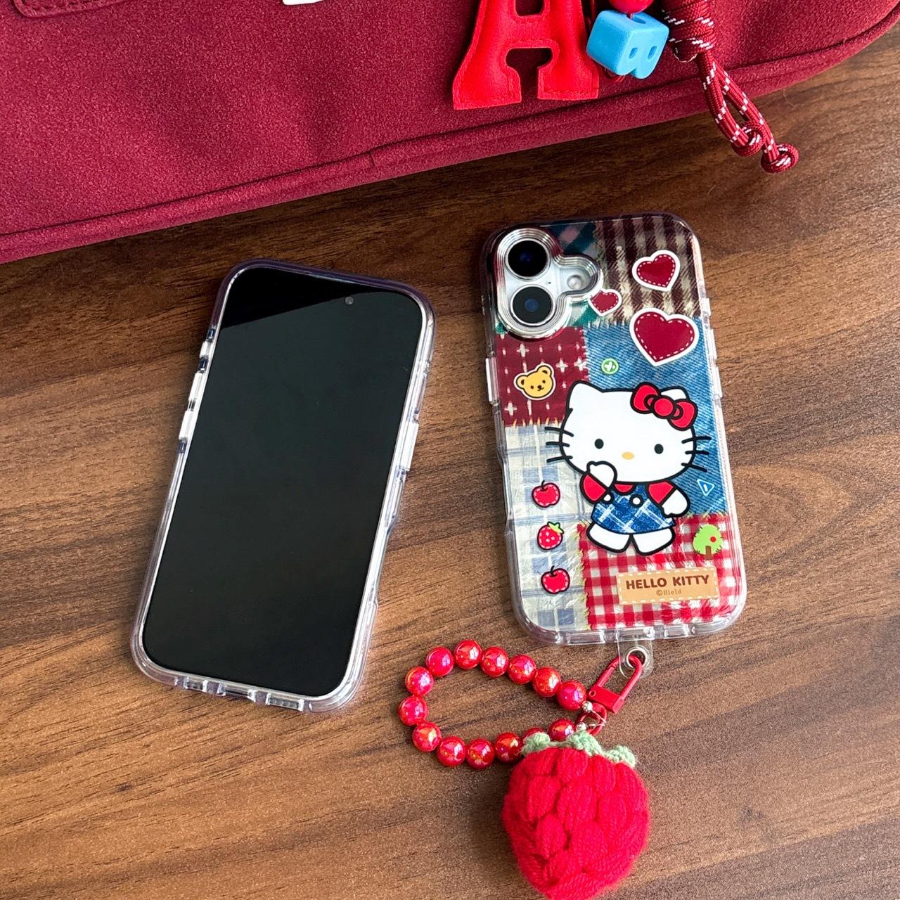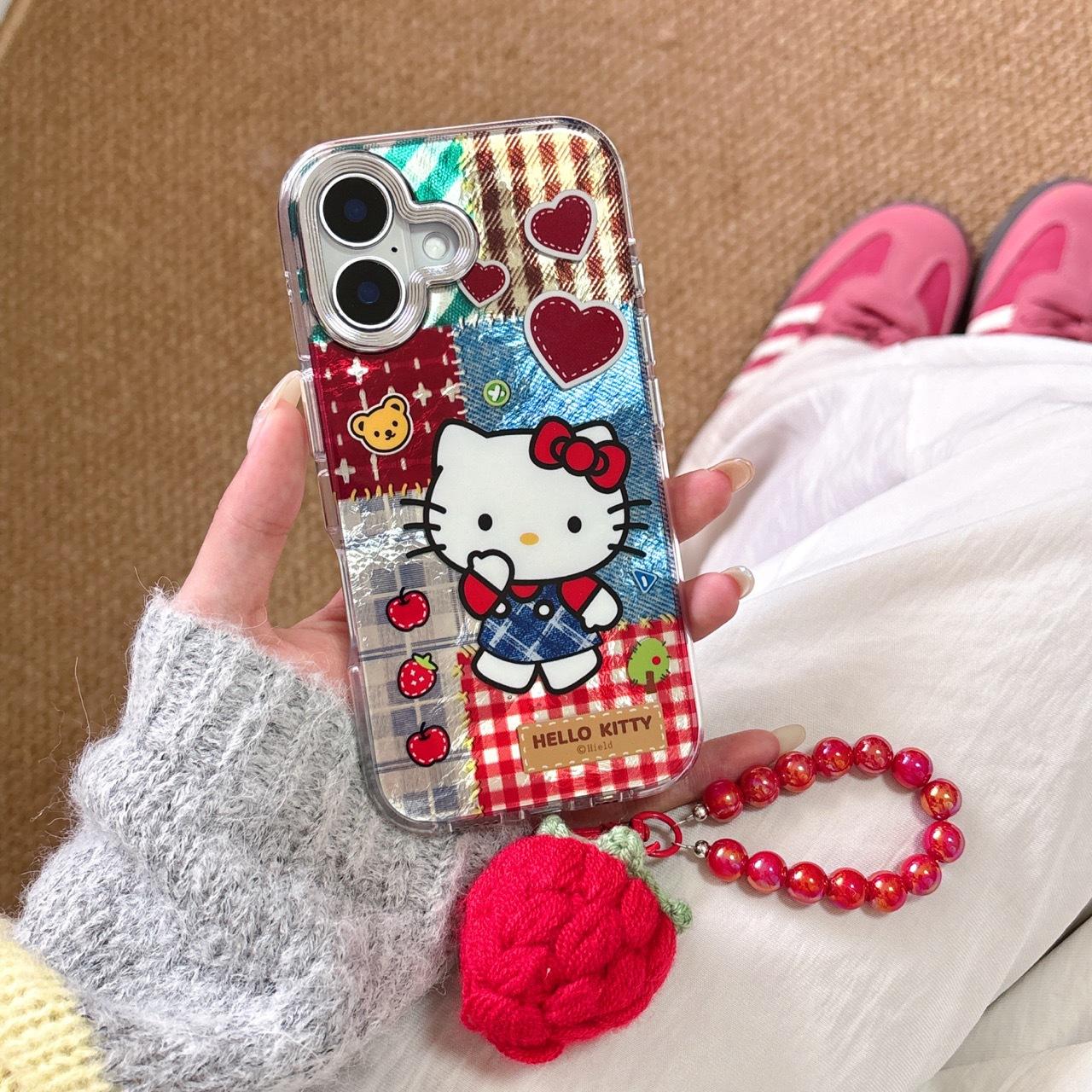Capa de celular fofa patchwork KT Cat para Apple 16promax iPhone15 desenho animado 14 morango portátil 13