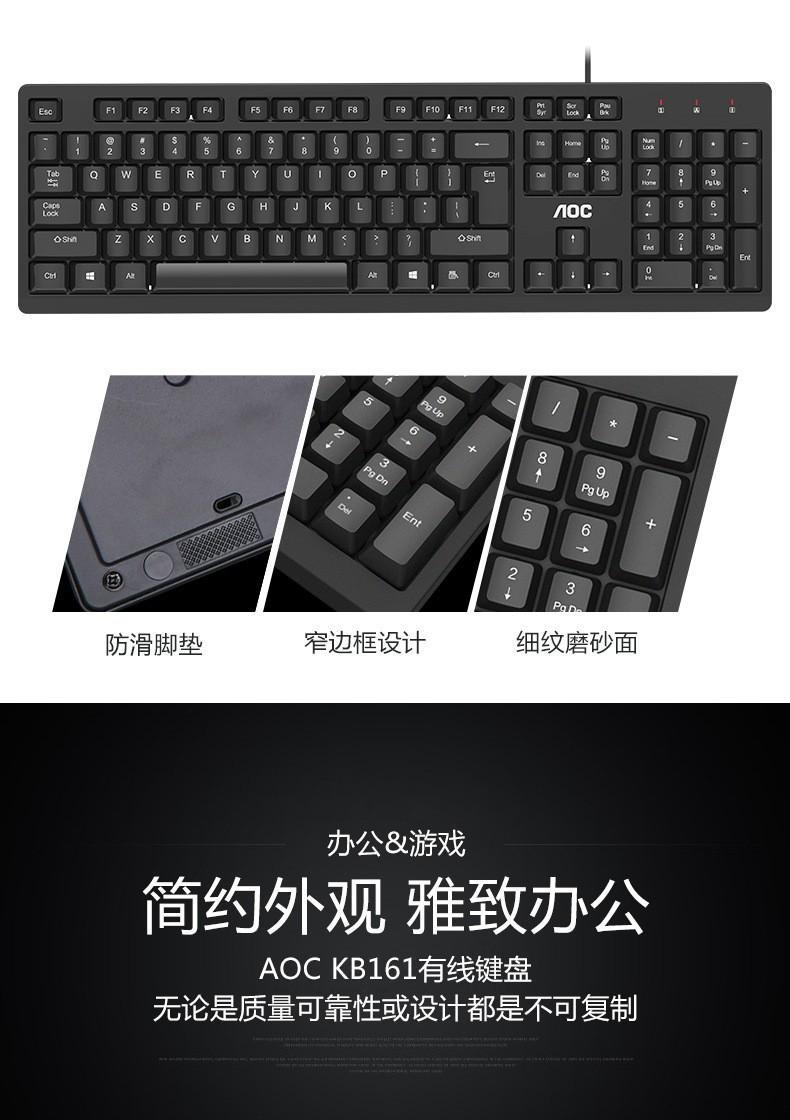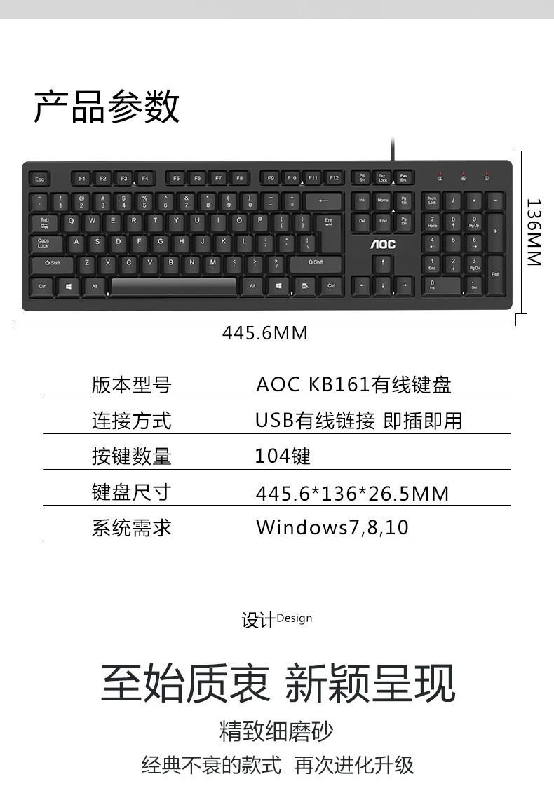TPV AOC KB161 Teclado com fio Negócios Escritório Casa Elétrica Competição USB Desktop Teclado de computador Presente Atacado