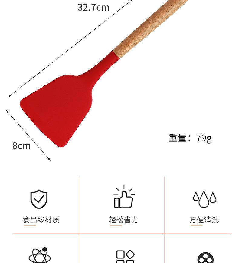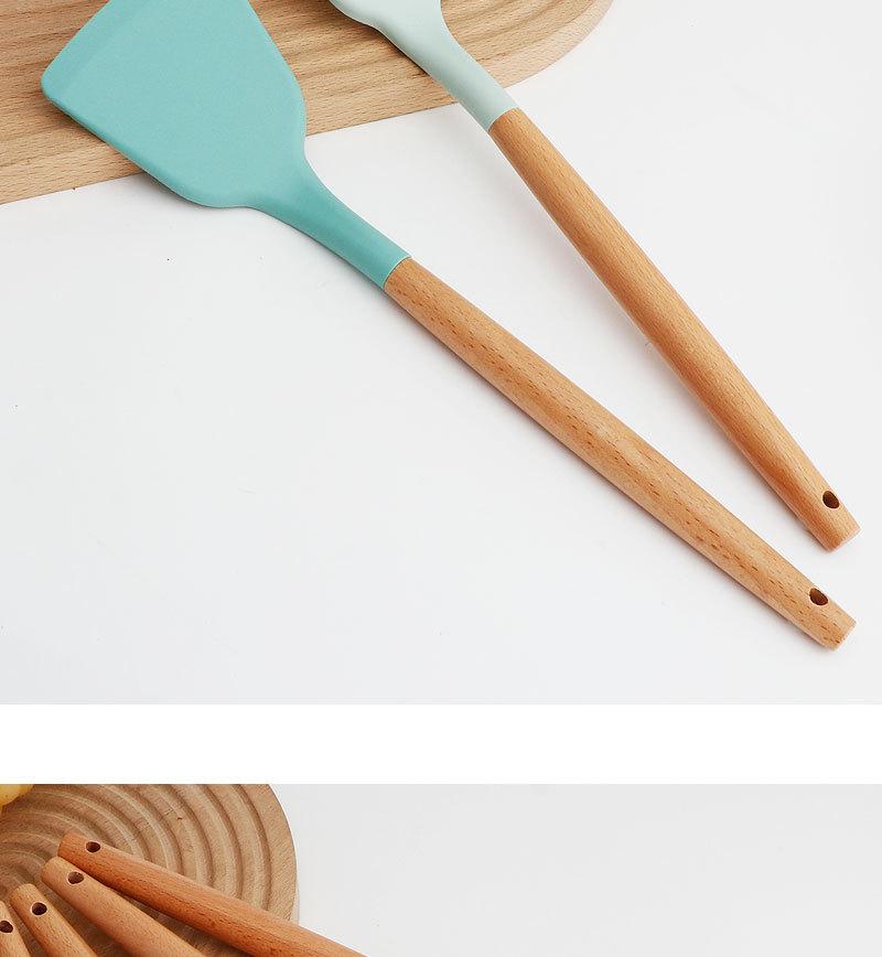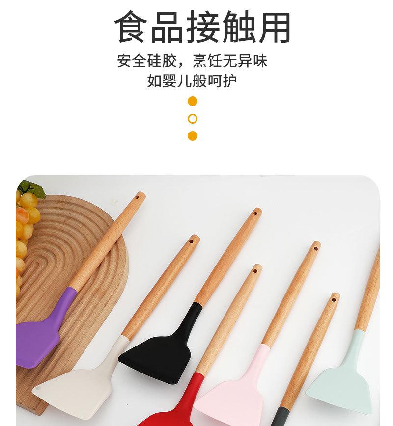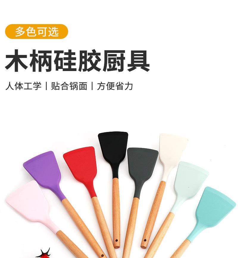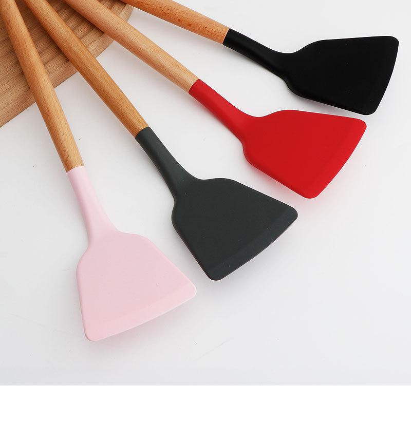 Espátula de silicone com cabo de madeira Espátula com cabo de faia Colher de silicone de grau alimentício Utensílios de cozinha antiaderentes Panela resistente a altas temperaturas Utensílios de cozinha