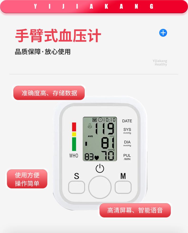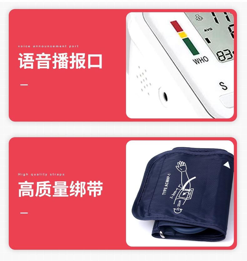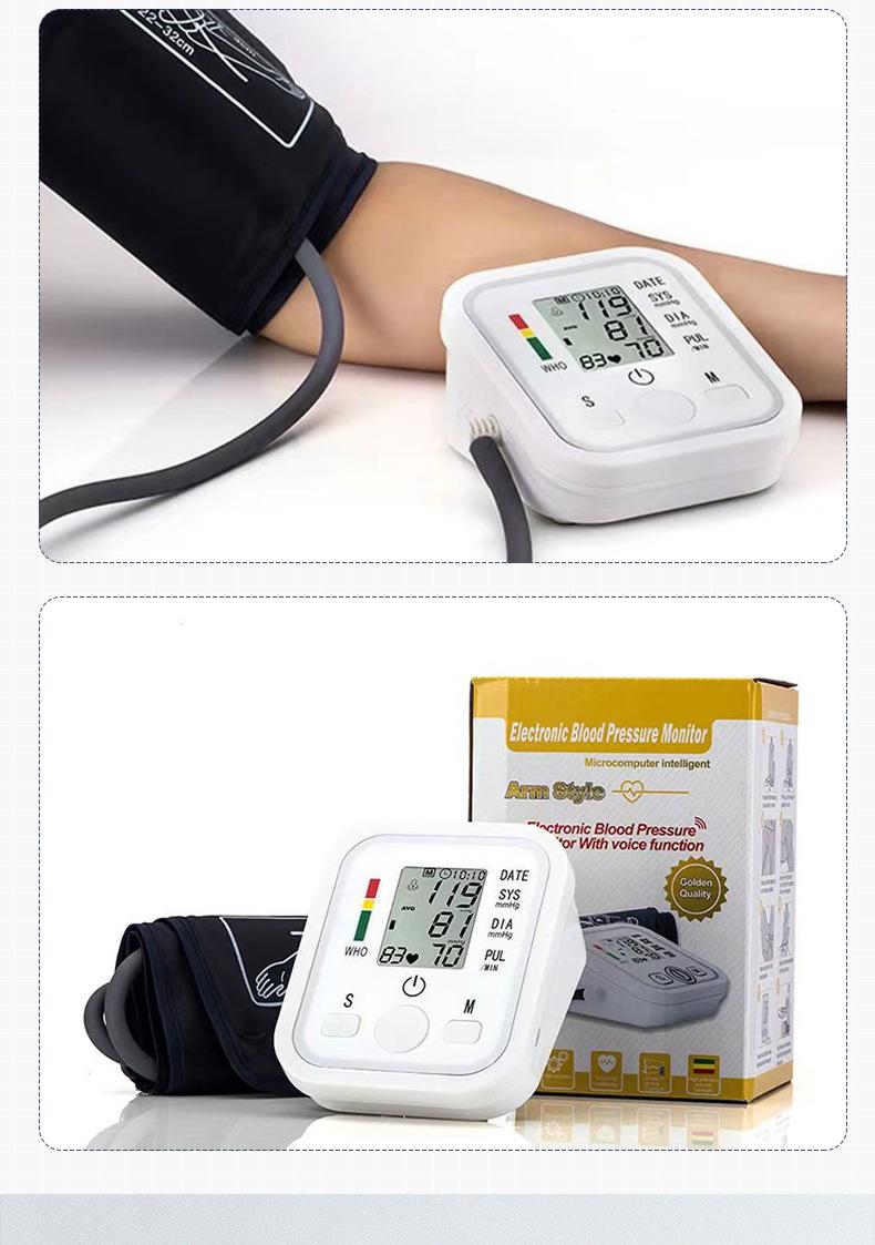 Novo Monitor de Comércio Exterior Monitor Eletrônico de Pressão Arterial Instrumento de Medição Voz em Inglês Inteligente Alta Precisão Totalmente Automático Tipo de Braço