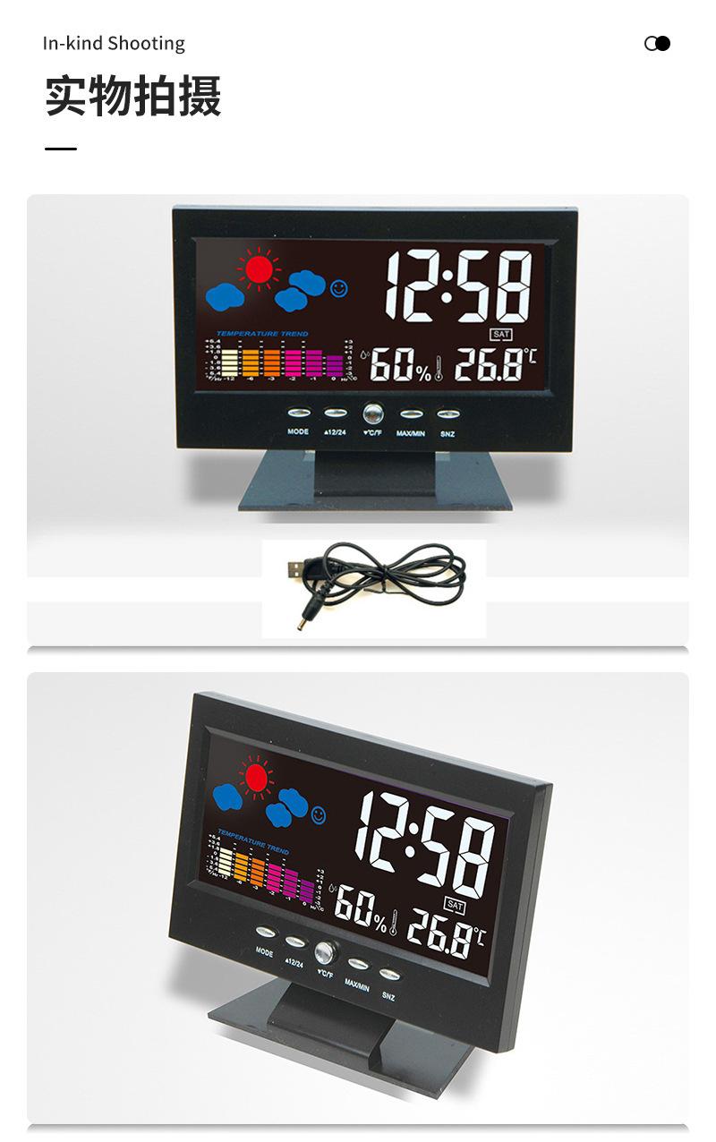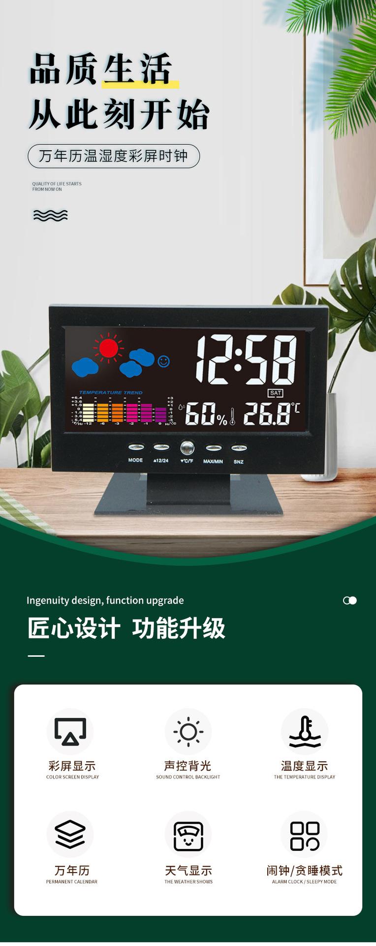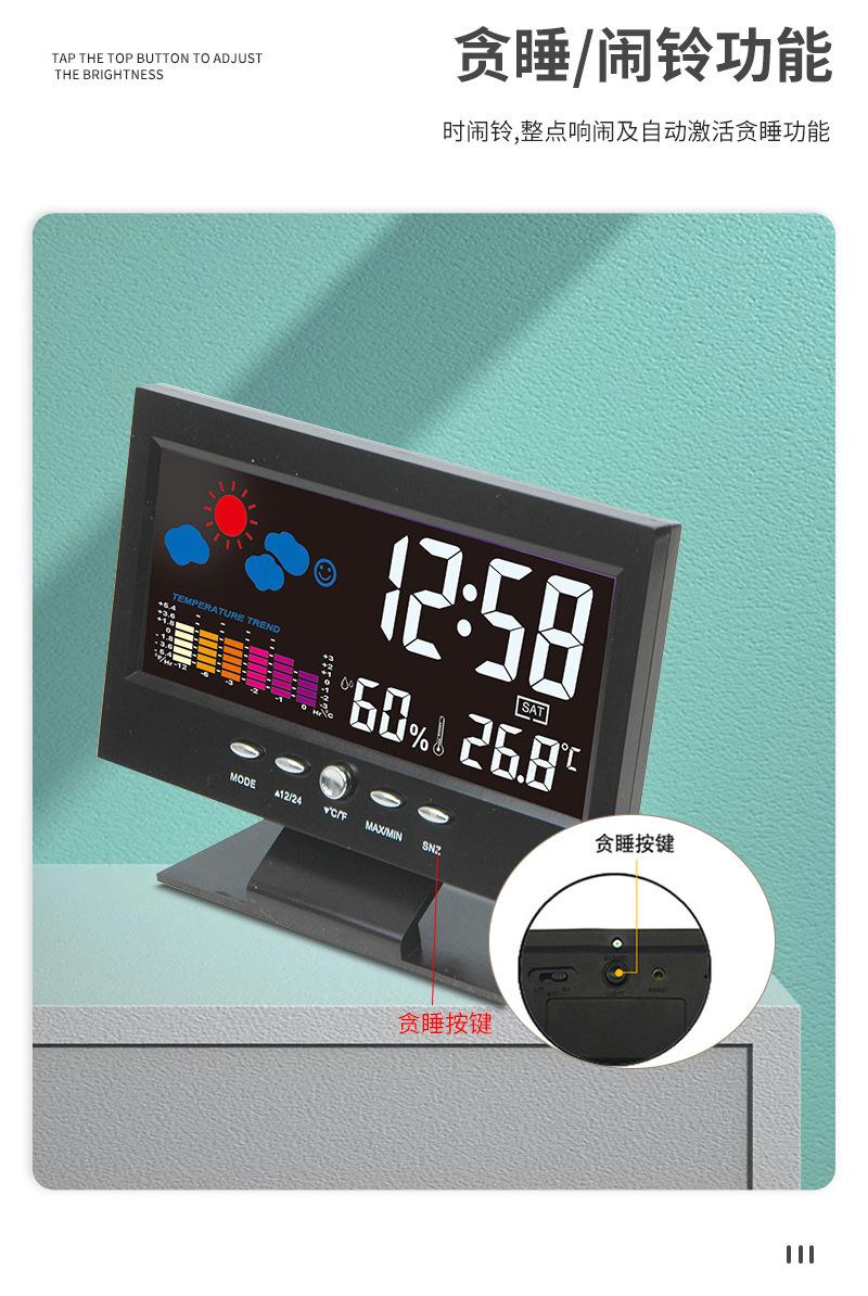 Despertador de clima com tela colorida explosiva, relógio criativo multifuncional de temperatura e umidade, previsão do tempo simples, relógio eletrônico