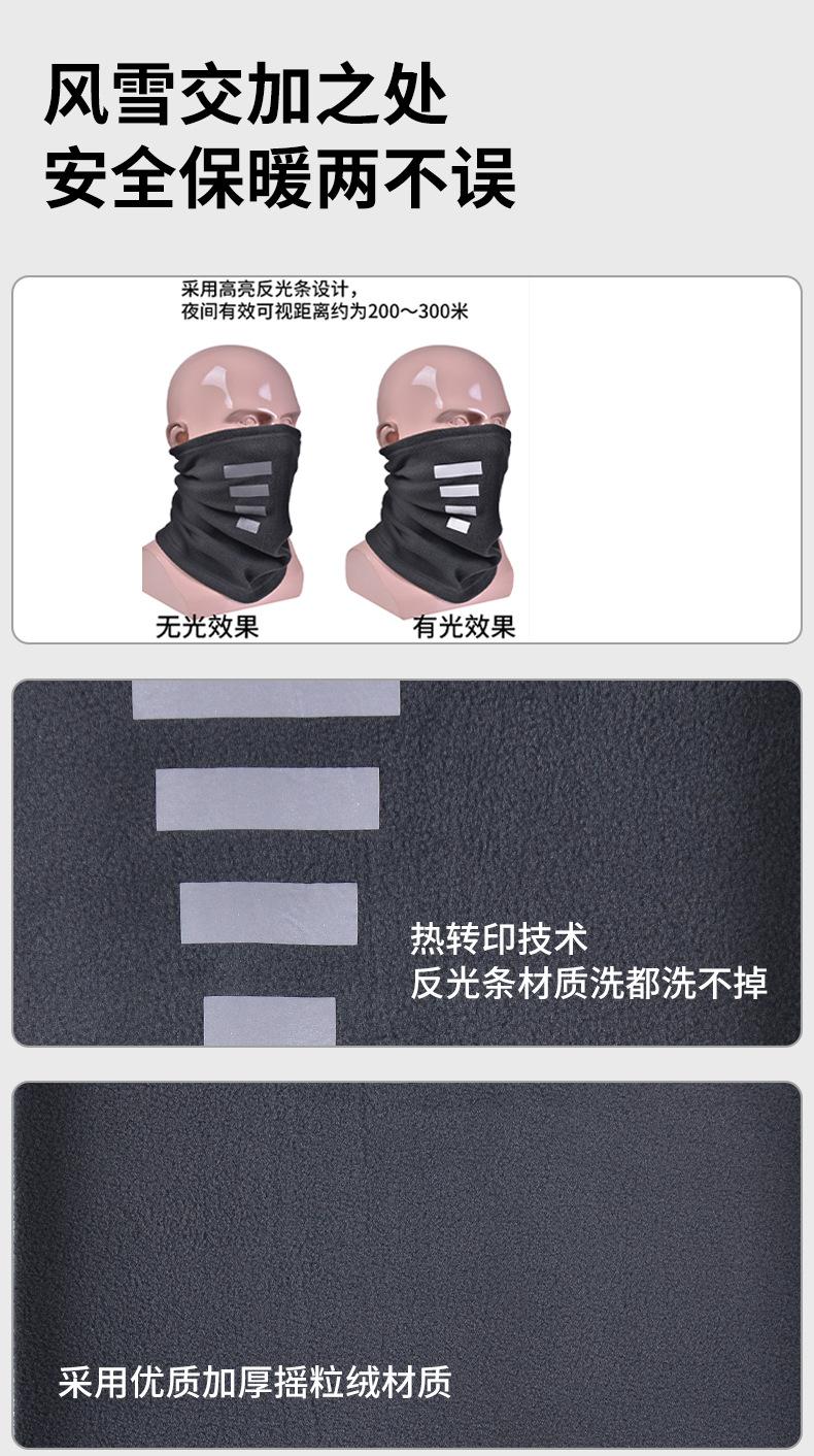 Máscara de equitação noturna de inverno, lã polar, quente, faixa de pescoço, proteção contra frio ao ar livre, faixa refletiva de esqui, cordão, meia faixa de pescoço