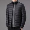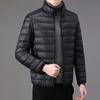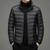 Casaco masculino de algodão acolchoado leve para outono e inverno com capuz e gola vertical curta para meia-idade e idosos, leve, fino e quebrado