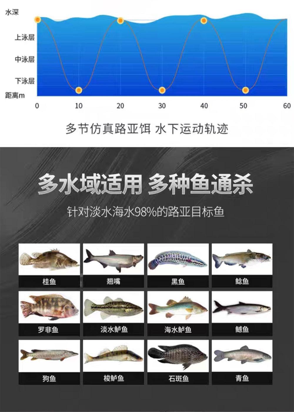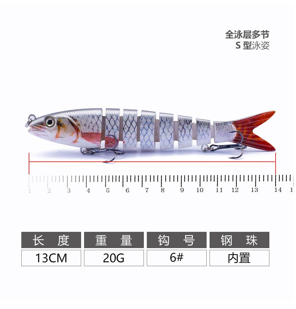 Conjunto de 3 Peças de Isca Multissegmentada 8 Seções Isca Biônica Isca Submersível Isca de Plástico Equipamento de Pesca