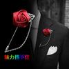 Broche Corsage Folha Prateada Rosa para Terno Masculino Flor de Lapela Masculina e Feminina Alfinete Longo de Uma Palavra com Corrente Cor Opcional
