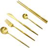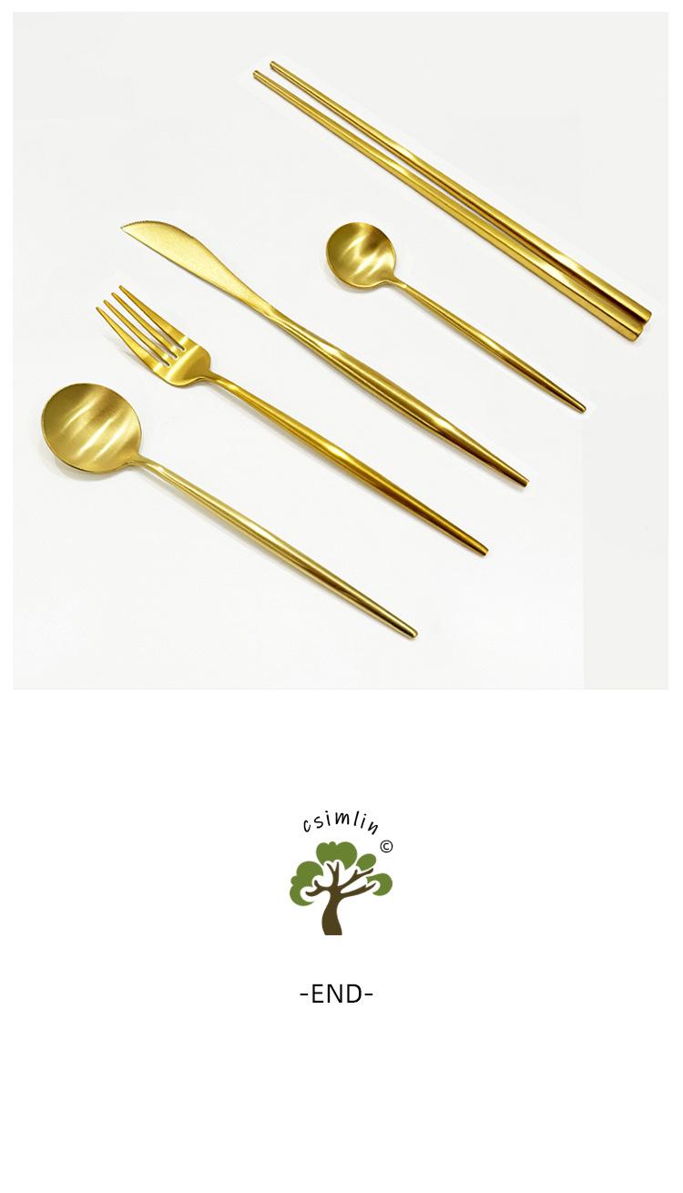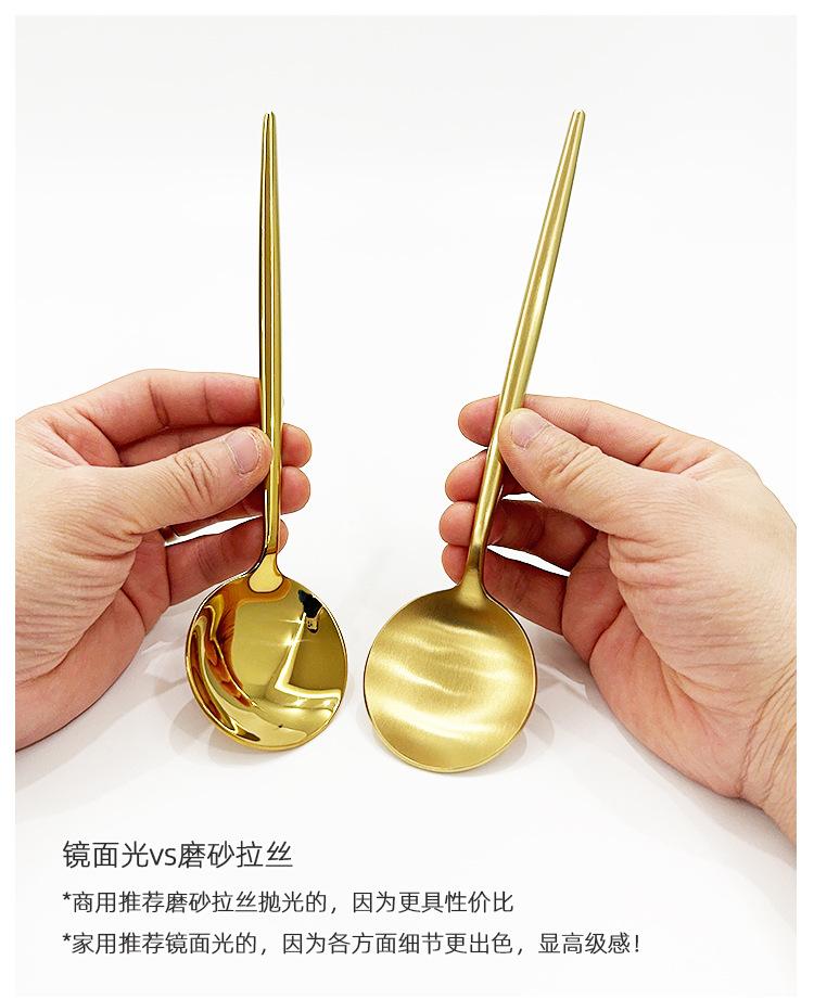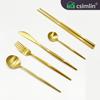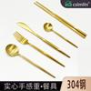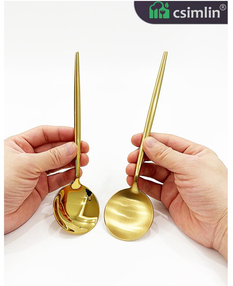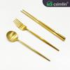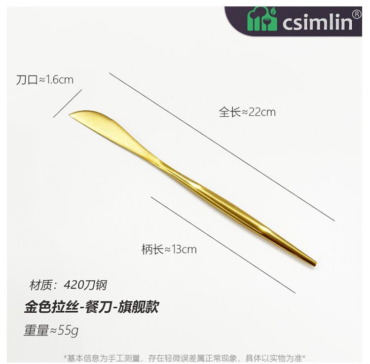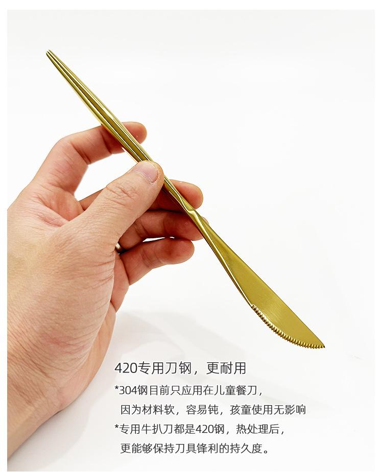 Faca, garfo e colher de bife dourados de estilo europeu, conjunto de três peças de talheres portugueses em aço inoxidável 304