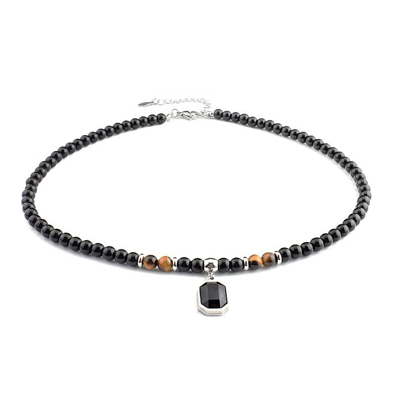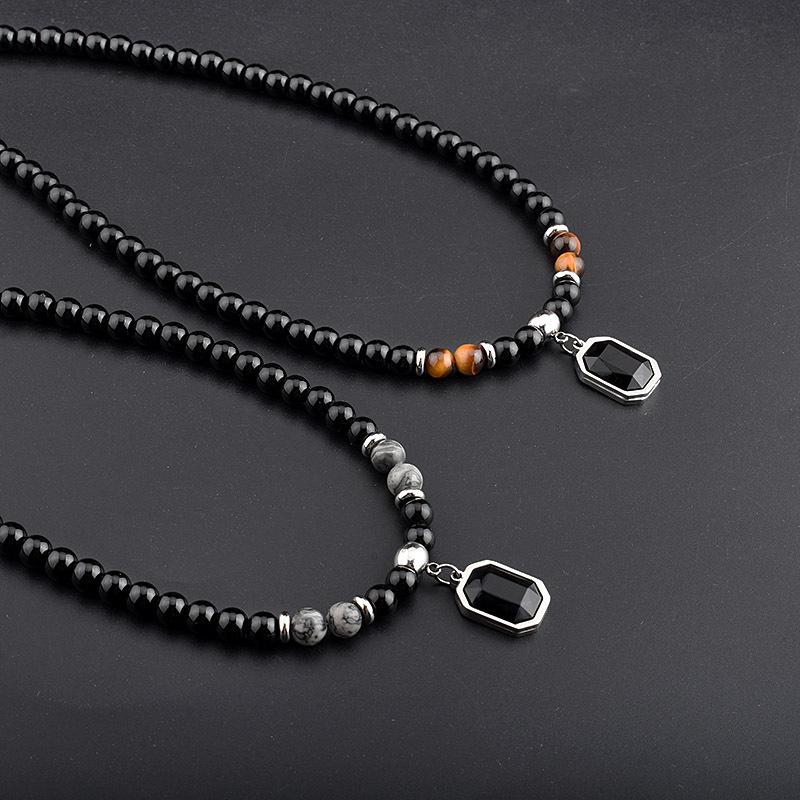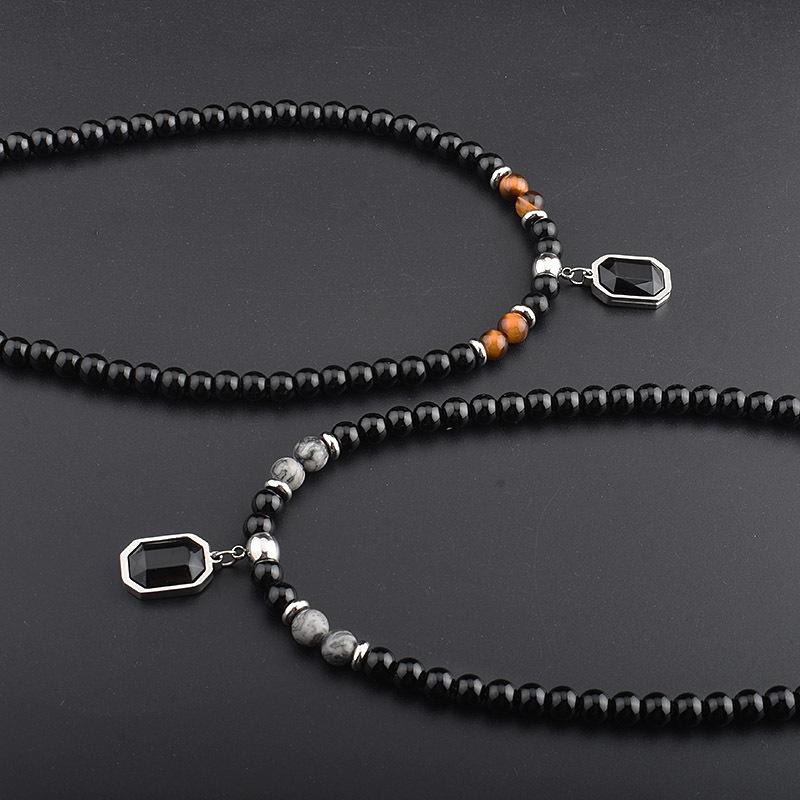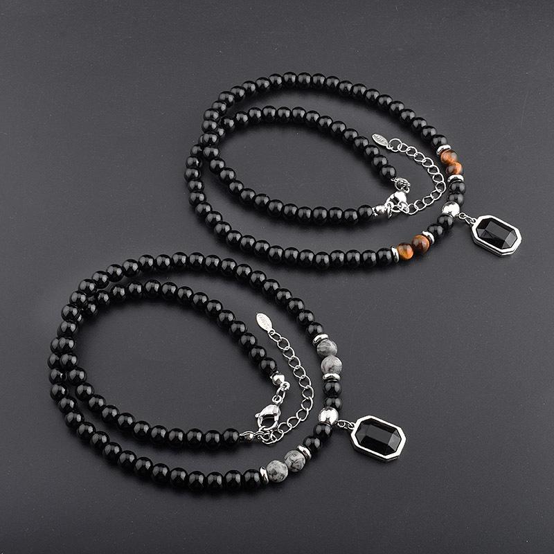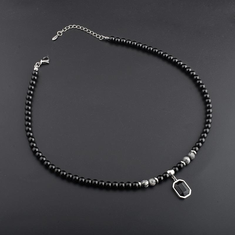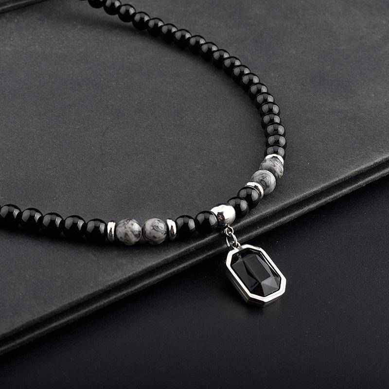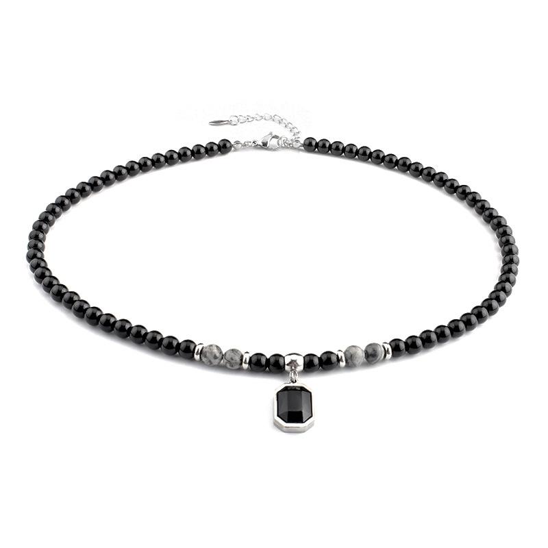 Compre Colar de pedra preciosa preta de aço titânio europeu e americano, moderno, hip hop, clavícula, joias simples para homens e mulheres no atacado no Joom.pro