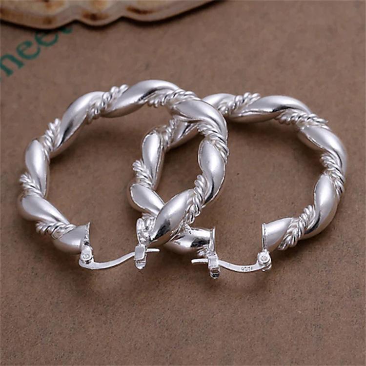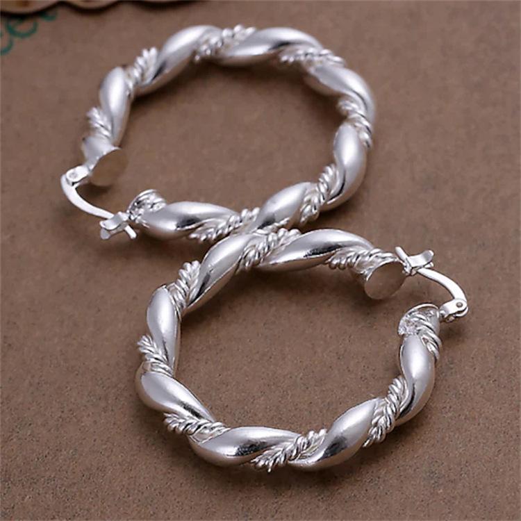 Brincos de argola femininos com faca torcida, brincos banhados a prata, joias de prata adequadas para festas casuais diárias