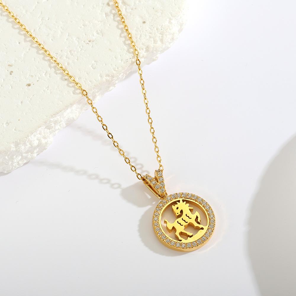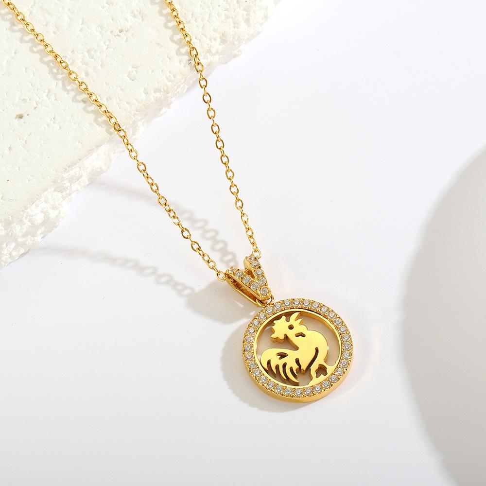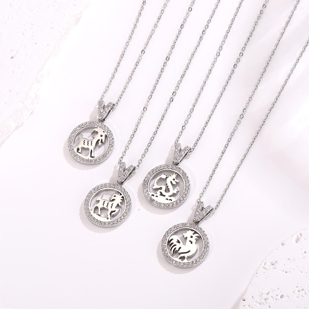 Compre Colar Aço Titânio Padrão Redondo Zodíaco Luxo Acessível Simples Elegante Nicho Colar High-End Acessórios Pingente Verão Feminino no atacado no Joom.pro