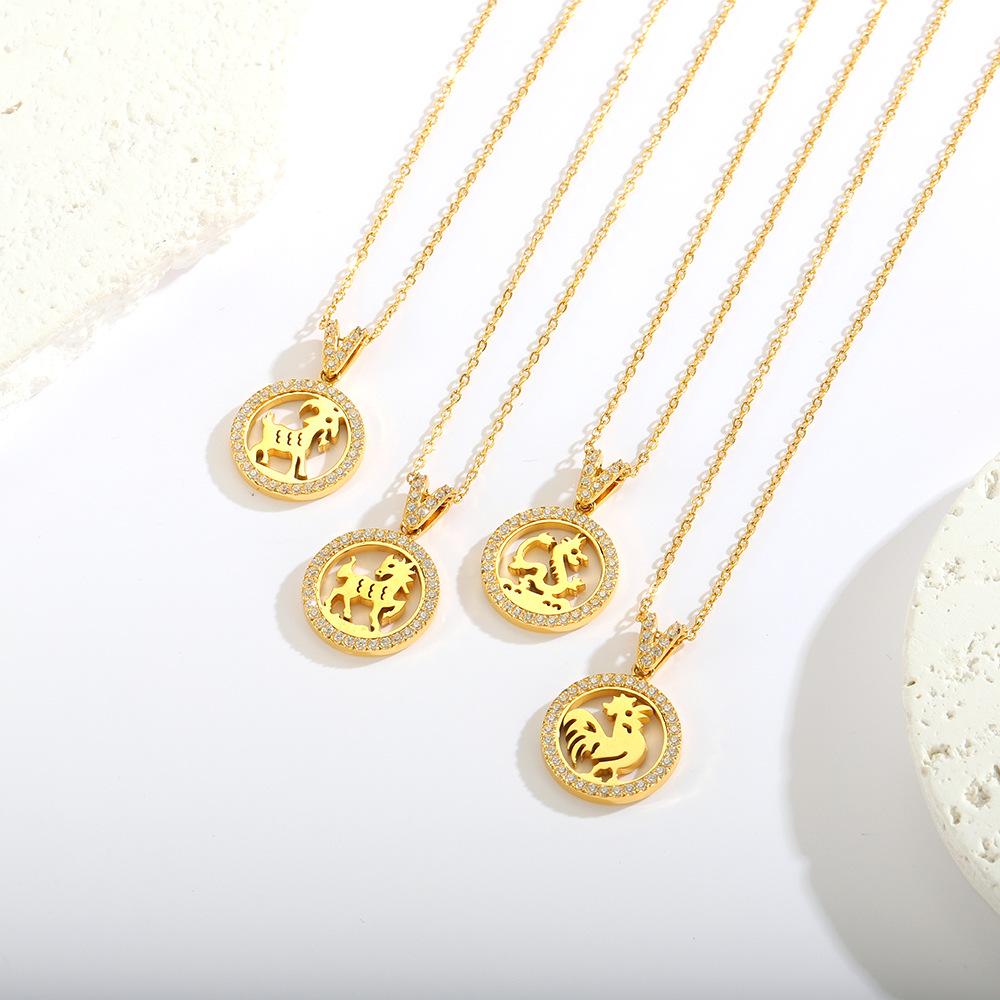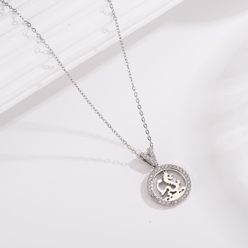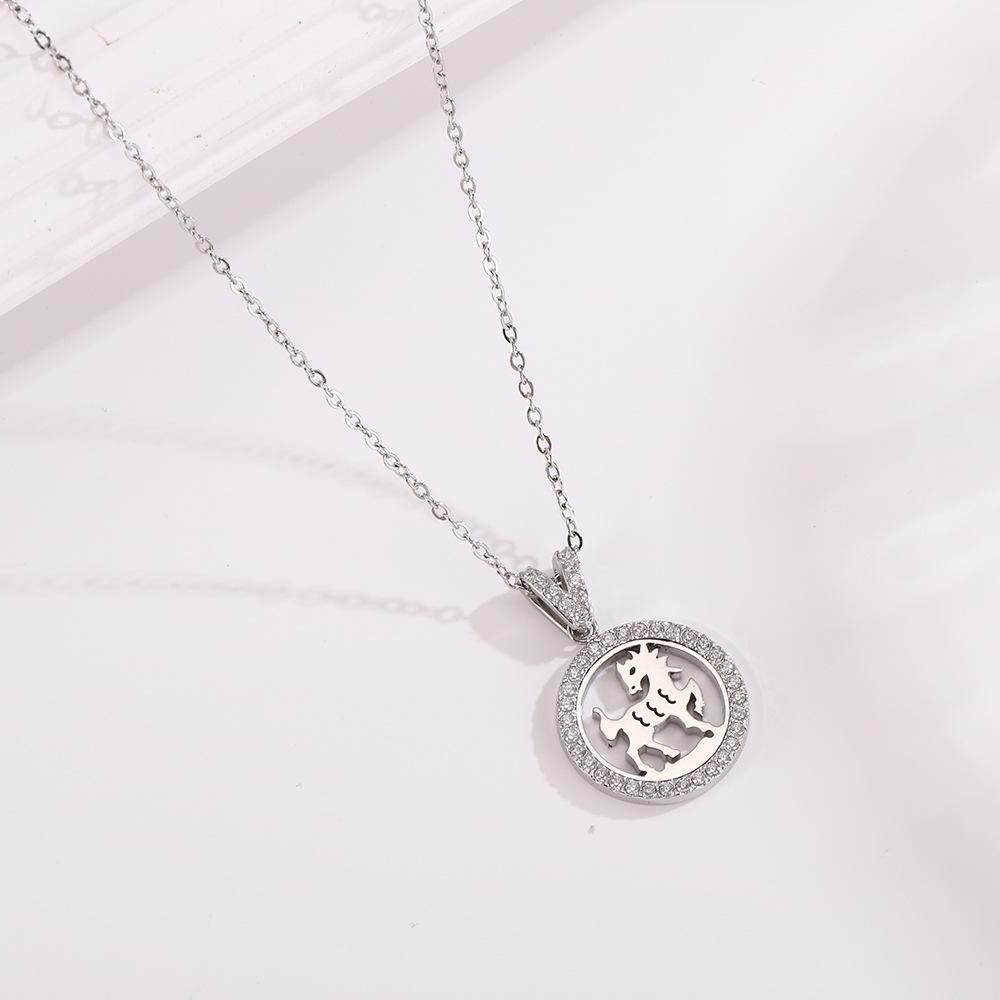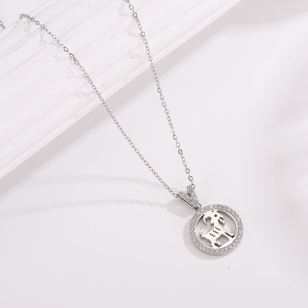 Compre Colar Aço Titânio Padrão Redondo Zodíaco Luxo Acessível Simples Elegante Nicho Colar High-End Acessórios Pingente Verão Feminino no atacado no Joom.pro