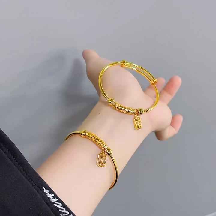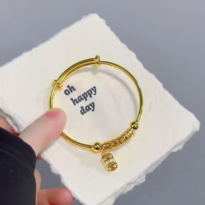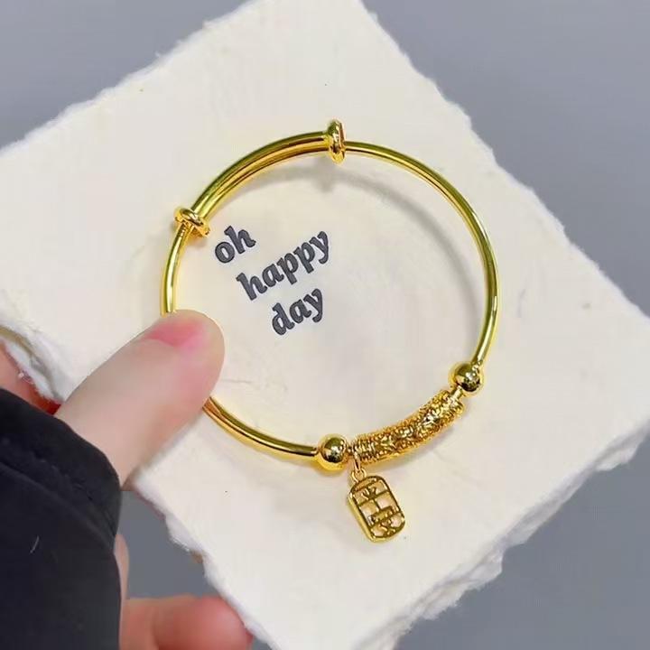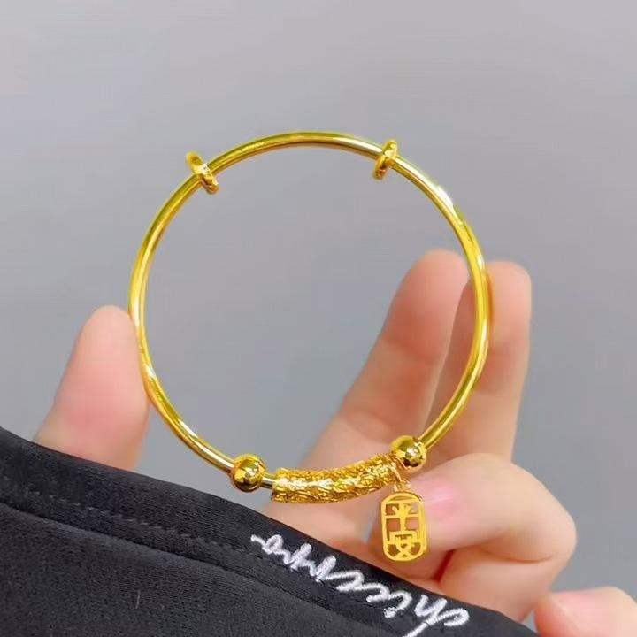 Pulseira de ouro Xiangyun Ping An Push-Pull Vietnam Shajin Novo estilo chinês Estilo nacional Sólido Pulseira ajustável Atacado