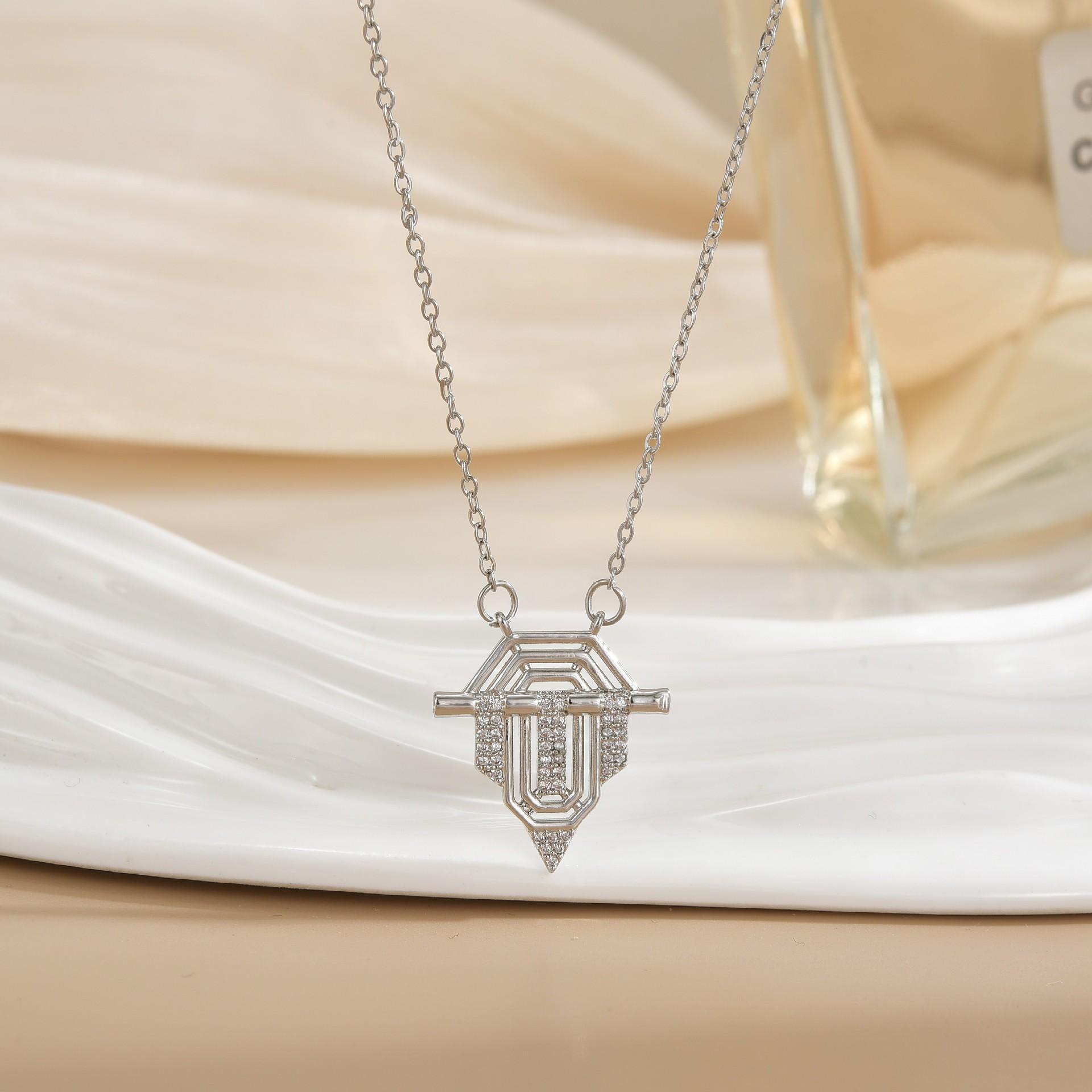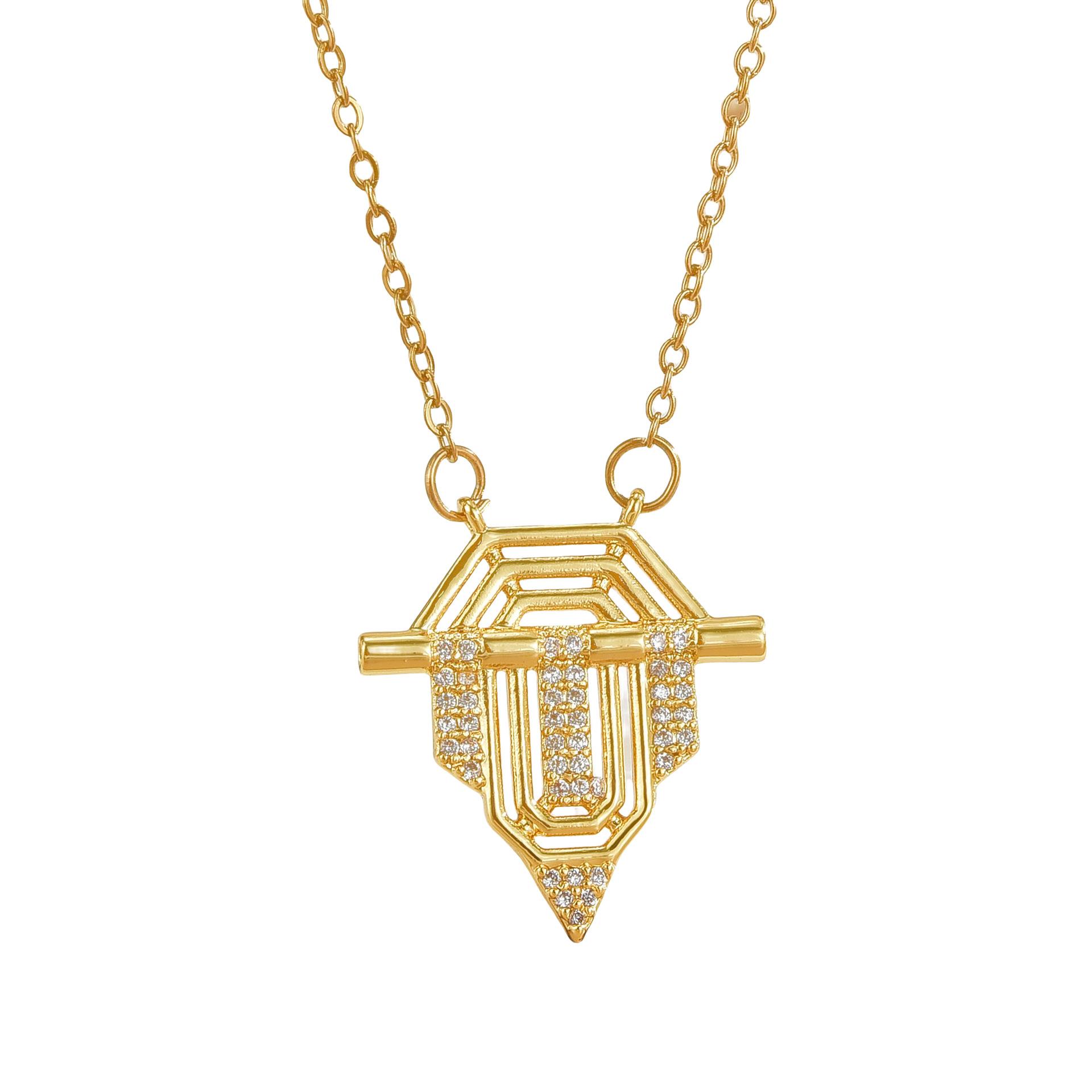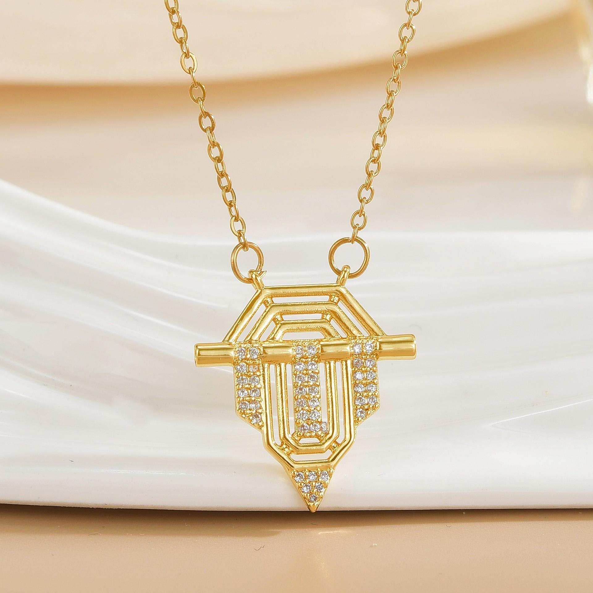 Cross-border Retro Turkish Style Micro-incrustado Zircon Light Luxury Style Escudo Pingente Colar Novo Nicho Corrente Ornamentos da moda