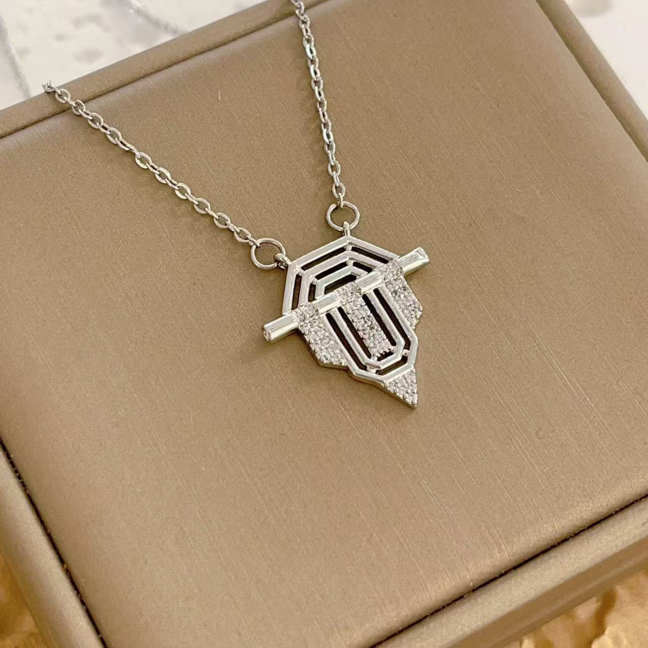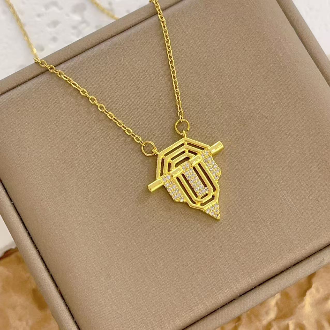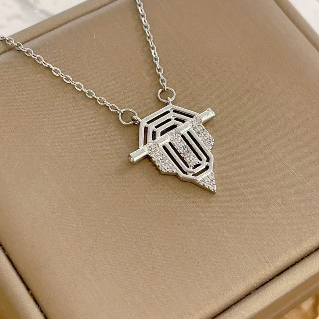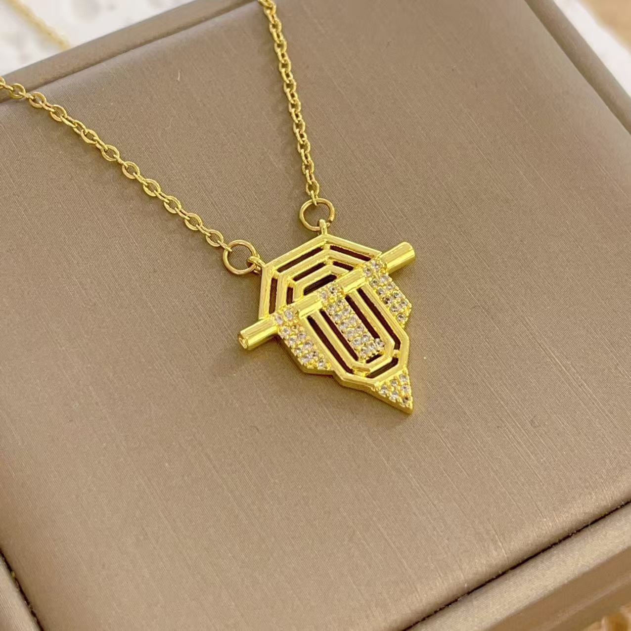 Cross-border Retro Turkish Style Micro-incrustado Zircon Light Luxury Style Escudo Pingente Colar Novo Nicho Corrente Ornamentos da moda