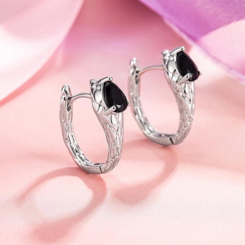 Brincos de personalidade doce e legal com fivela de orelha de cobra, diamante preto, prata, estilo frio, design de nicho, brincos simples e modernos para mulheres