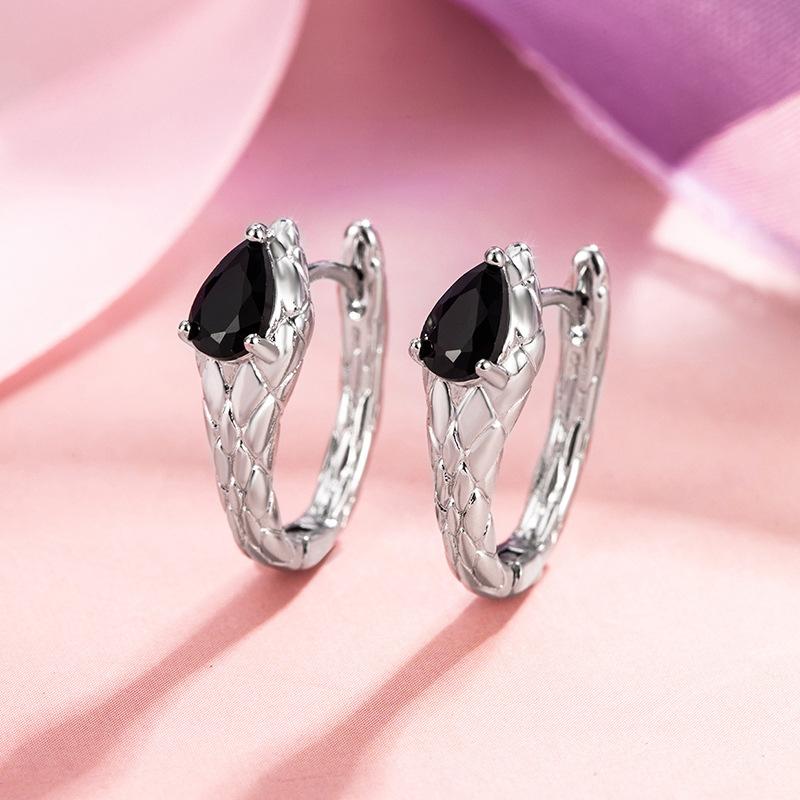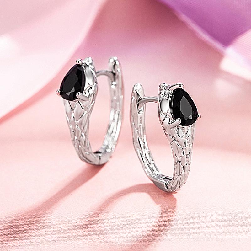 Compre Brincos de personalidade doce e legal com fivela de orelha de cobra, diamante preto, prata, estilo frio, design de nicho, brincos simples e modernos para mulheres no atacado no Joom.pro