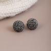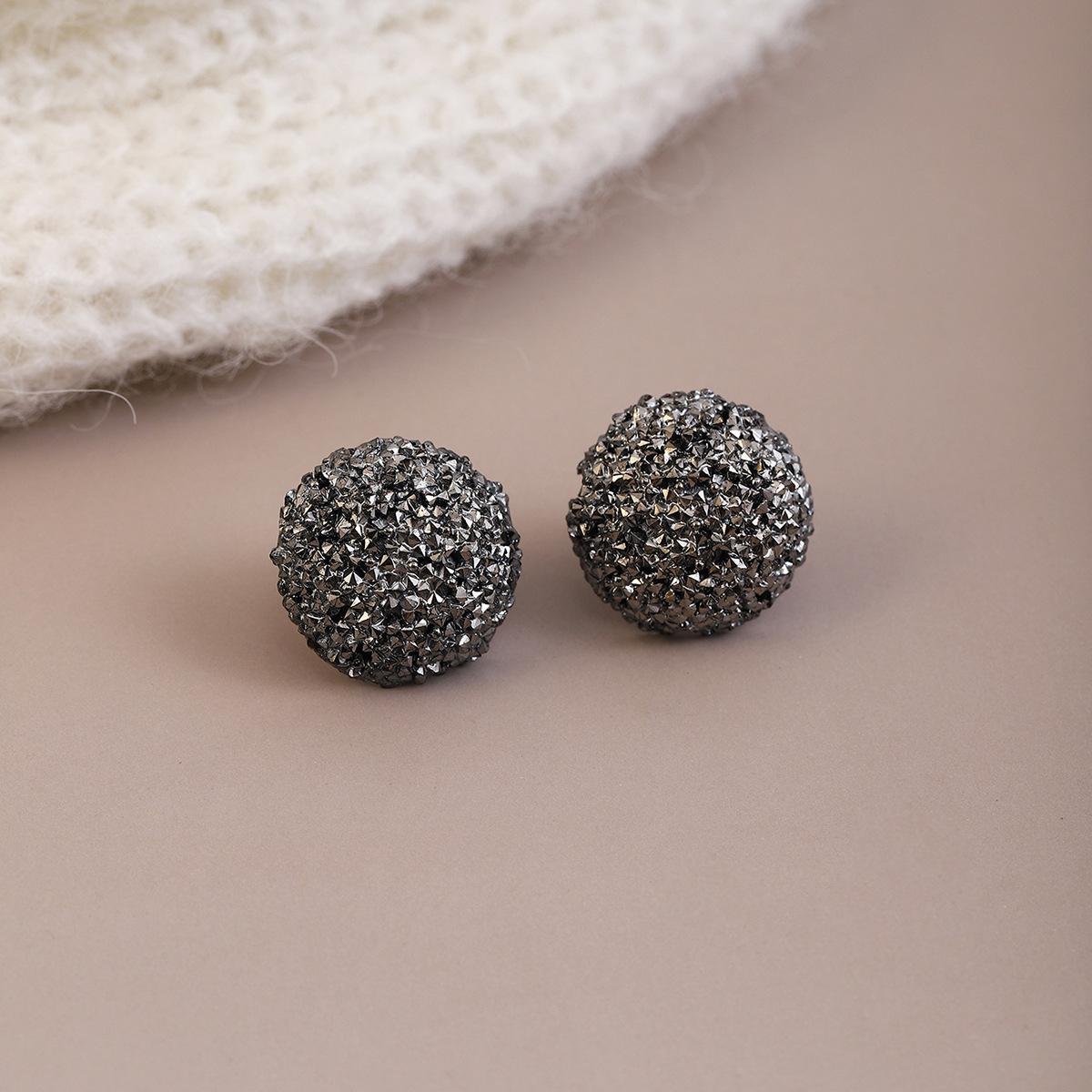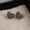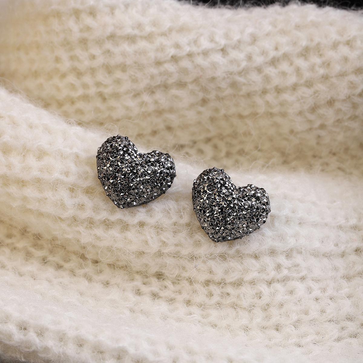Agulha de prata estilo coreano Super Flash Cinza Diamante Amor Brincos Redondos Outono e Inverno Ins Estilo Leve Luxo High-end Delicado Brincos All-match