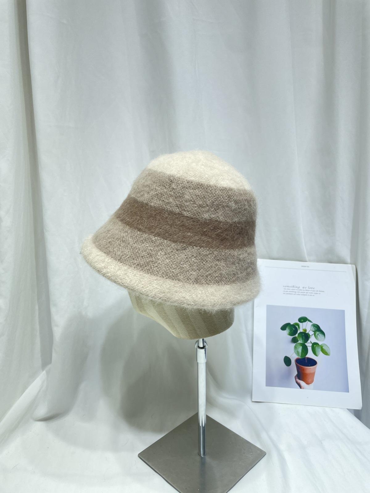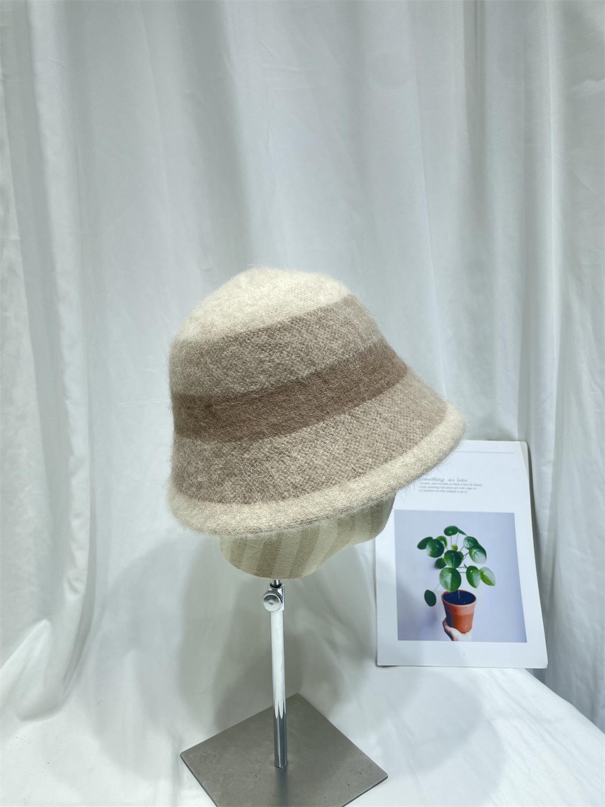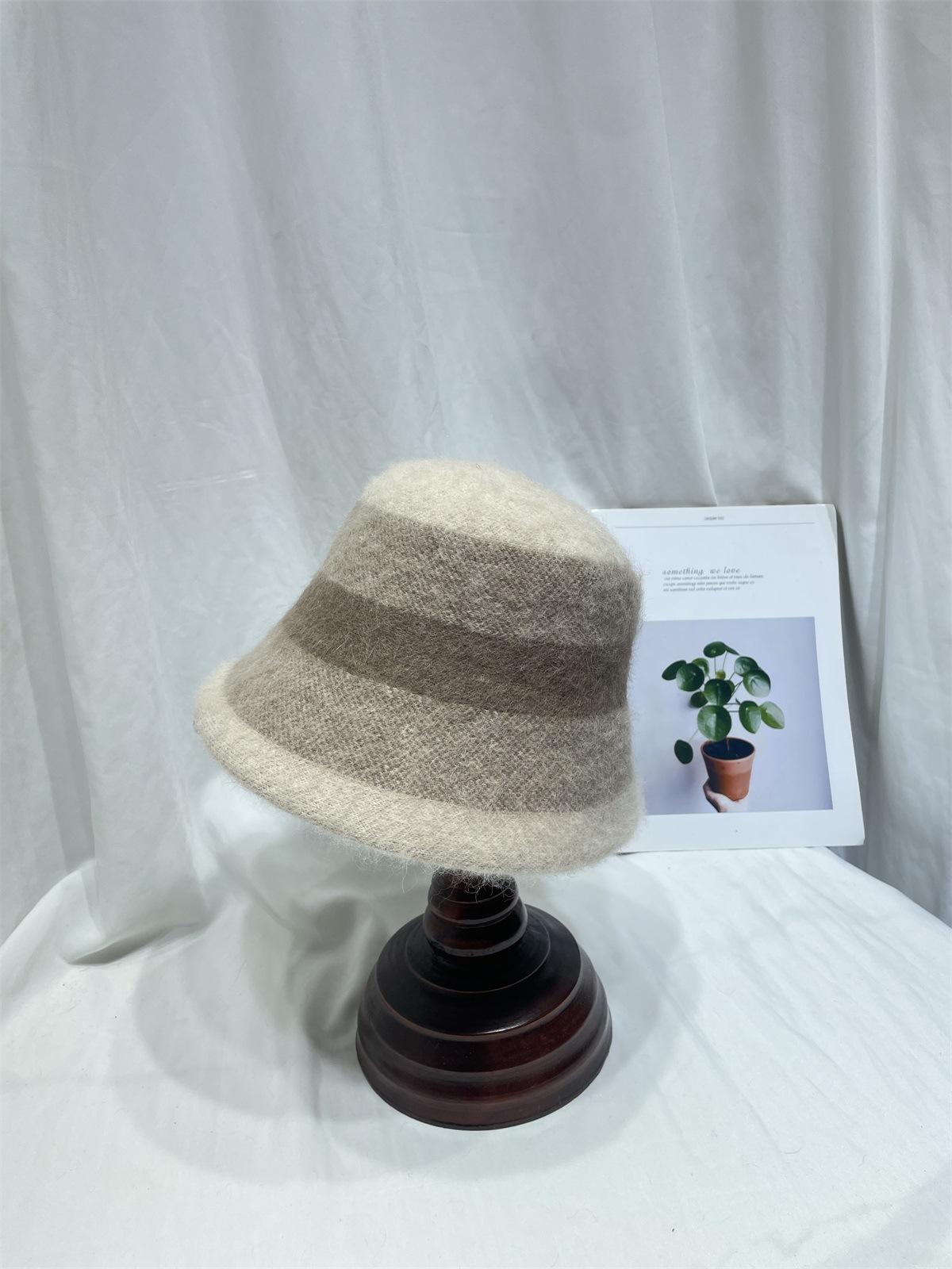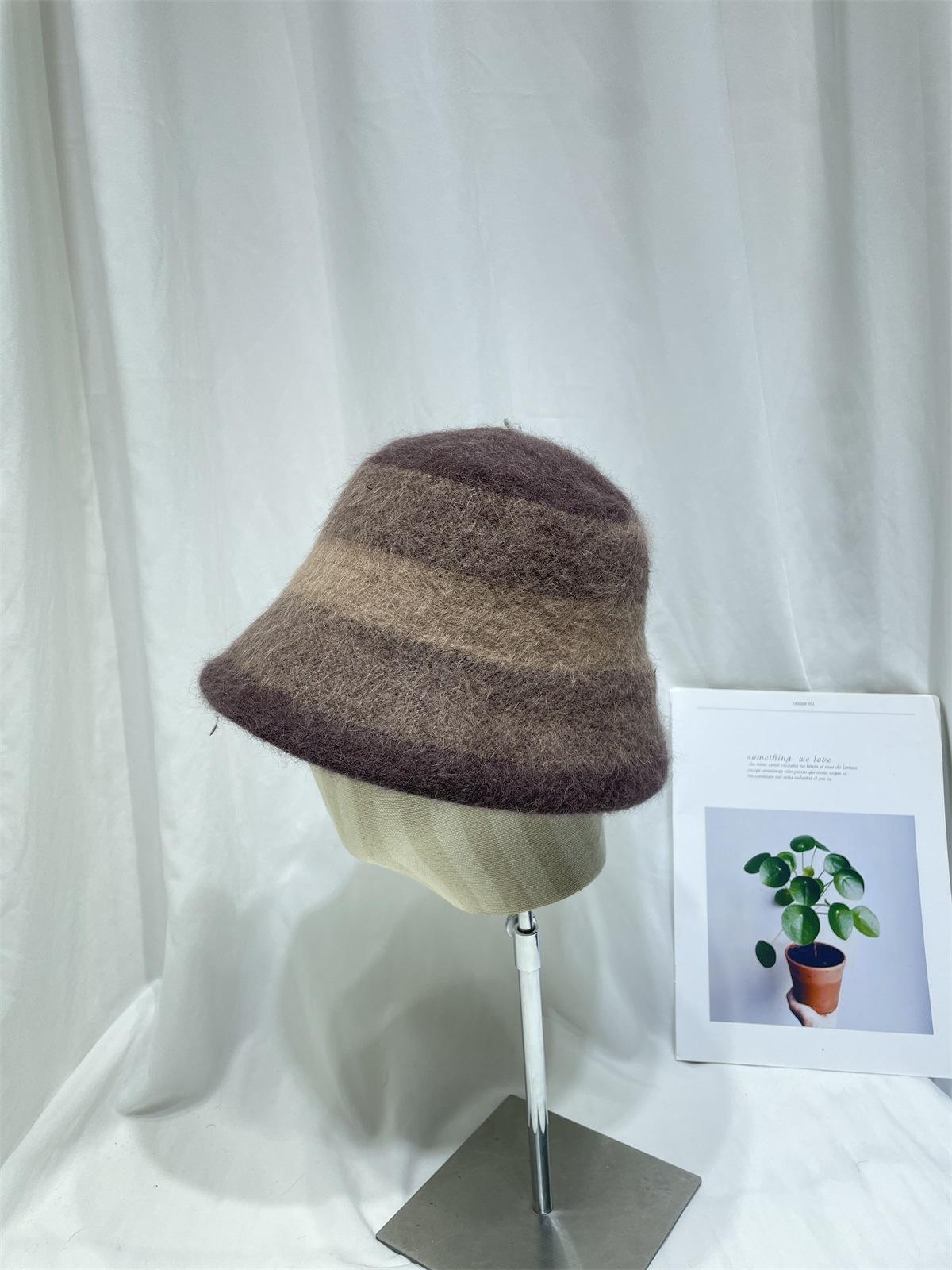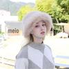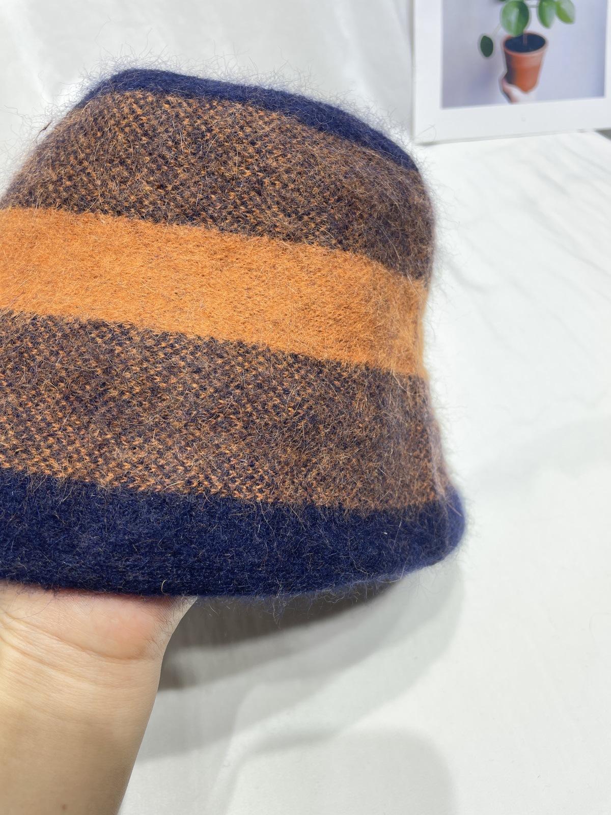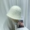 Chapéu de pescador de lã de pele de coelho simples estilo japonês combinando com cores, chapéu feminino de outono e inverno, rosto mostrado, pequeno, casual, chapéu de bacia, chapéu de balde quente