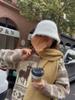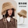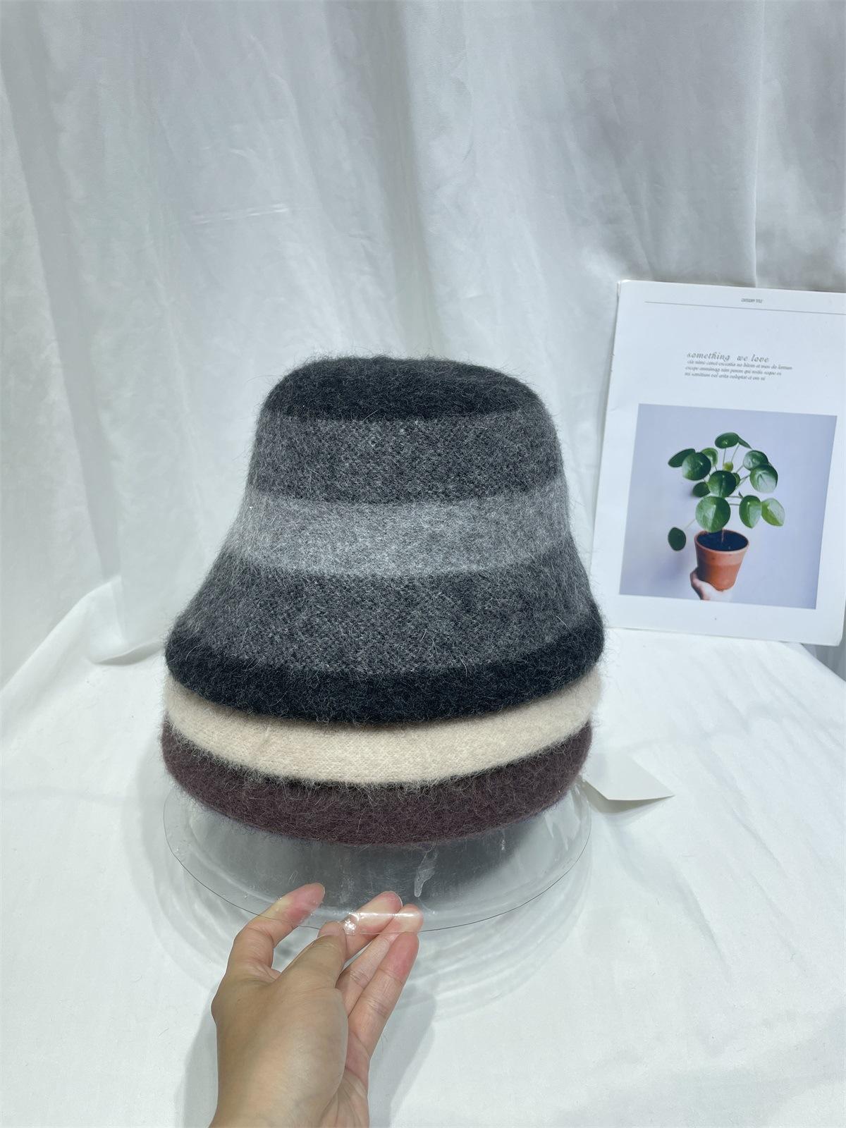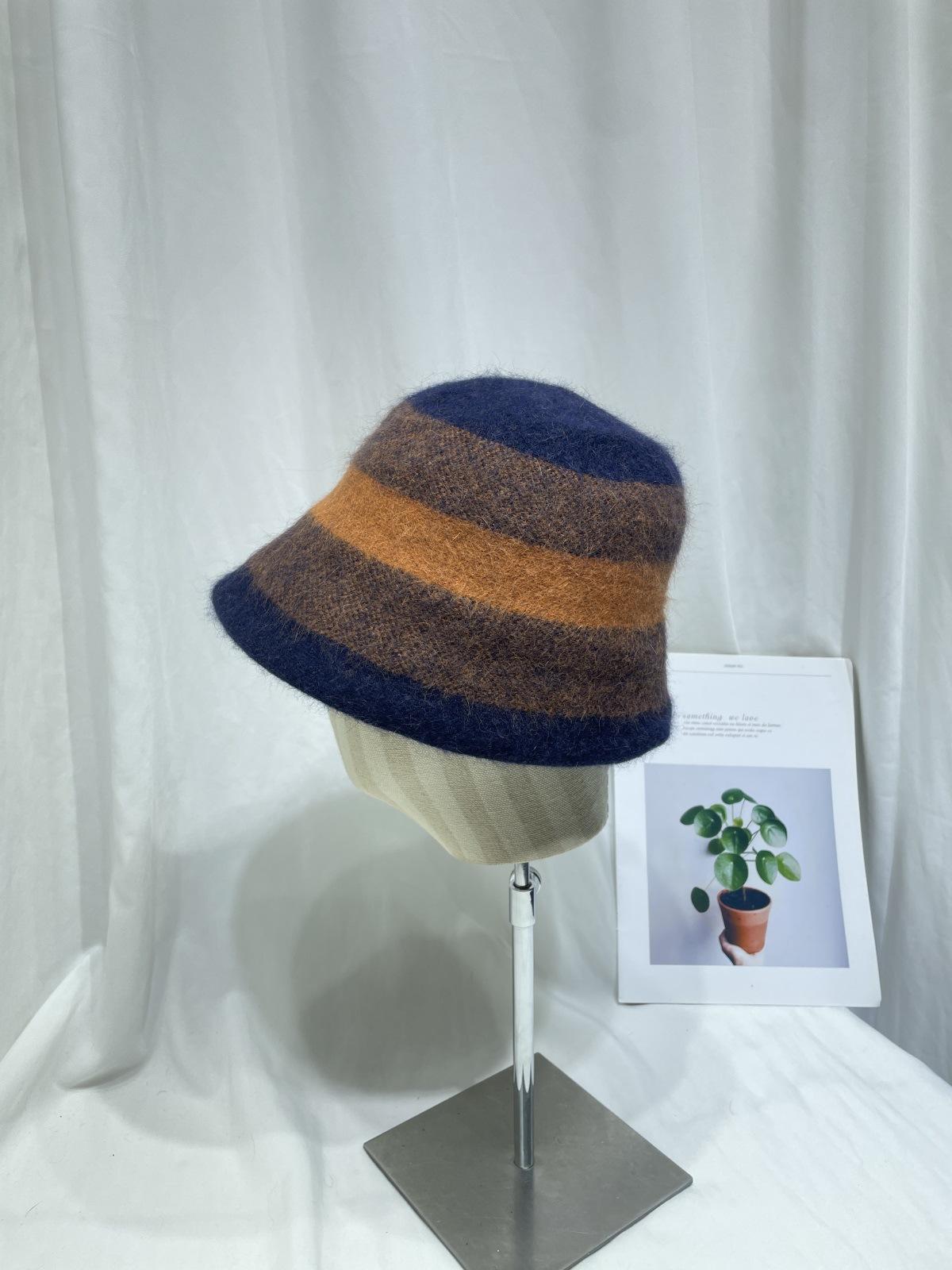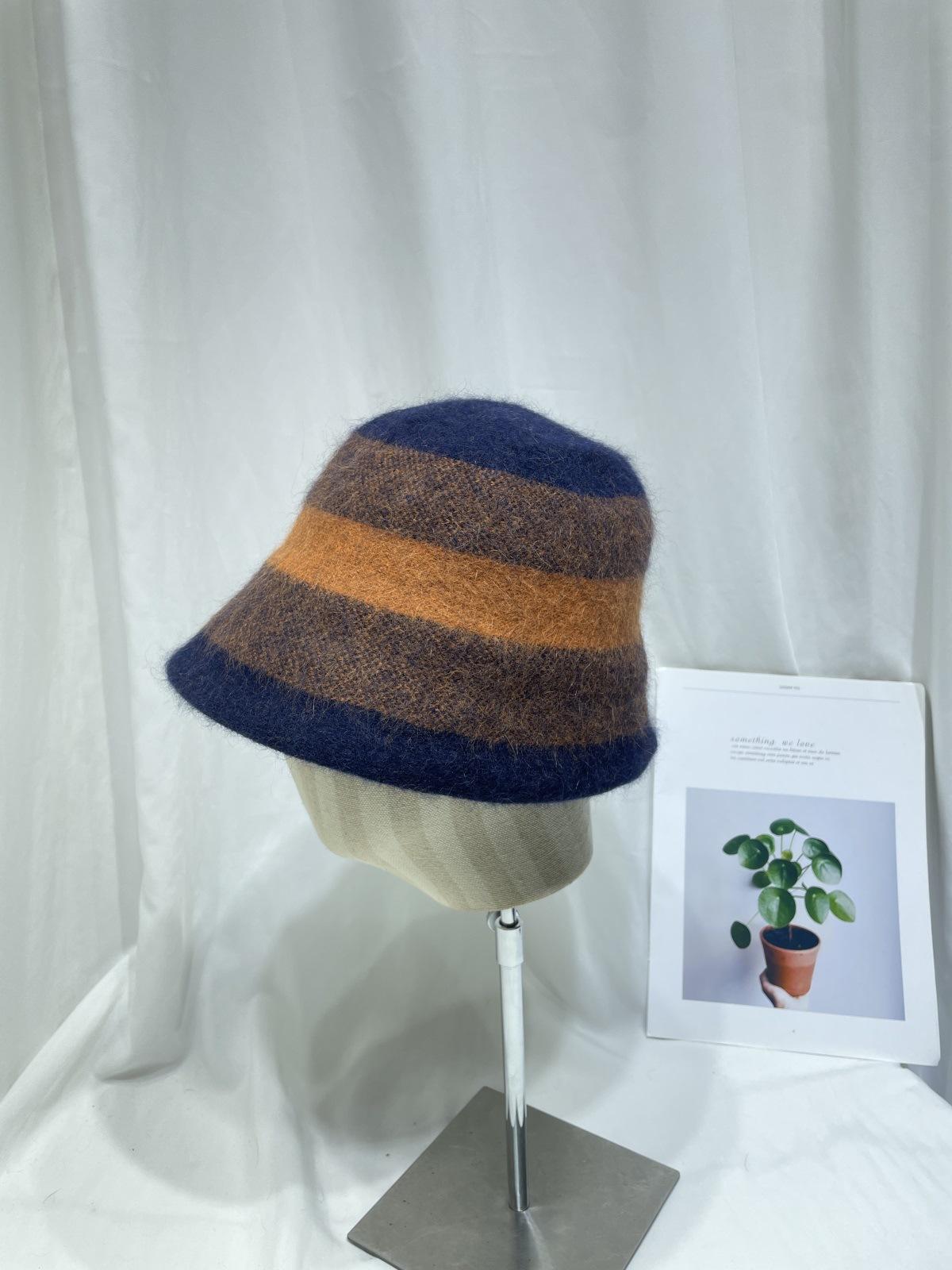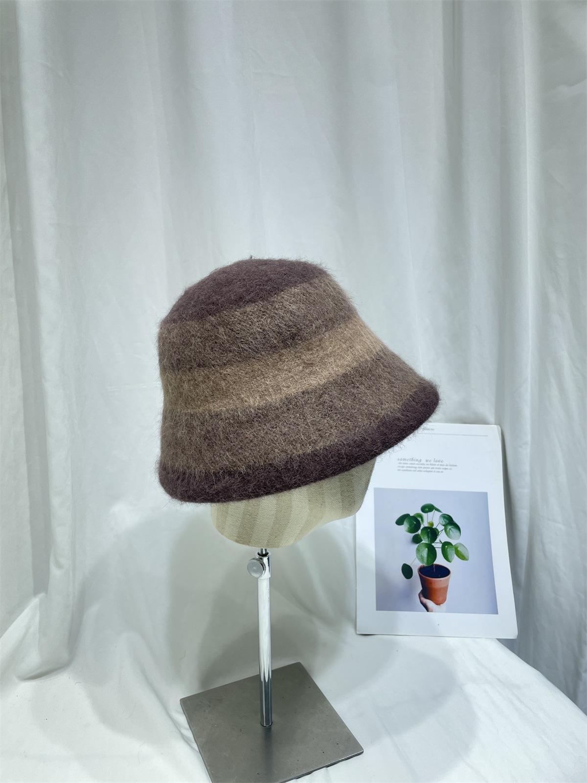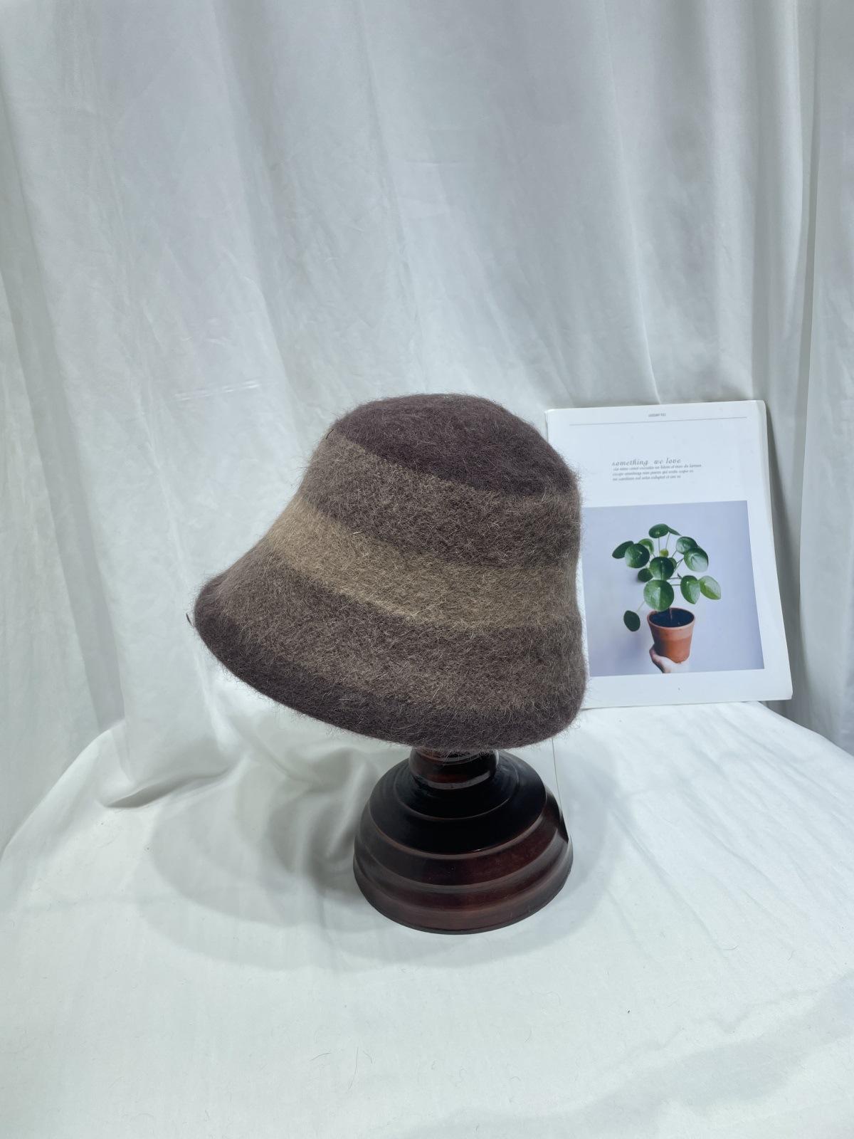 Chapéu de pescador de lã de pele de coelho simples estilo japonês combinando com cores, chapéu feminino de outono e inverno, rosto mostrado, pequeno, casual, chapéu de bacia, chapéu de balde quente