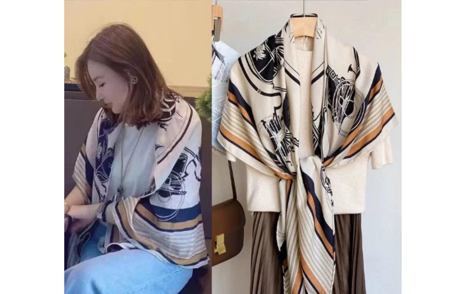 Outono e inverno novo triângulo veludo cachecol espinha de peixe padrão grande xale estilo coreano all-match feito à mão curling table impresso feminino
