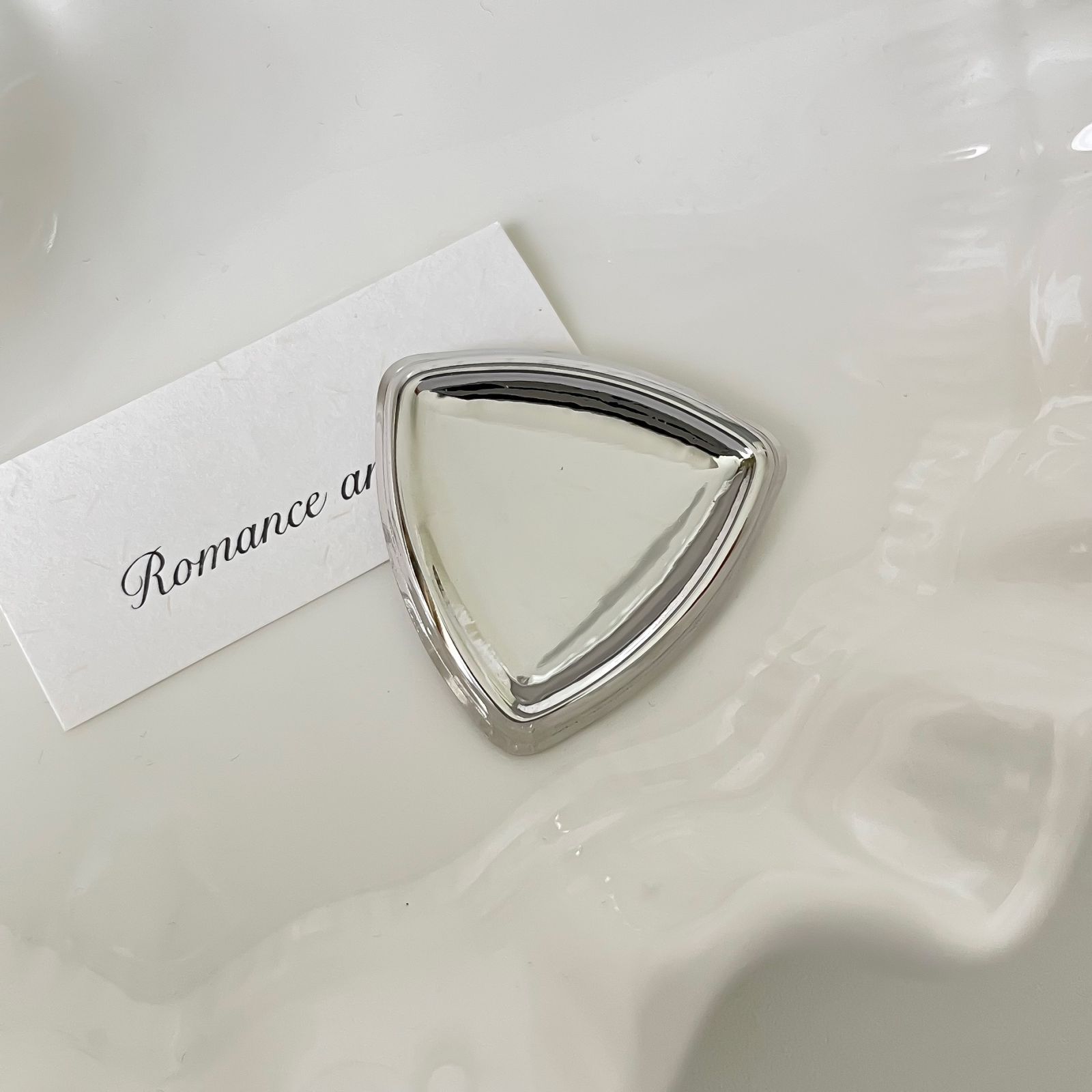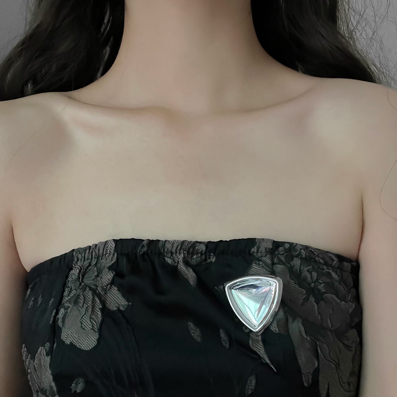 Broche de triângulo de temperamento de aço inoxidável de alta qualidade, moda simples, pino retrô, nicho feminino, roupas novas, acessórios de alta qualidade