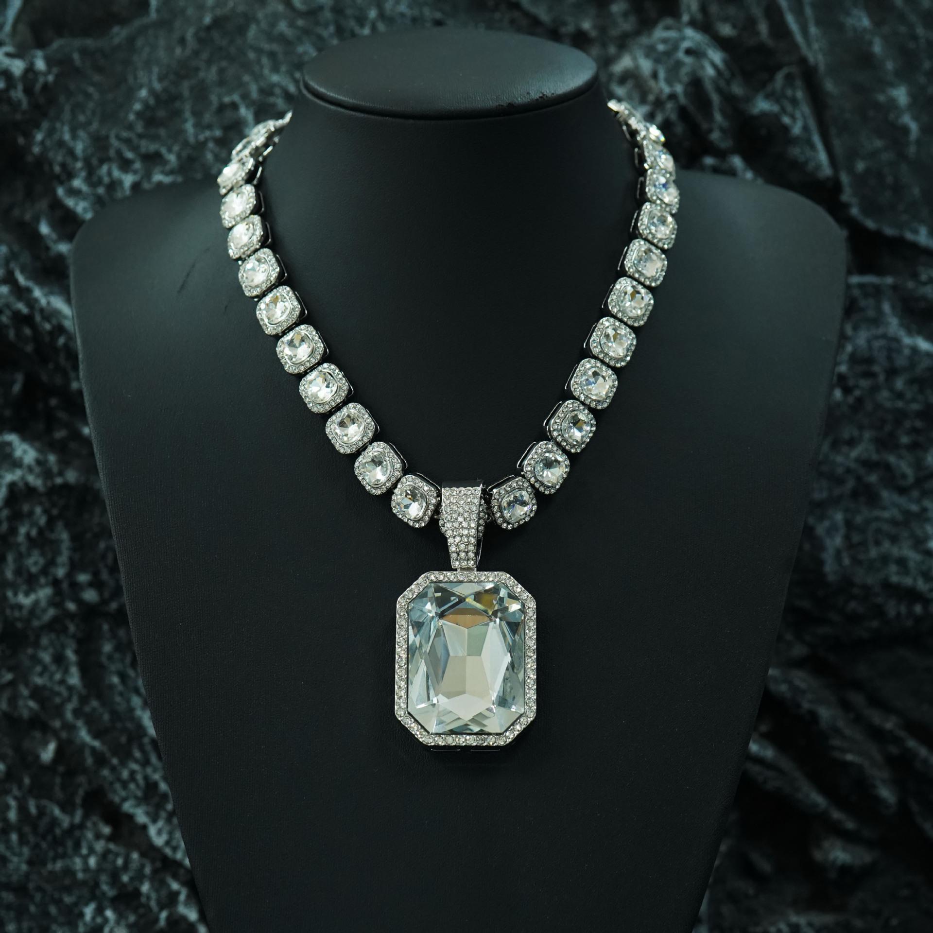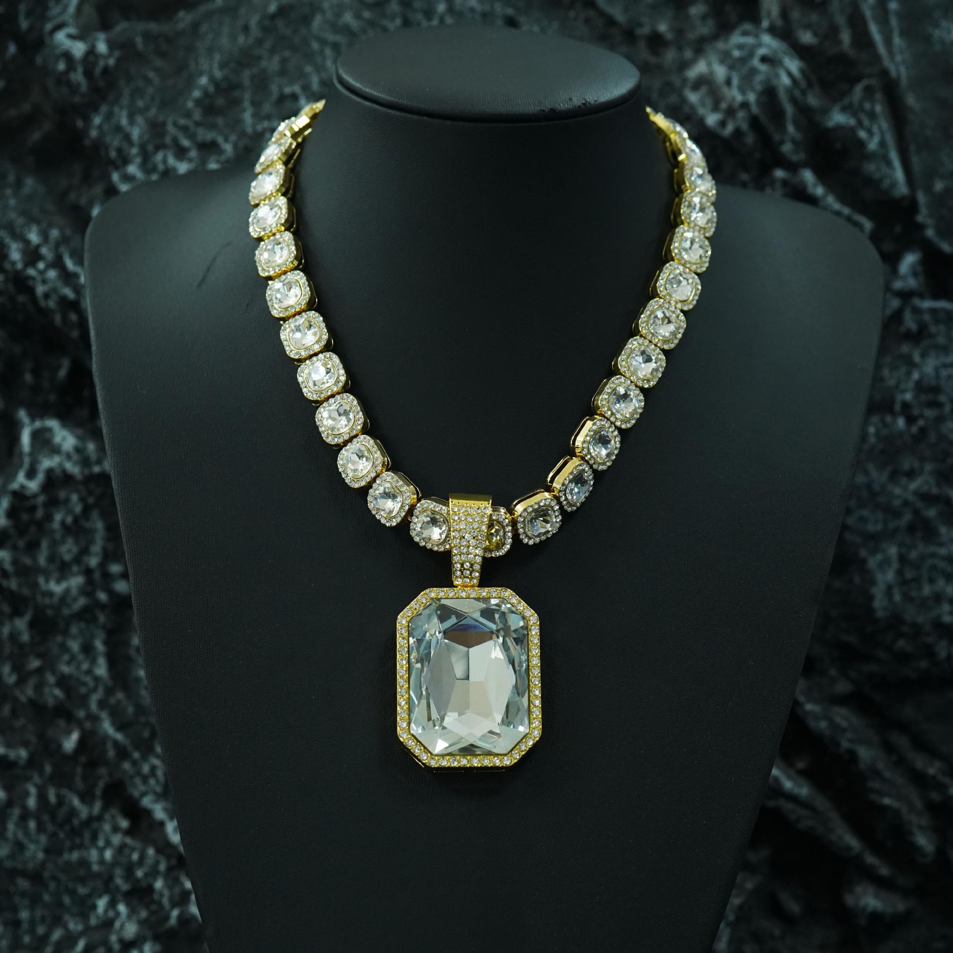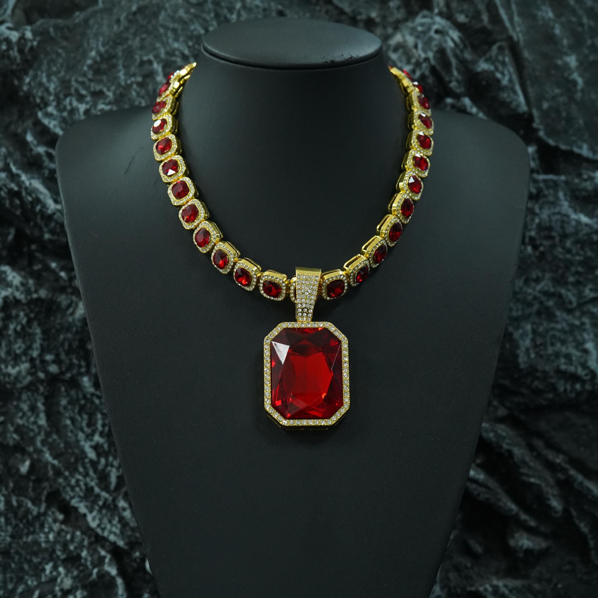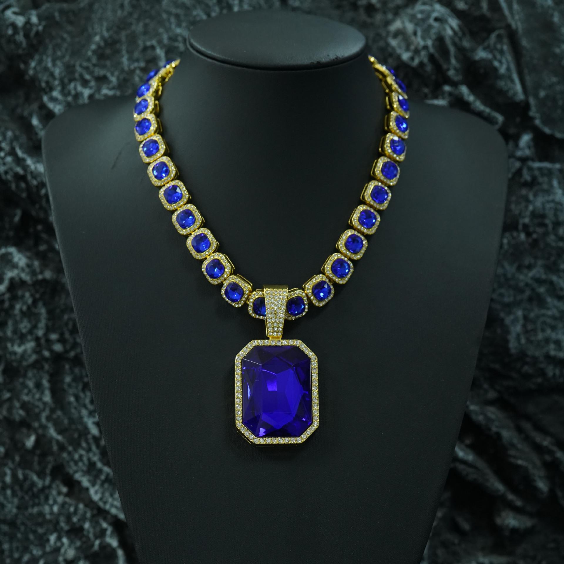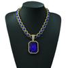 Renqing Hot Sale Color Gem Alloy Pingente Grande com Color Gem Colar Cubano Hip Hop Colar Legal