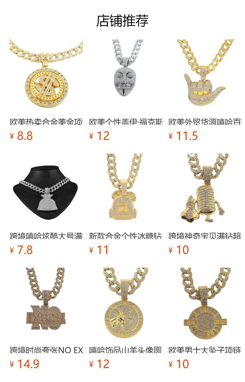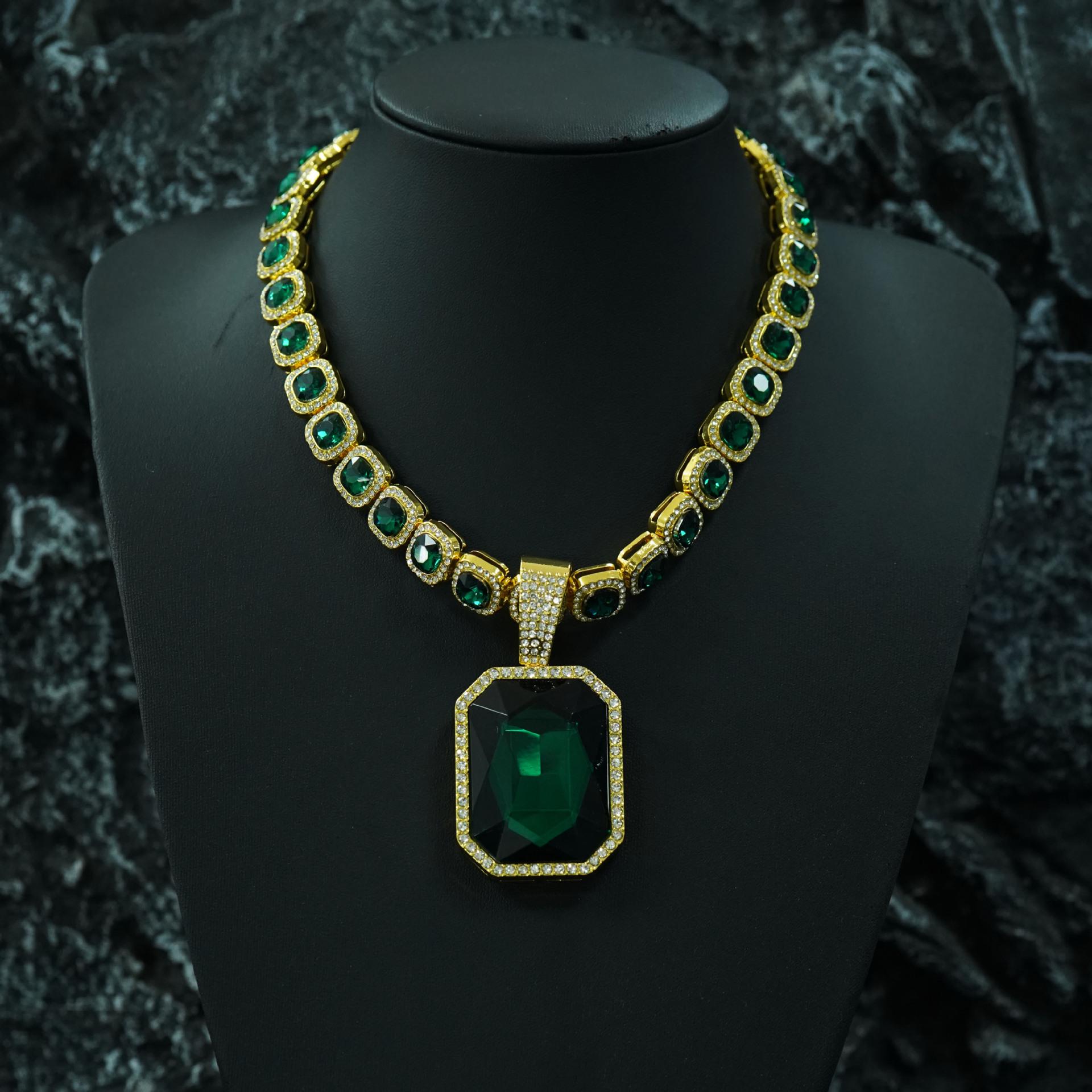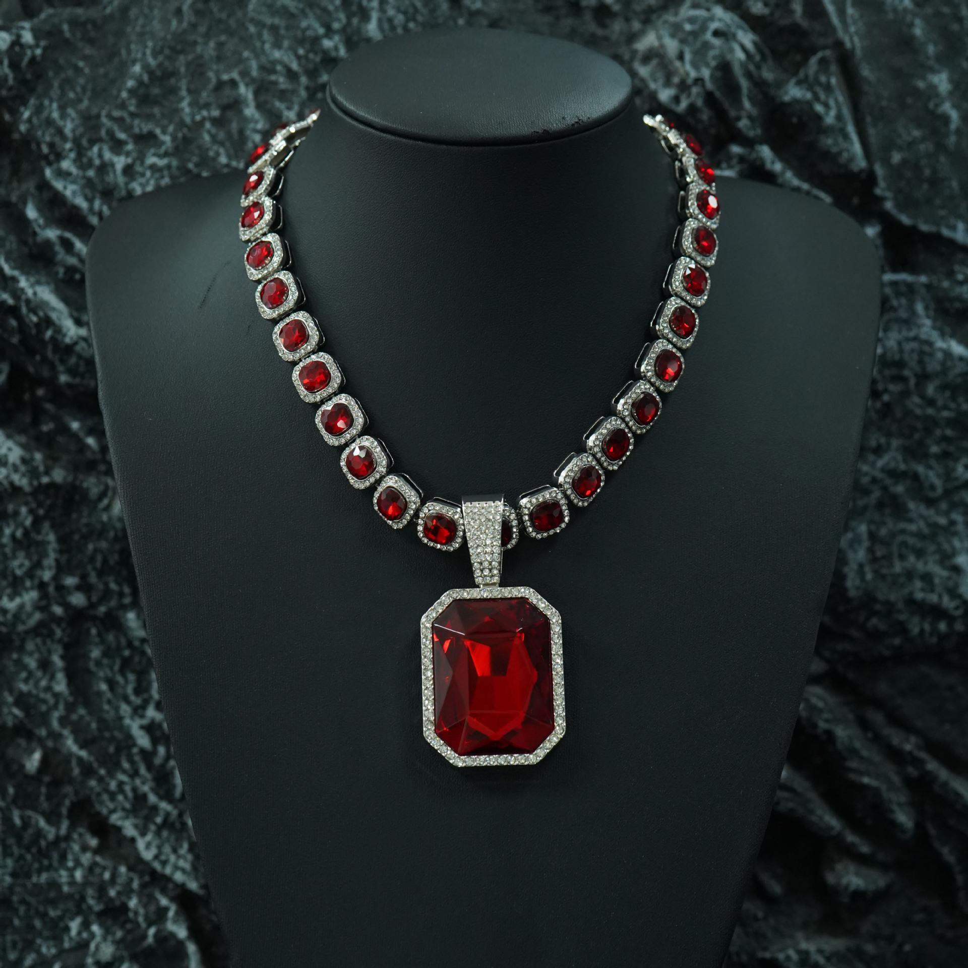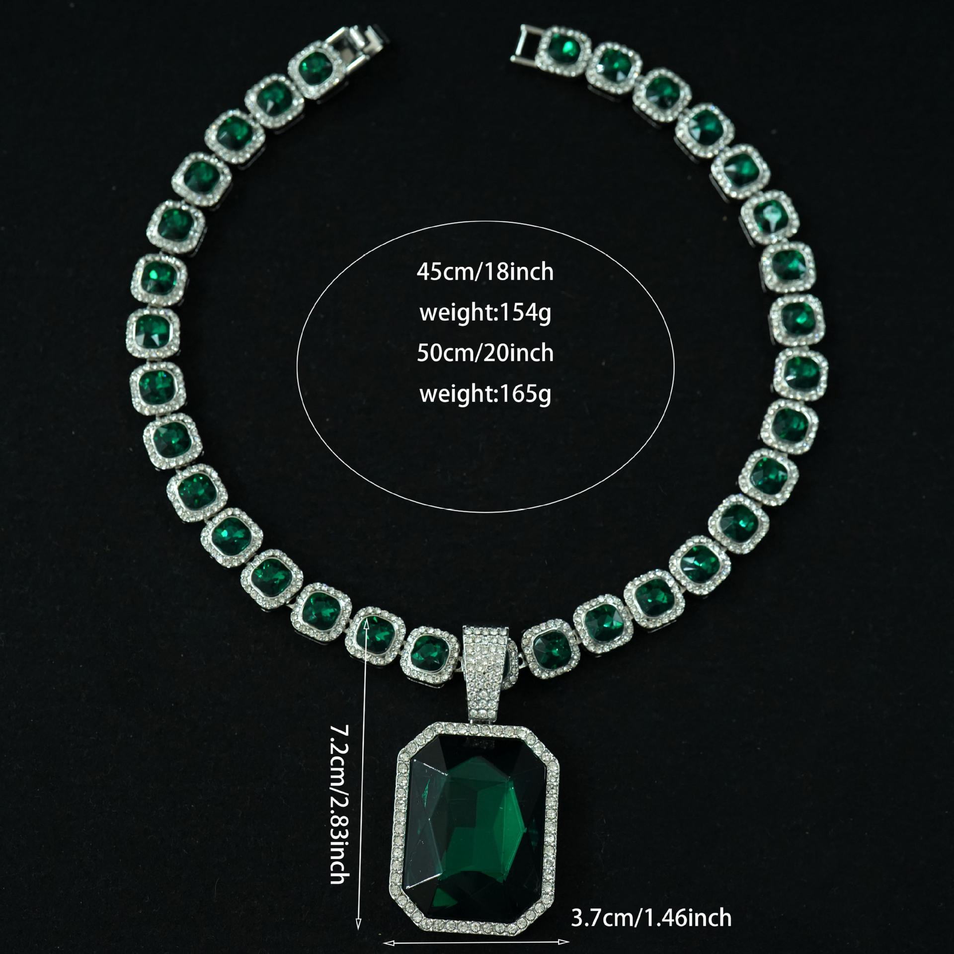Renqing Hot Sale Color Gem Alloy Pingente Grande com Color Gem Colar Cubano Hip Hop Colar Legal