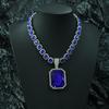 Gold Sapphire Pendant with 18inch Cuban Chain