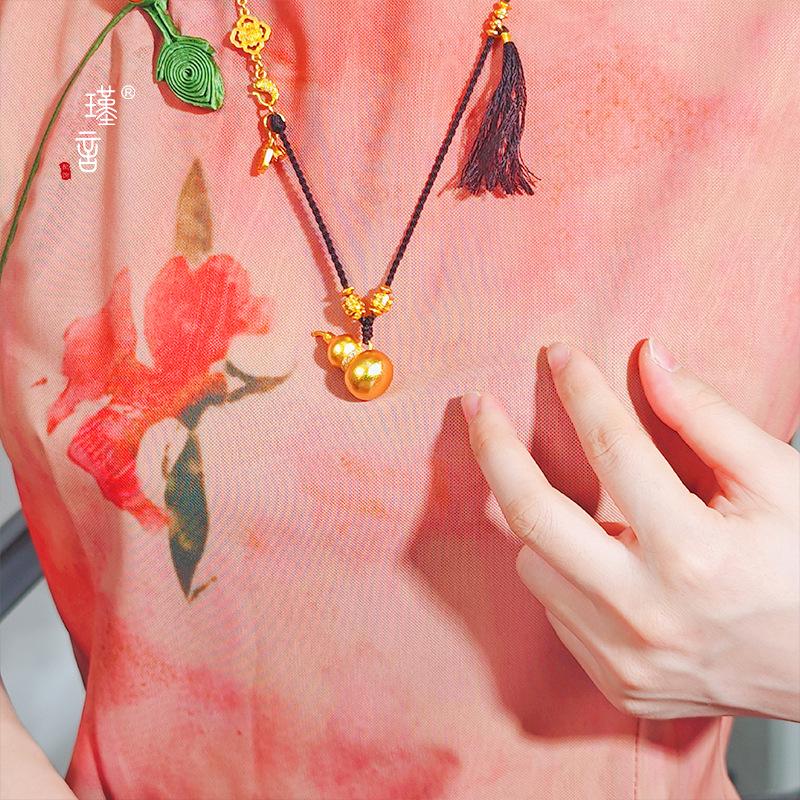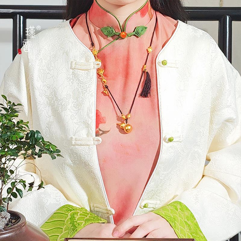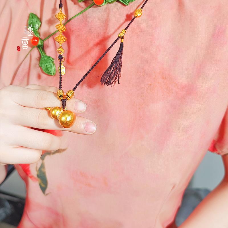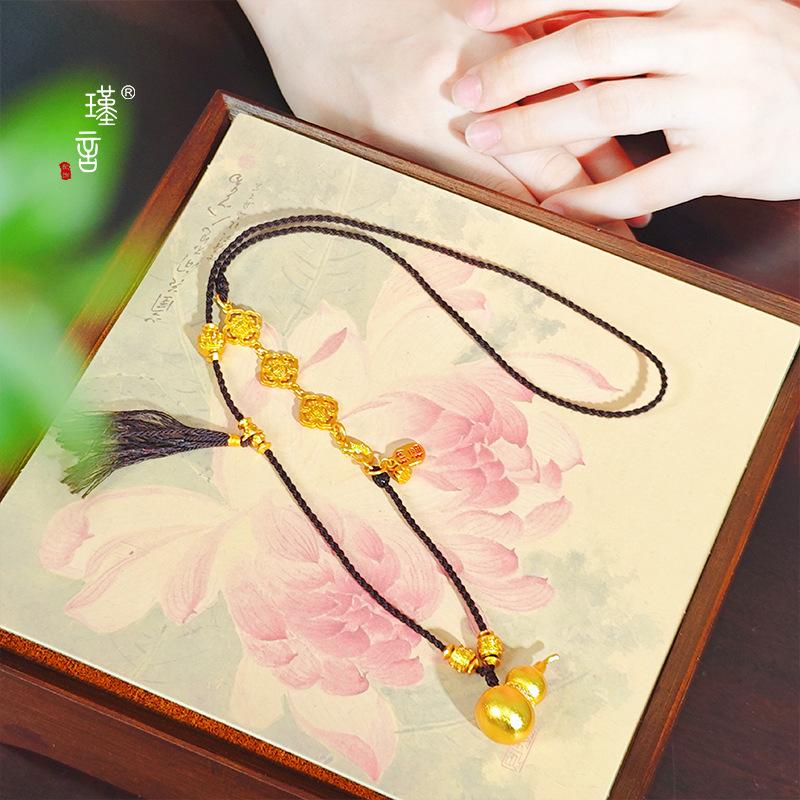 Jin Yan não desapareceu por muito tempo. Colar de borla grande com incrustação de ouro e areia do Vietnã. Novo estilo Xizang tecido à mão chinês